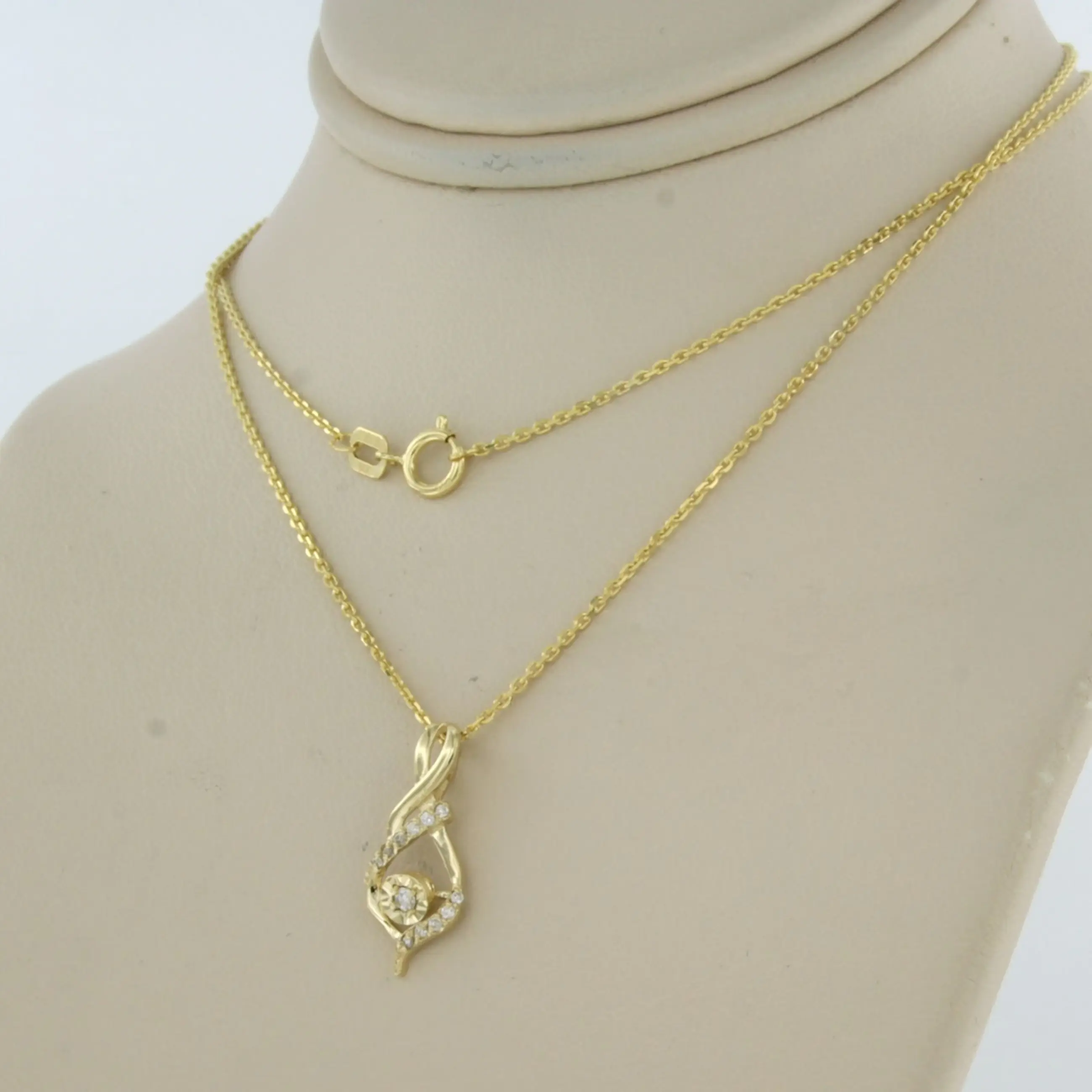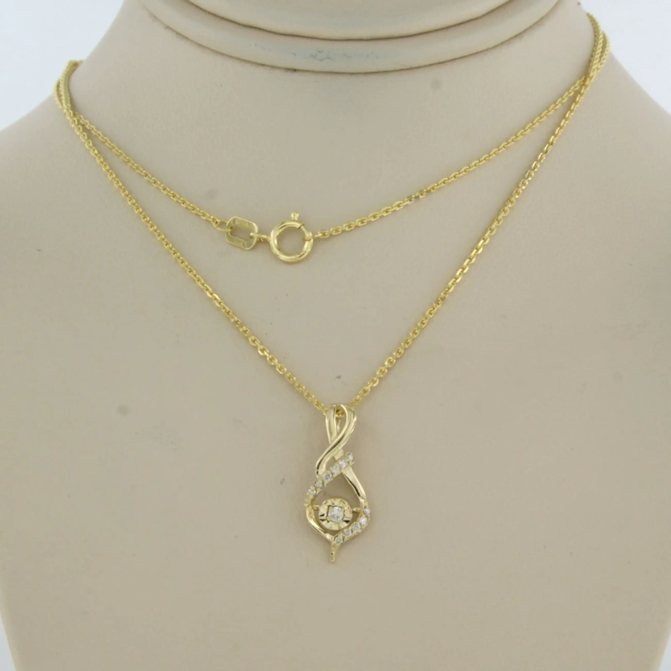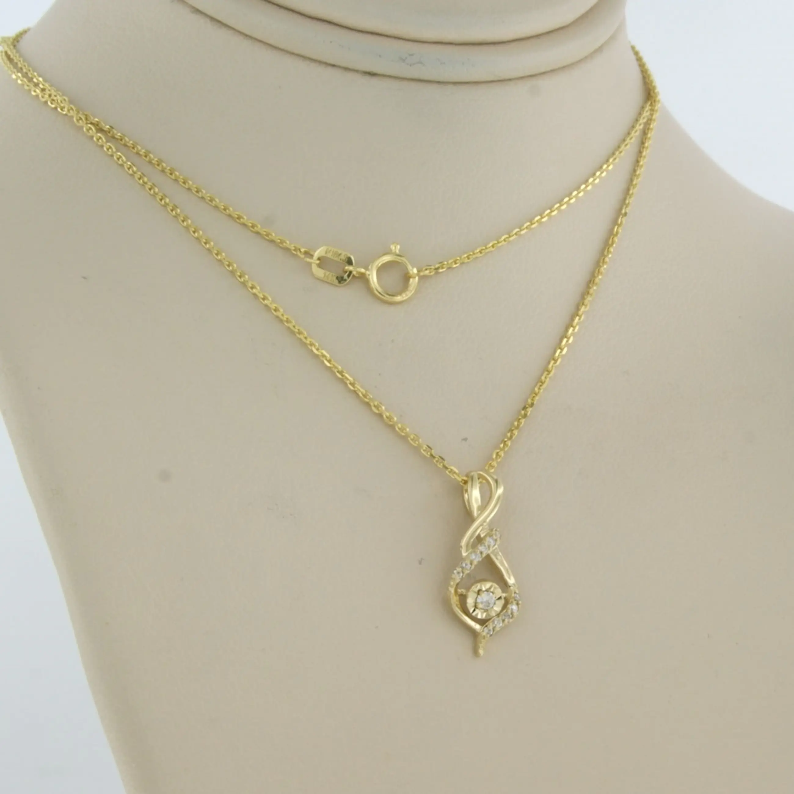 14k geelgouden collier met hanger bezet met briljant geslepen diamant tot. 0,07ct - F/G - VS/SI- 45 cm lang