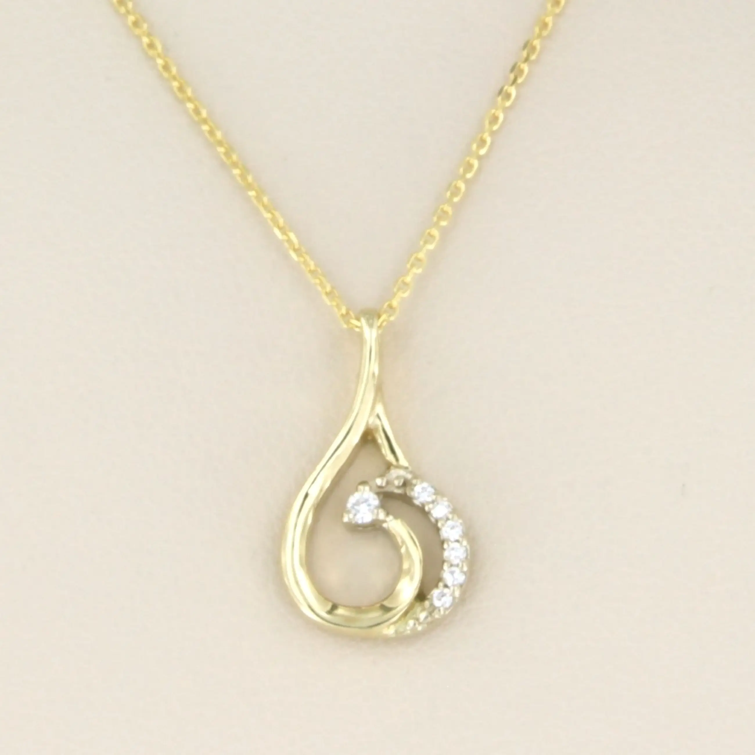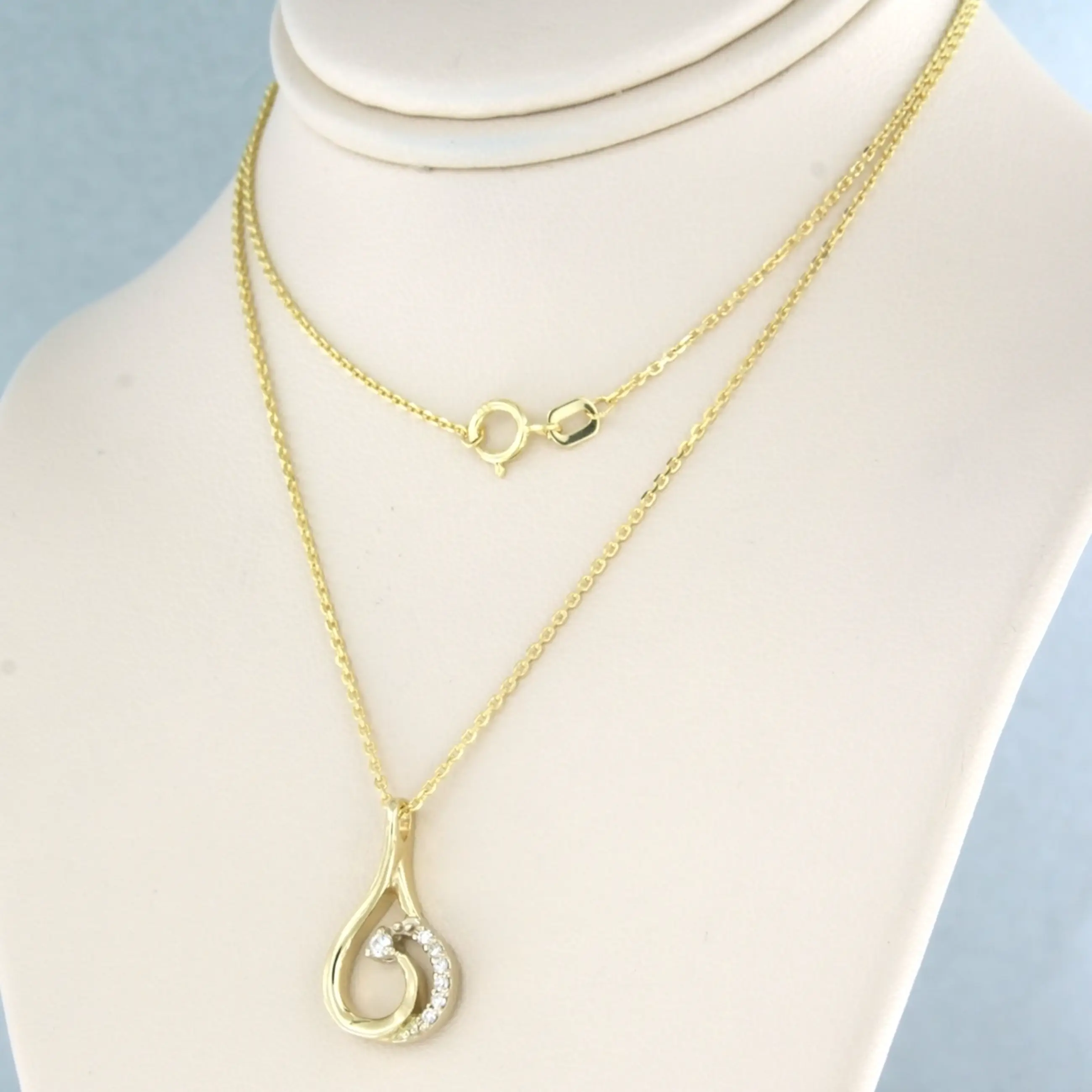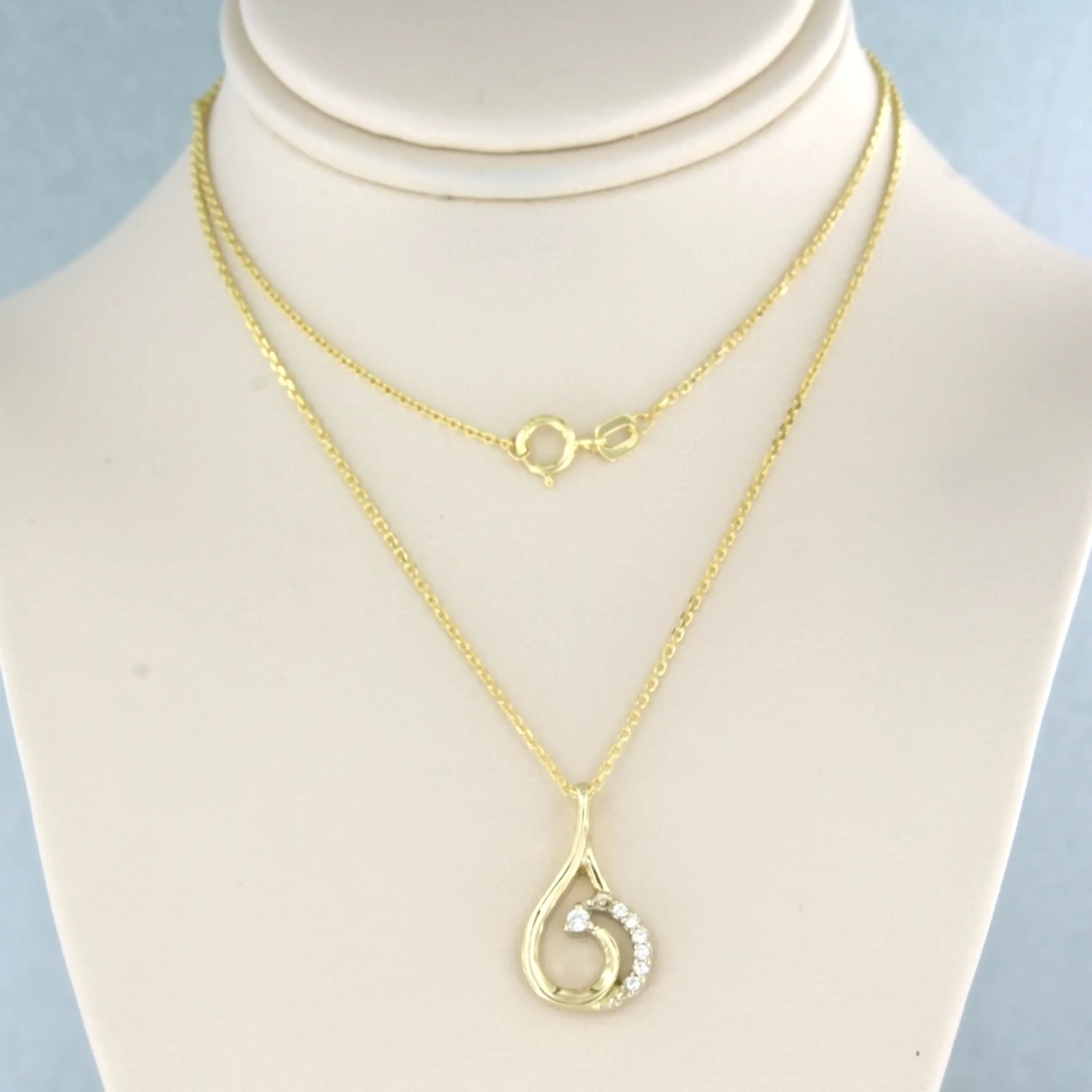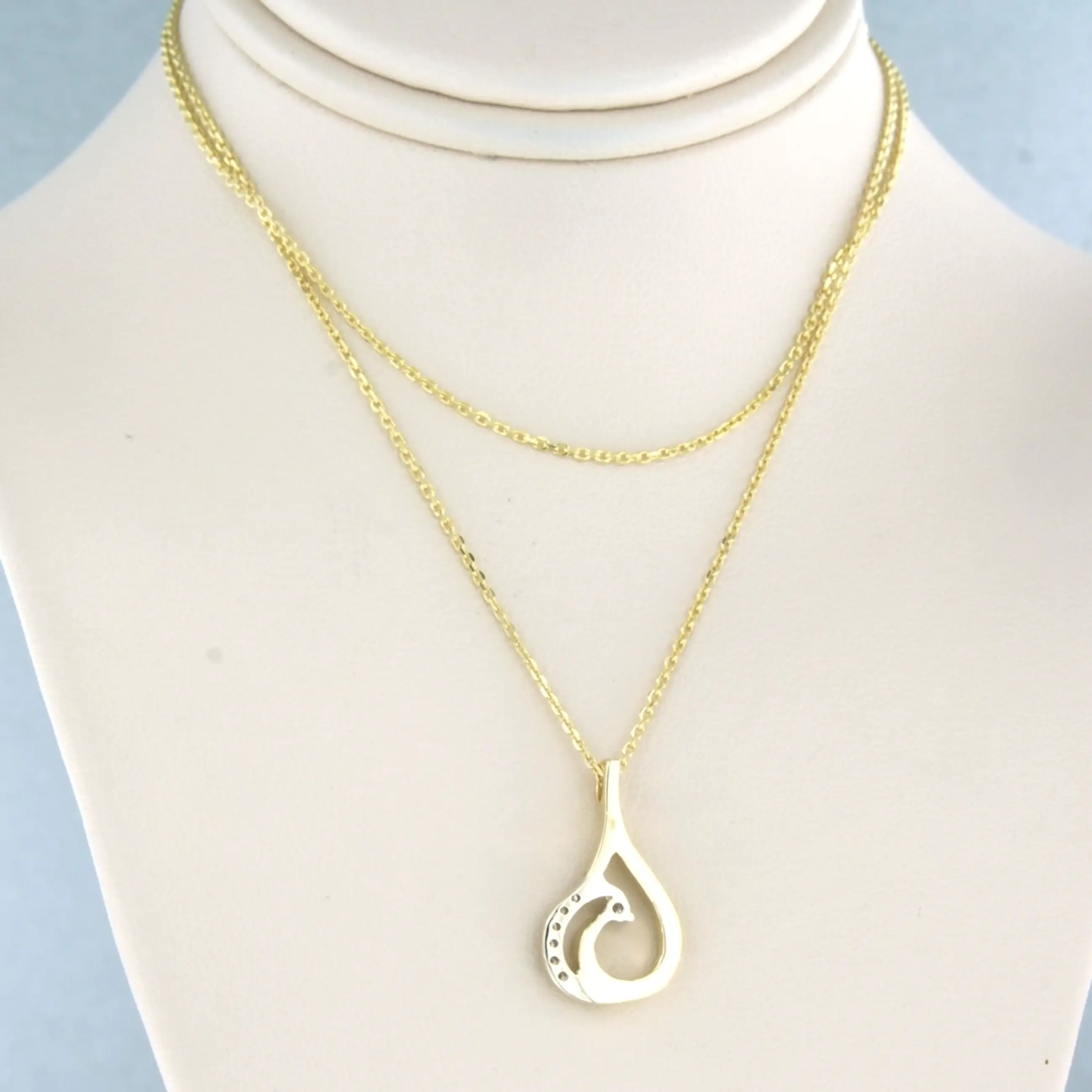 14k geelgouden collier met bicolor gouden hanger bezet met briljant geslepen diamant tot. 0,08ct - 45 cm lang