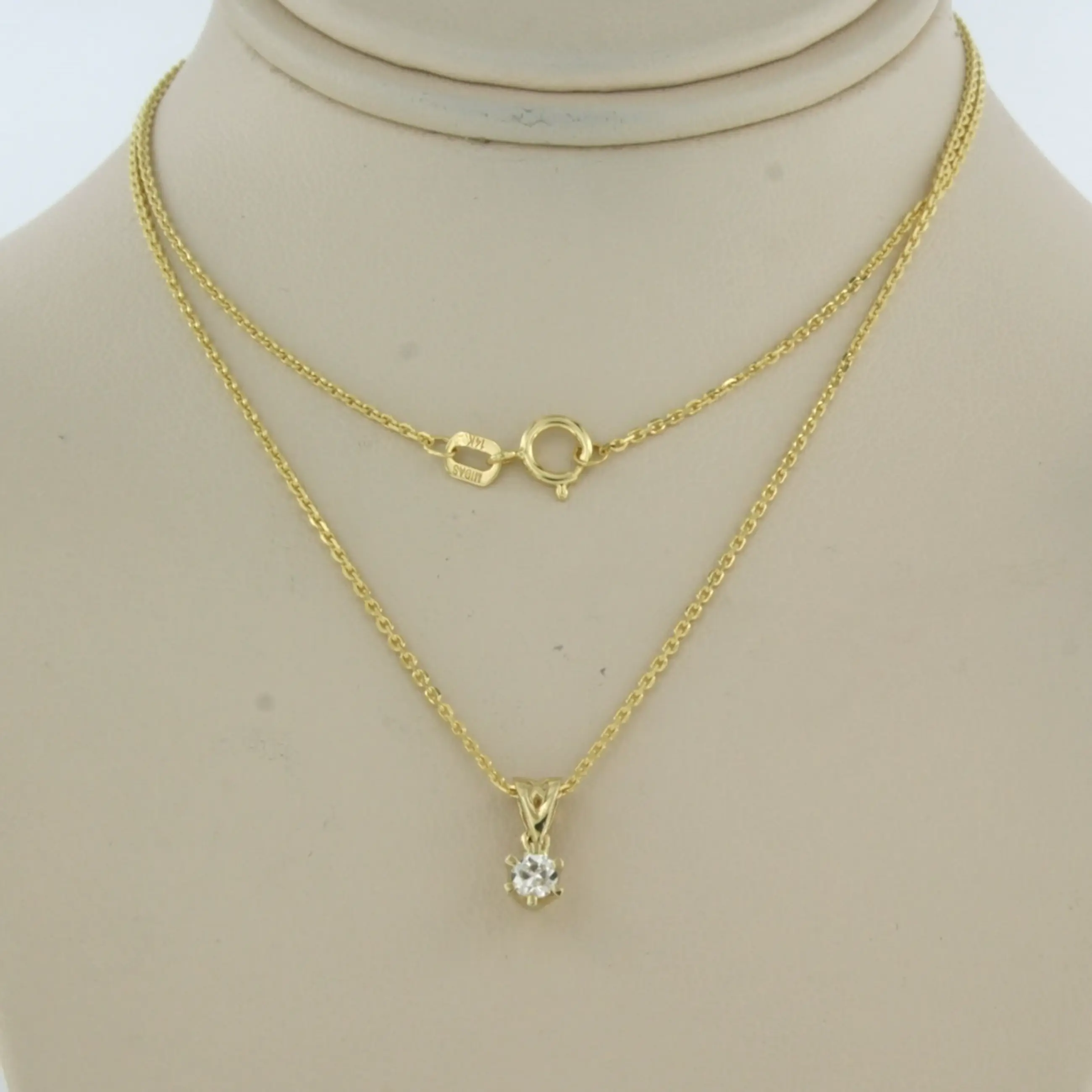 14k geelgouden collier met een hanger bezet met briljant geslepen diamant tot. 0,11ct - F/G - VS/SI - 45cm lang