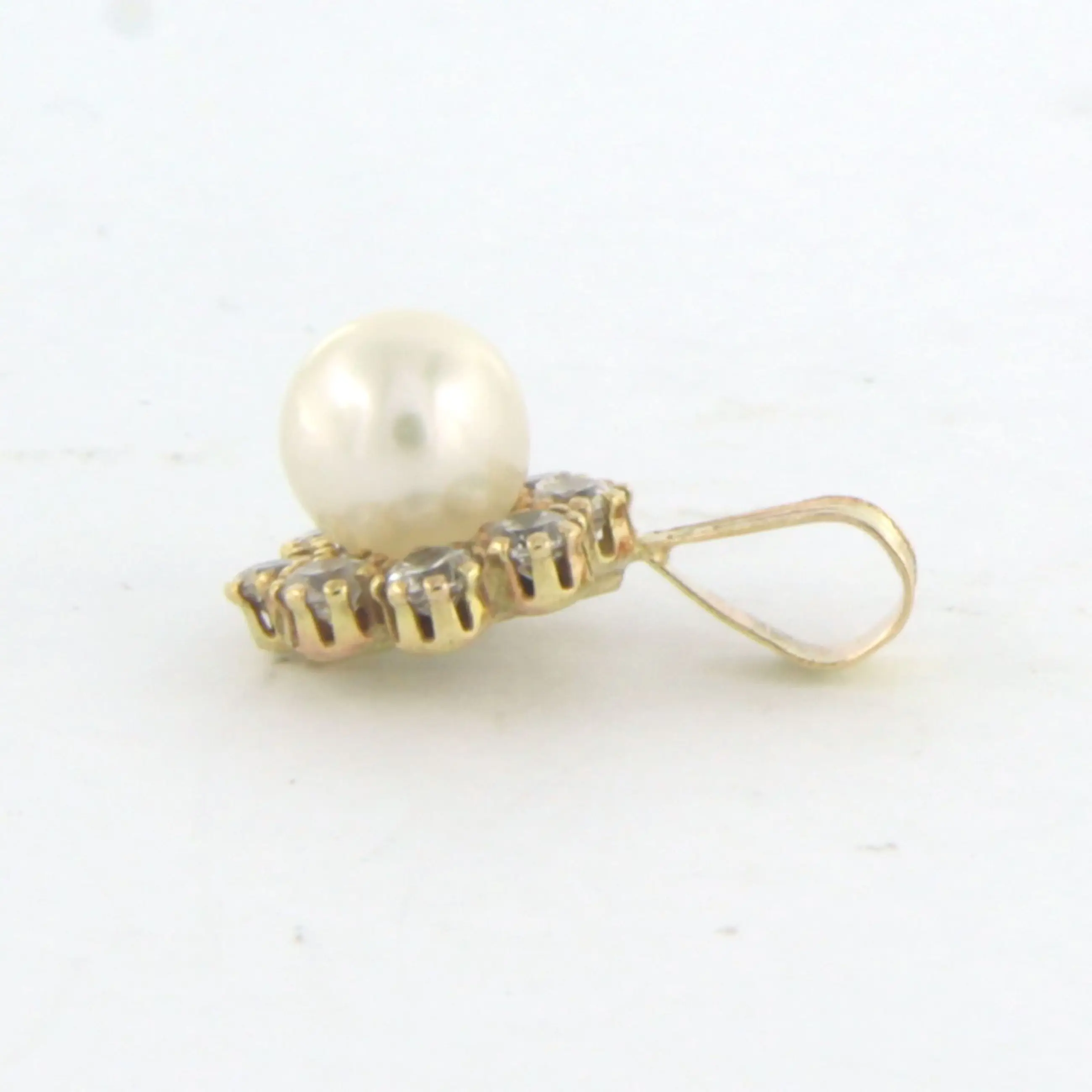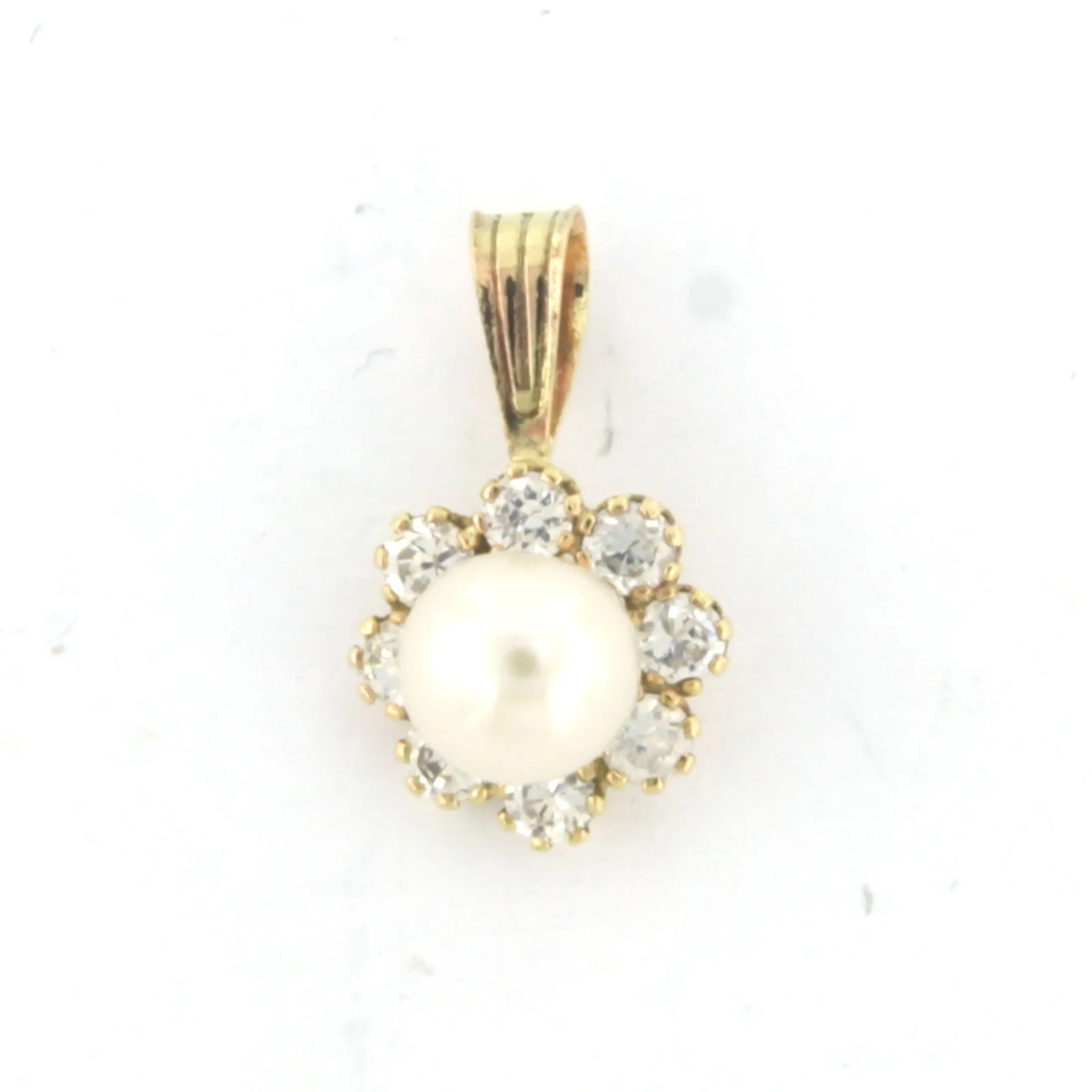 14k geelgouden entourage hanger bezet met parel en zirkonia