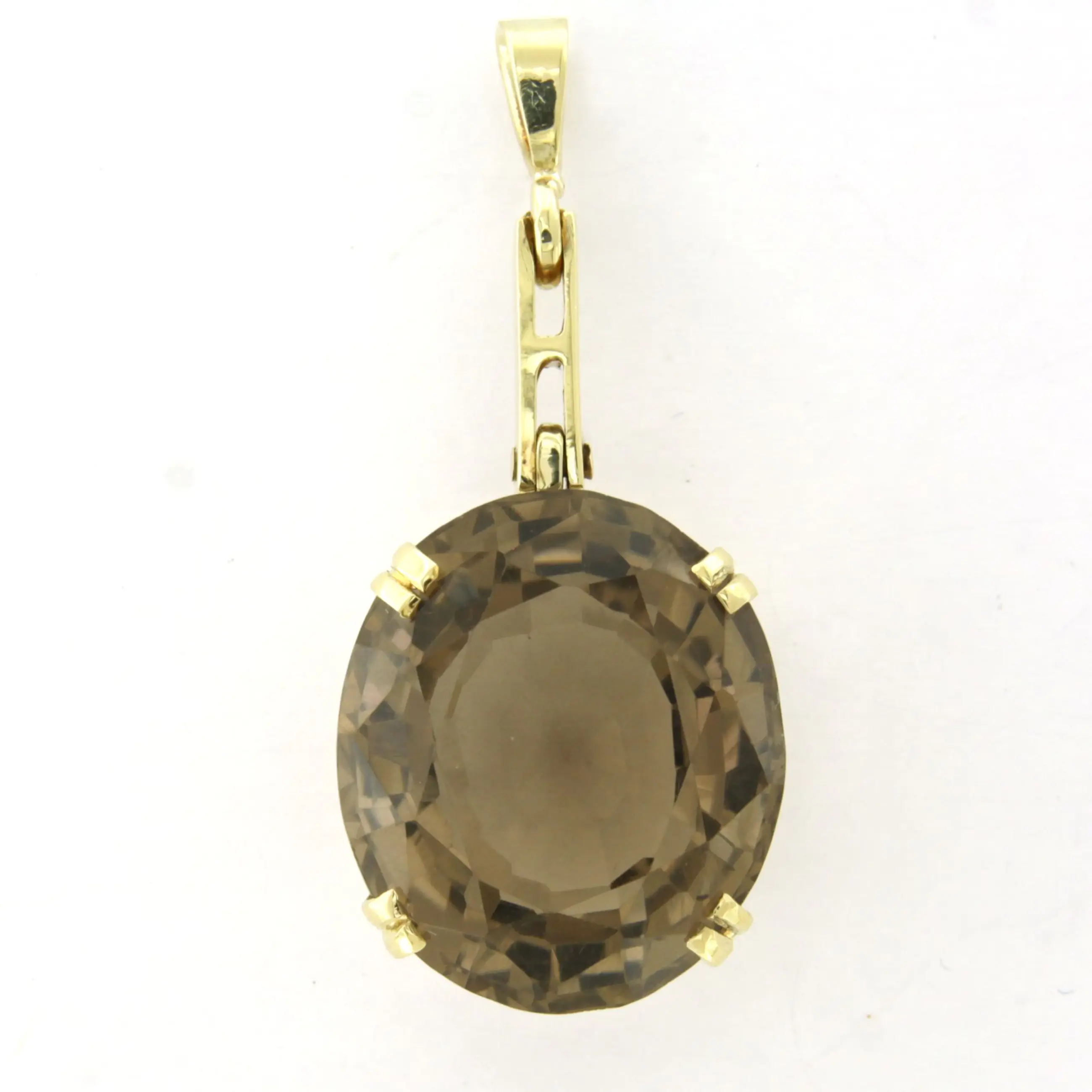 14k geelgouden hanger bezet met kolossale rookkwarts - afm 4.0 cm x 1.8 cm (H x B)