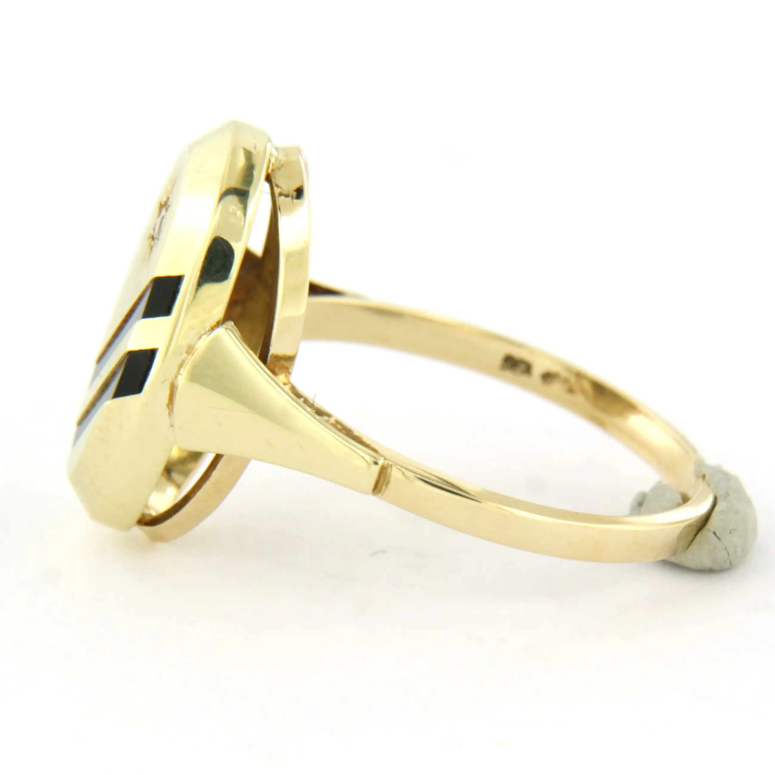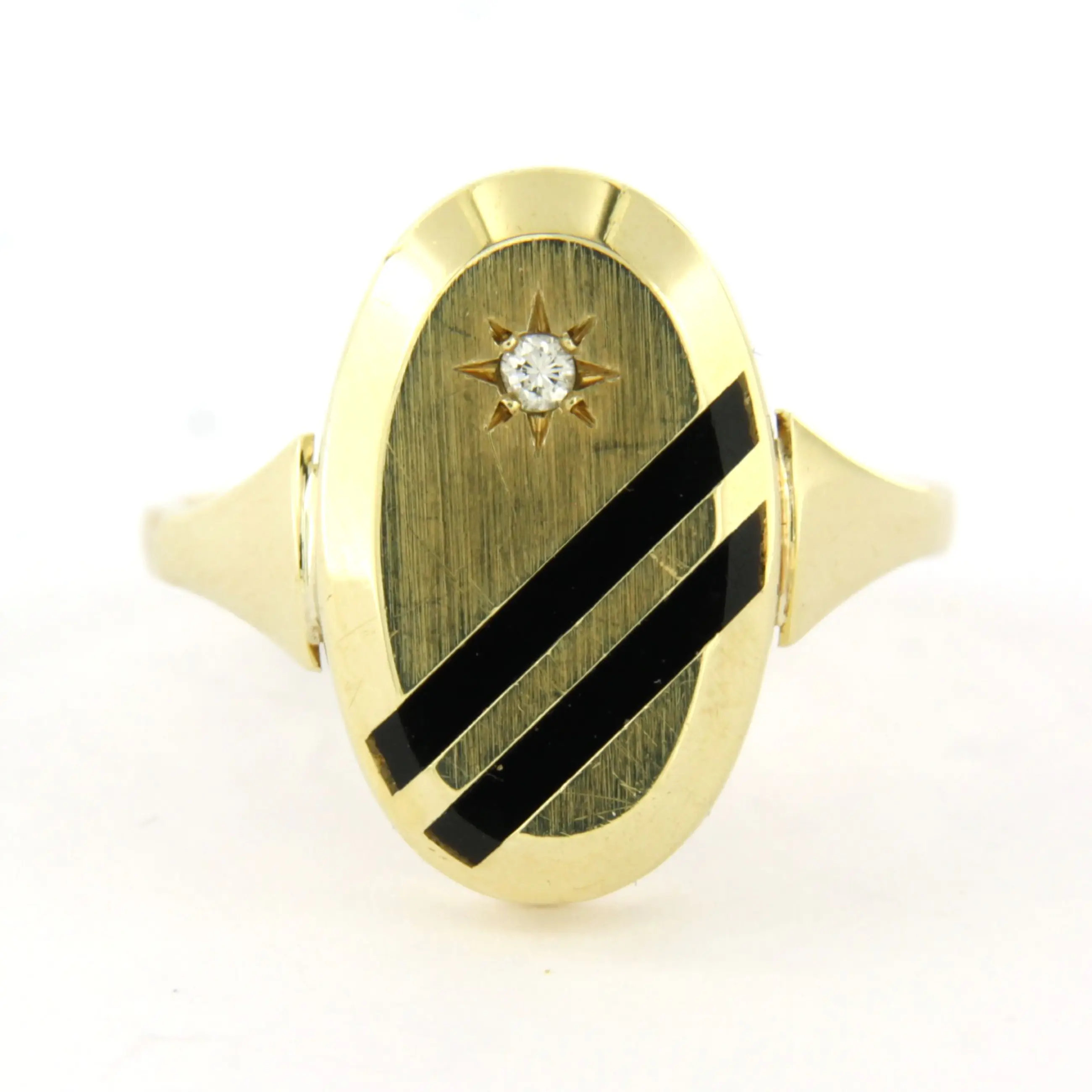 14k geelgouden ring bezet met onyx en briljant geslepen diamant tot. 0.02ct