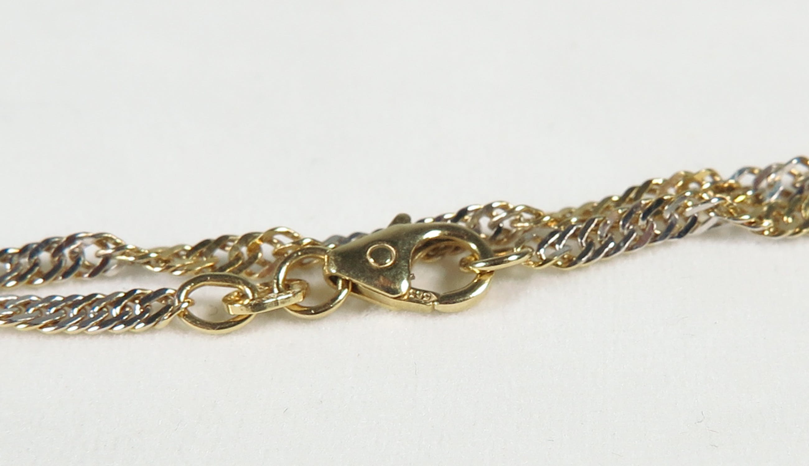 14k gouden bicolor Singapore-schakel collier, 585 gemerkt bij het slotje.