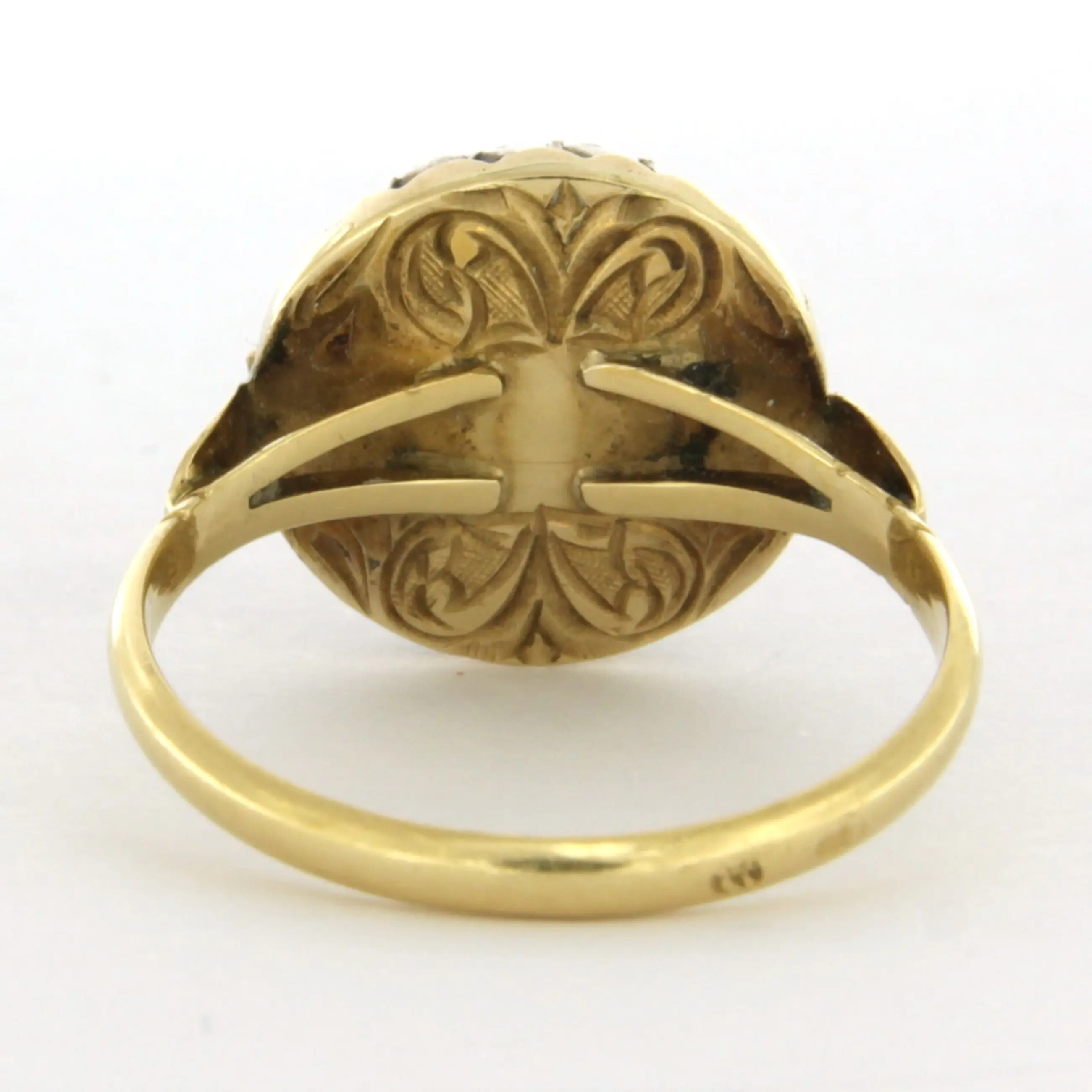 De bovenzijde van de ring is in een ovaal vorm van 1.3 cm breed en 8.4 mm hoog