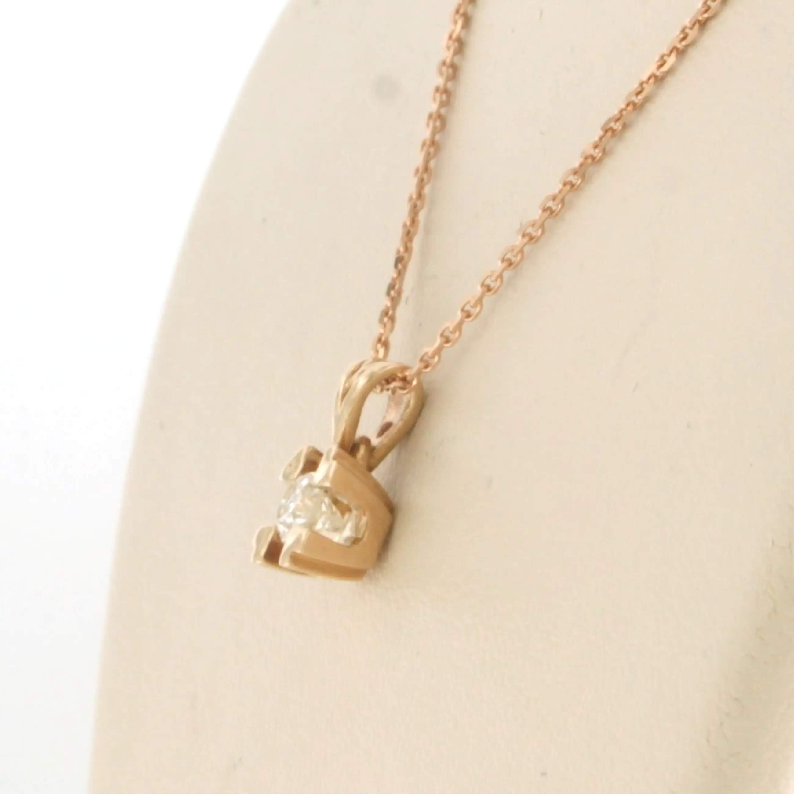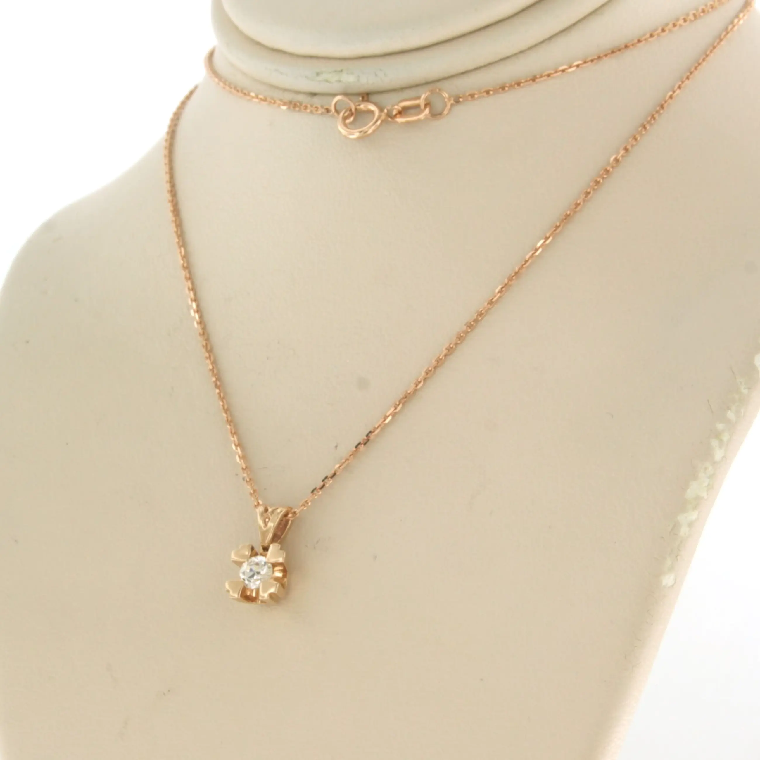 14k rosé gouden collier met solitair hanger bezet met Bolsjewiek geslepen diamant tot. 0,19ct - G/H - SI - 45 cm lang