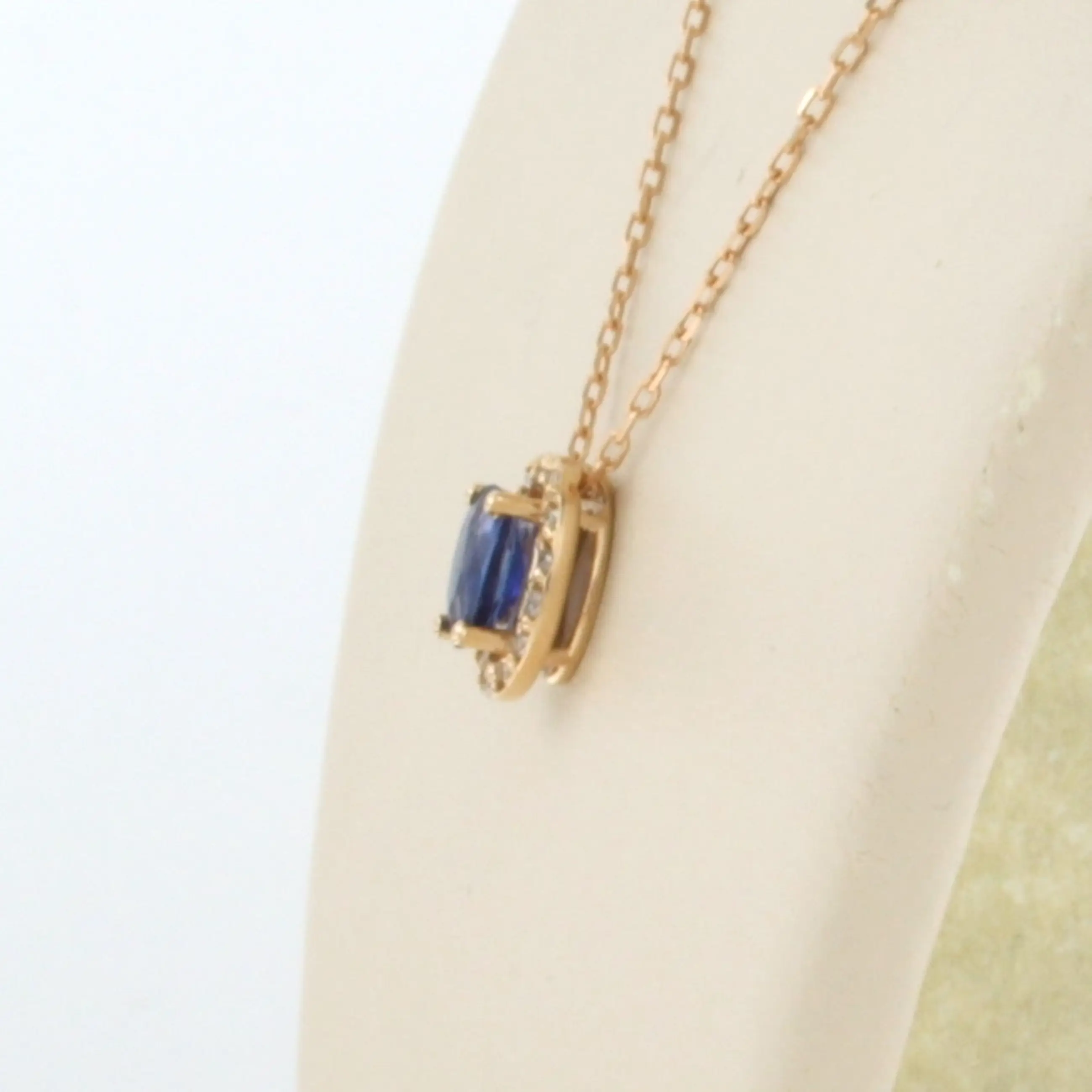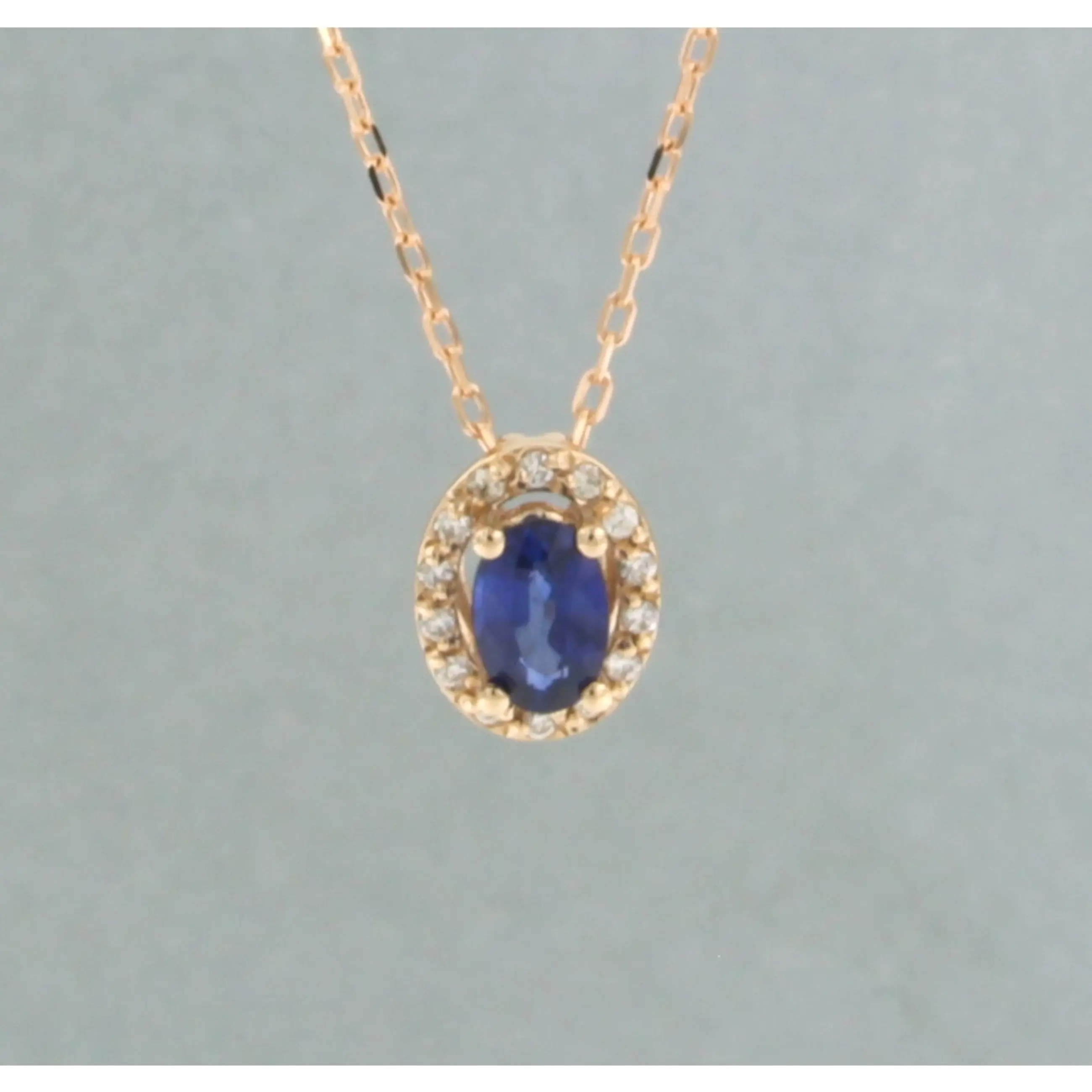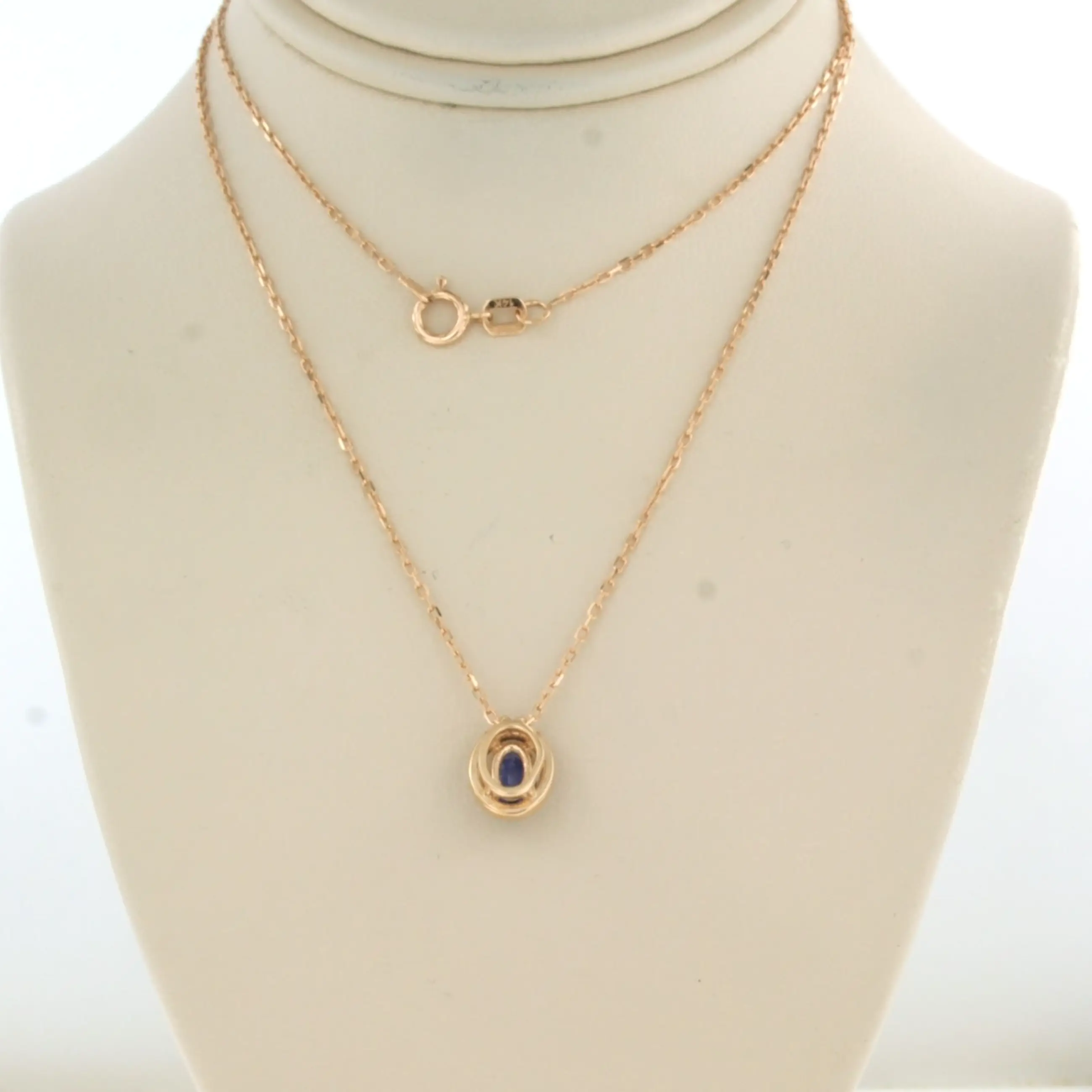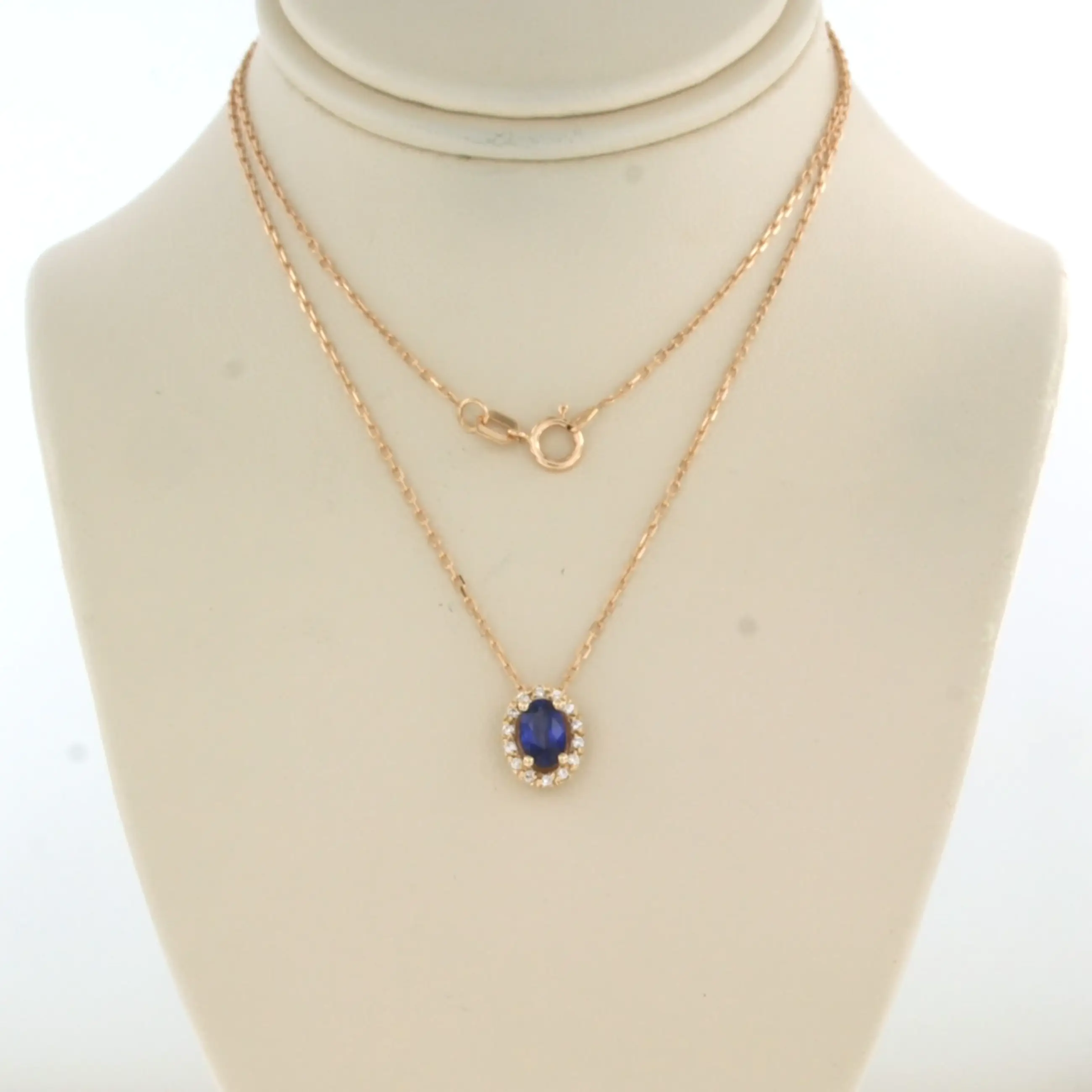 14k rosé gouden collier met hanger bezet saffier tot. 0,60ct en briljant geslepen diamant tot. 0,10ct - F/G - VS/SI - 45 cm lang
