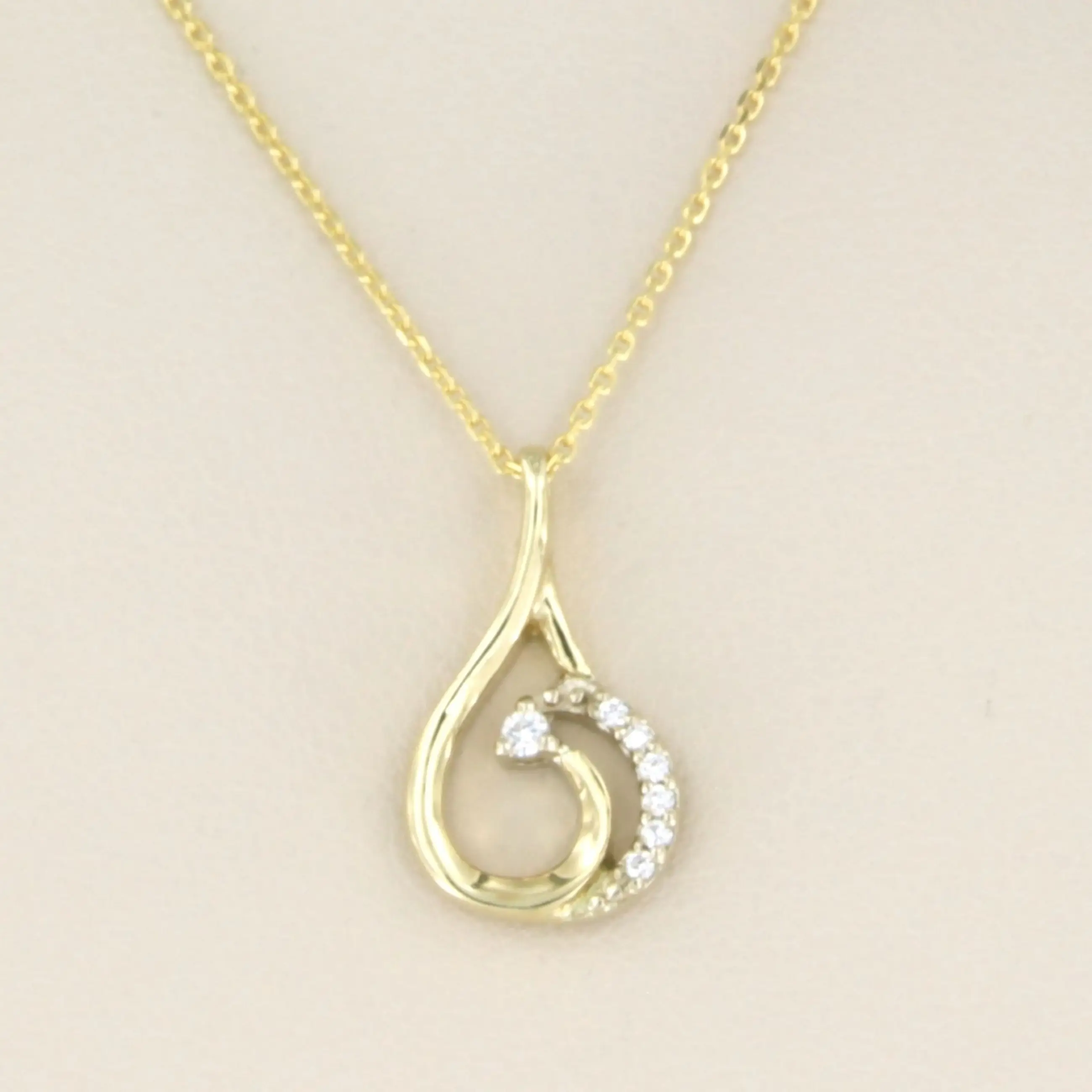 14k geel gouden collier met bicolor gouden hanger bezet met briljant geslepen diamant tot. 0,07ct - 45 cm lang