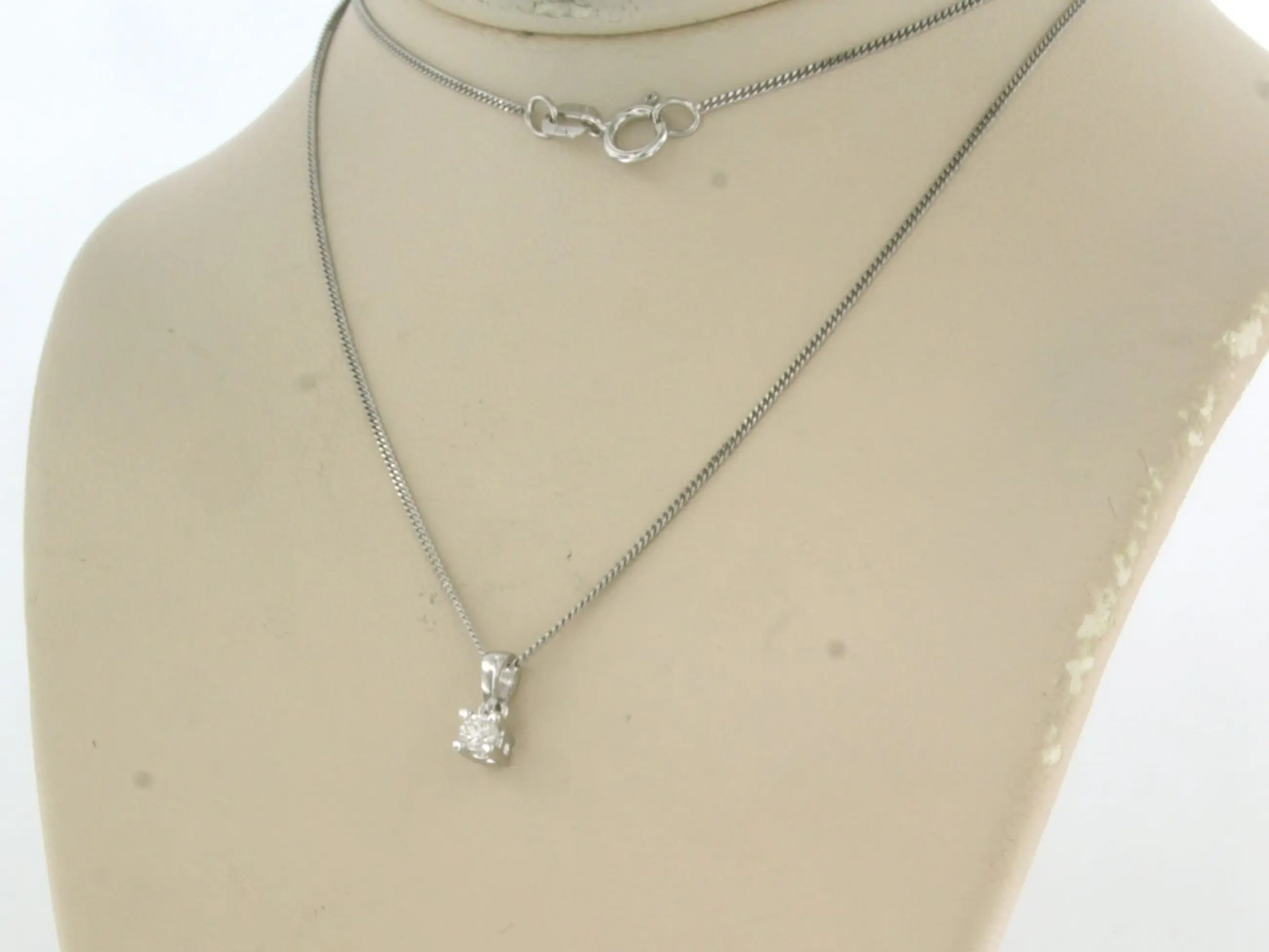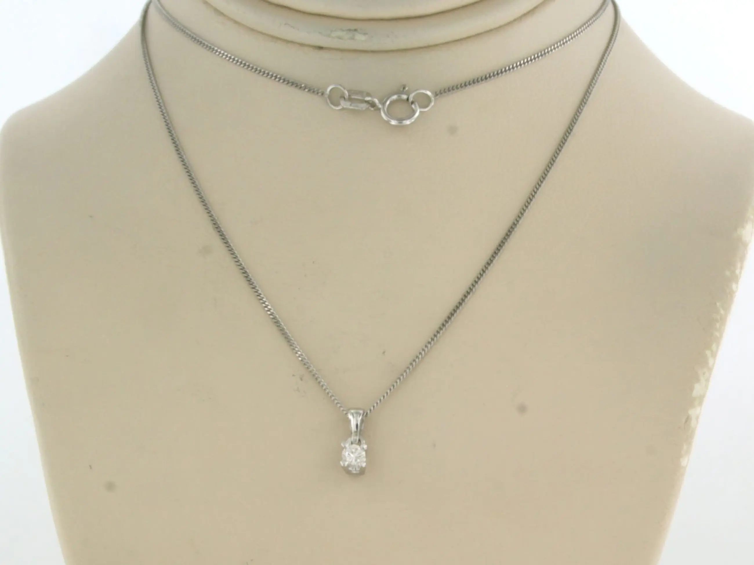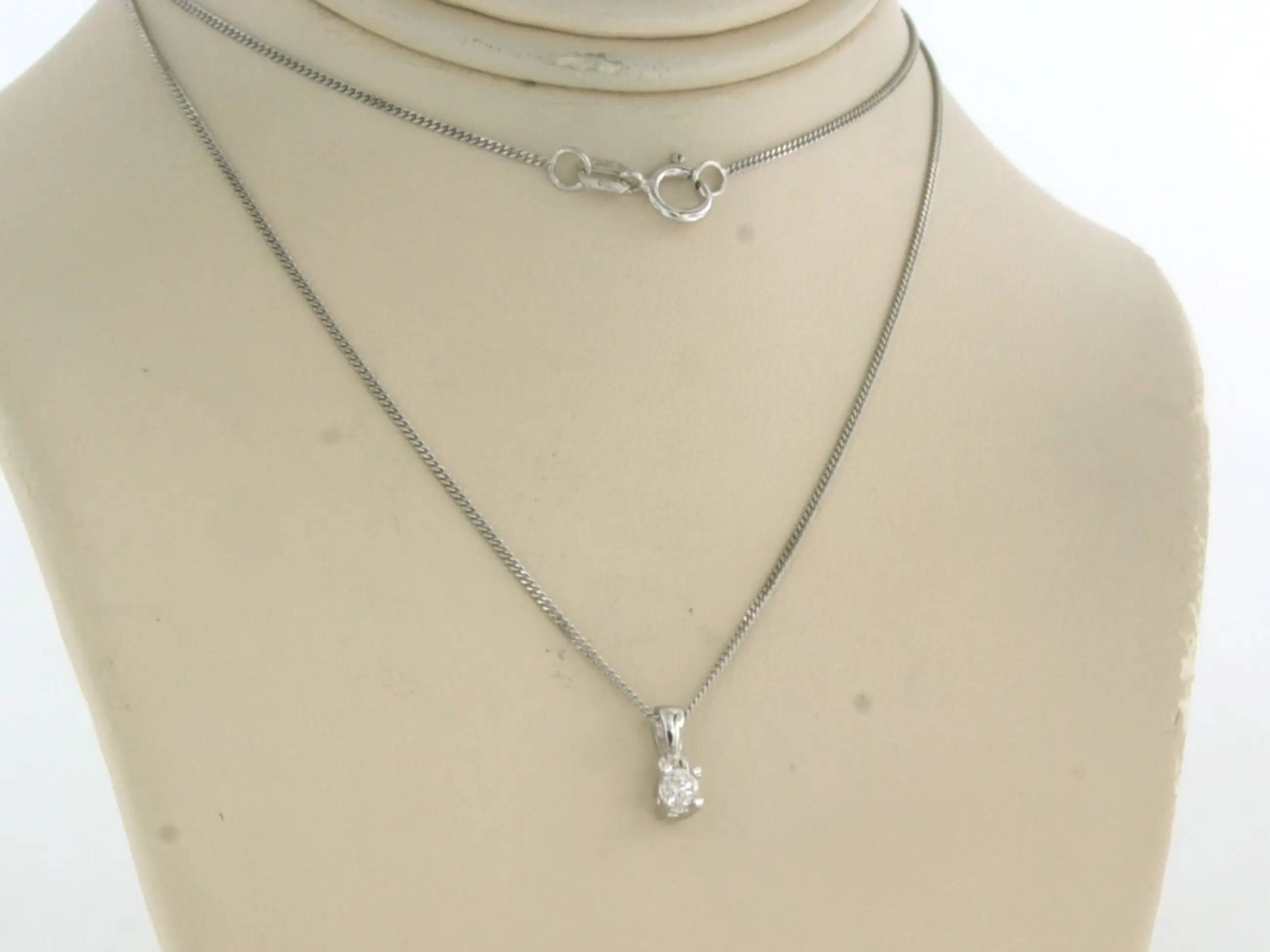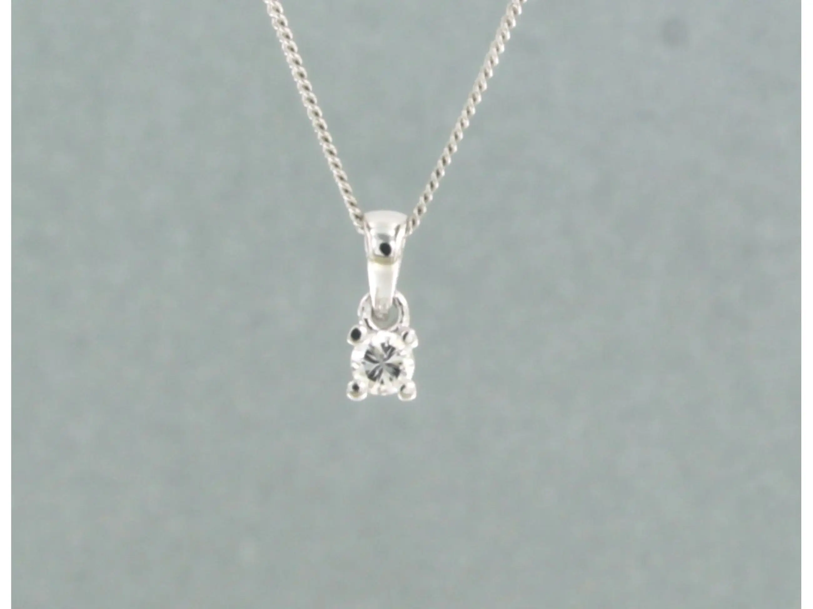 14k wit gouden collier met hanger bezet met briljant geslepen diamant 0.10 ct - F/G - VS/SI - 45cm lang