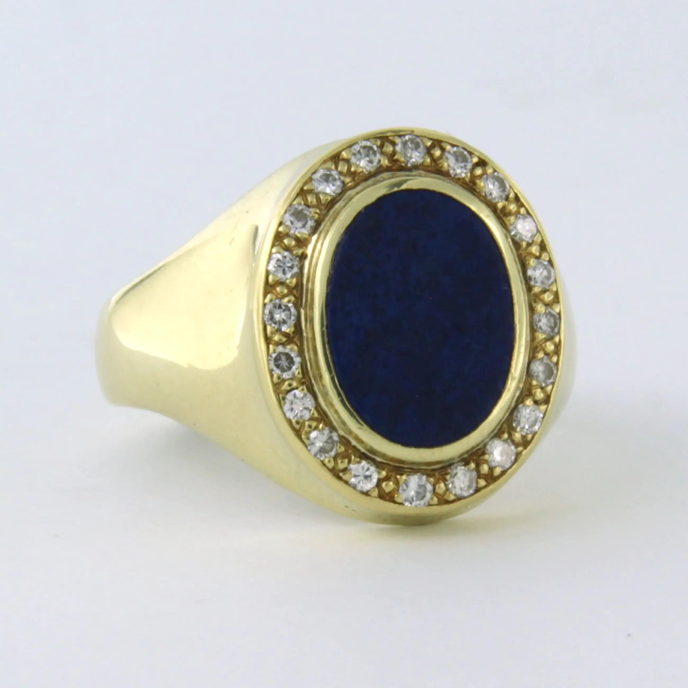 14k geel gouden heren ring bezet met lapis lazuli en briljant geslepen diamant tot. 0,20ct - F/G - VS/SI - ringmaat 17,25(54)