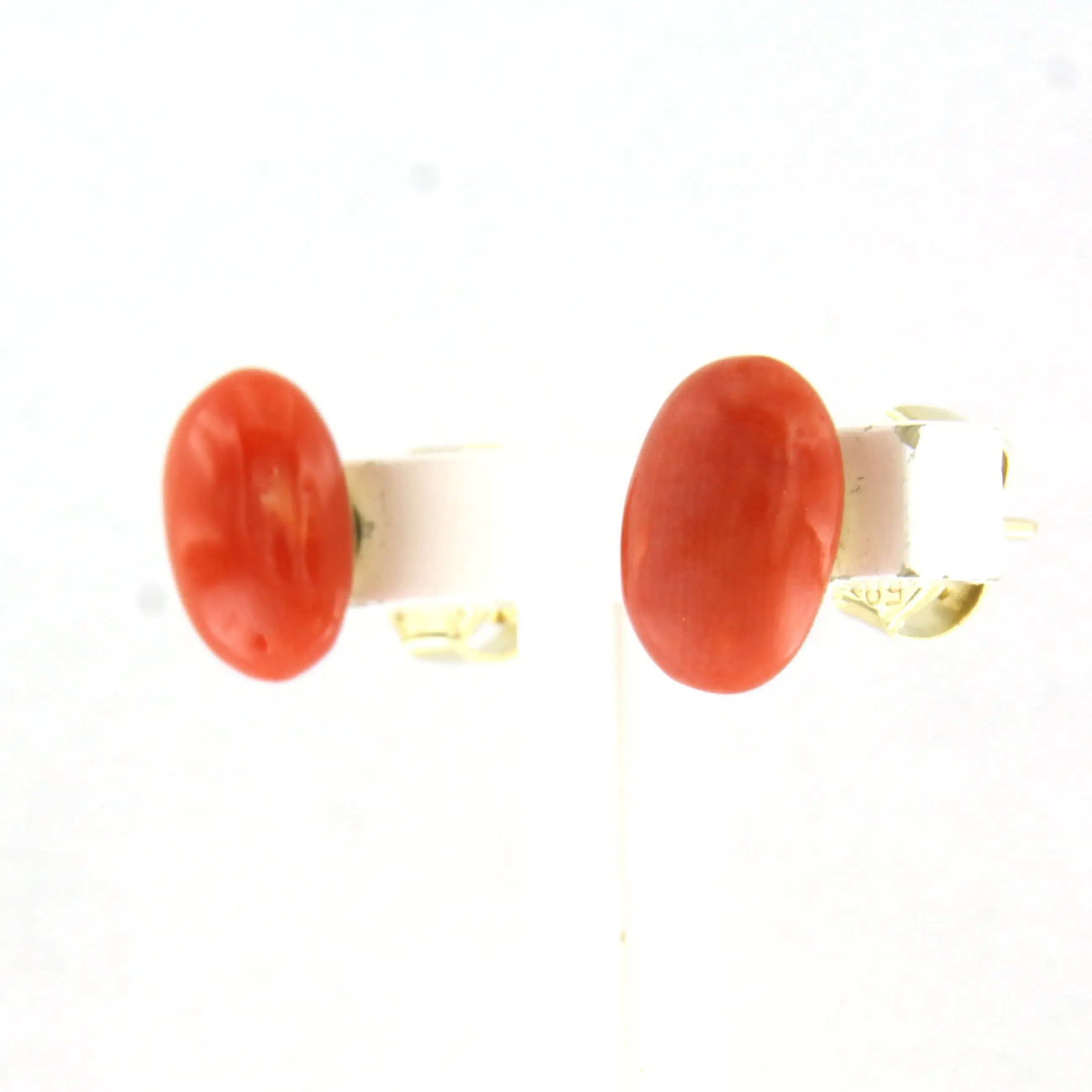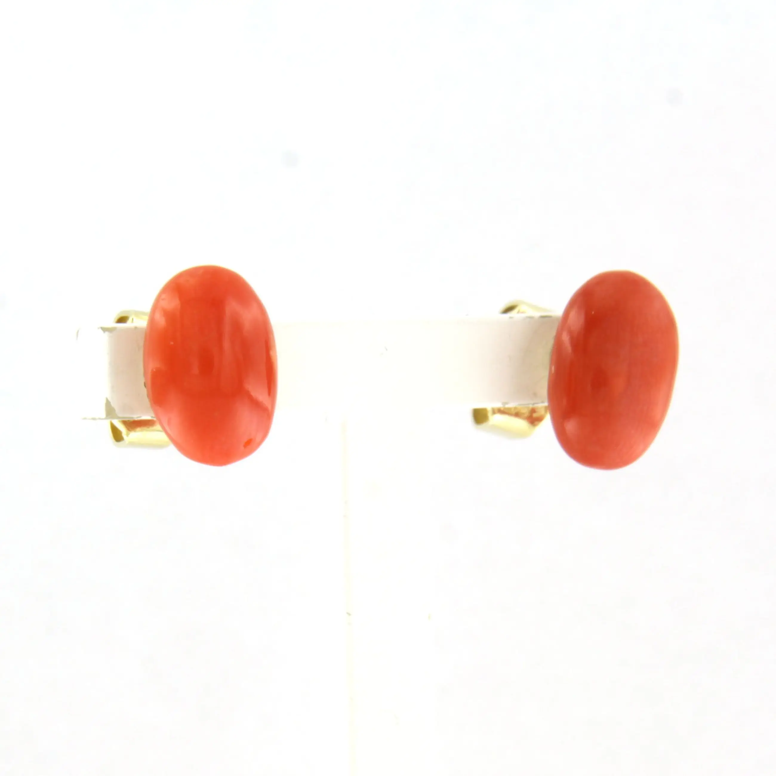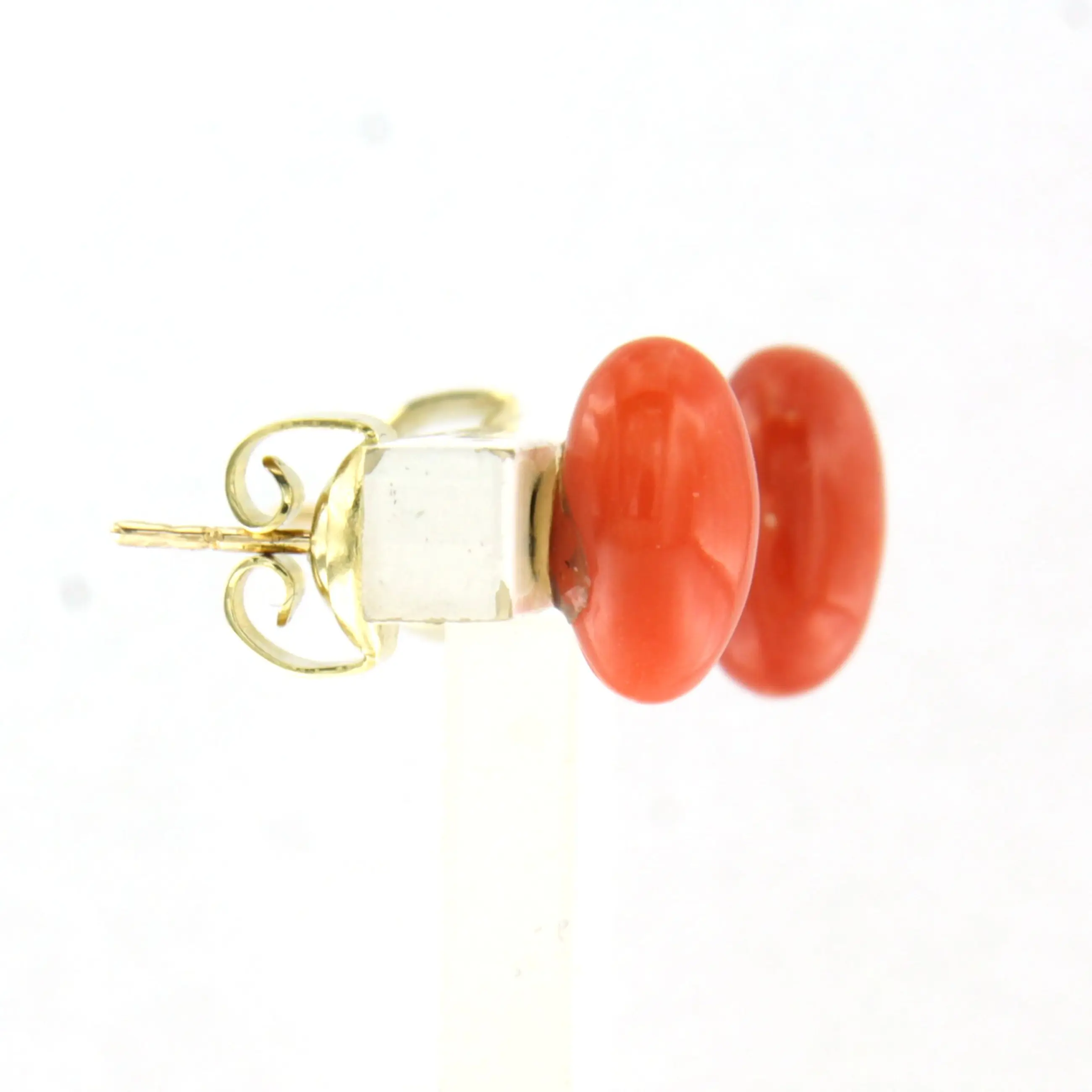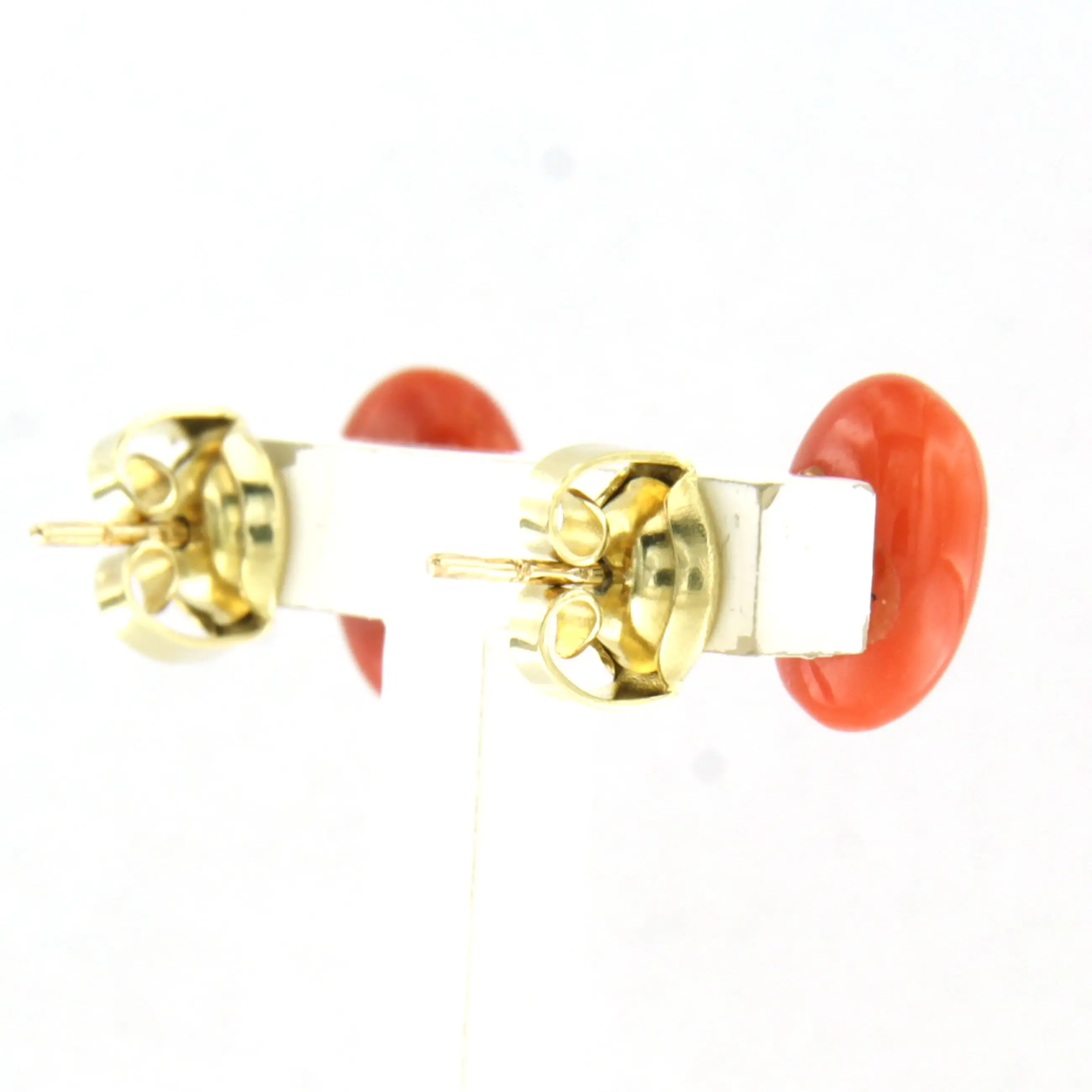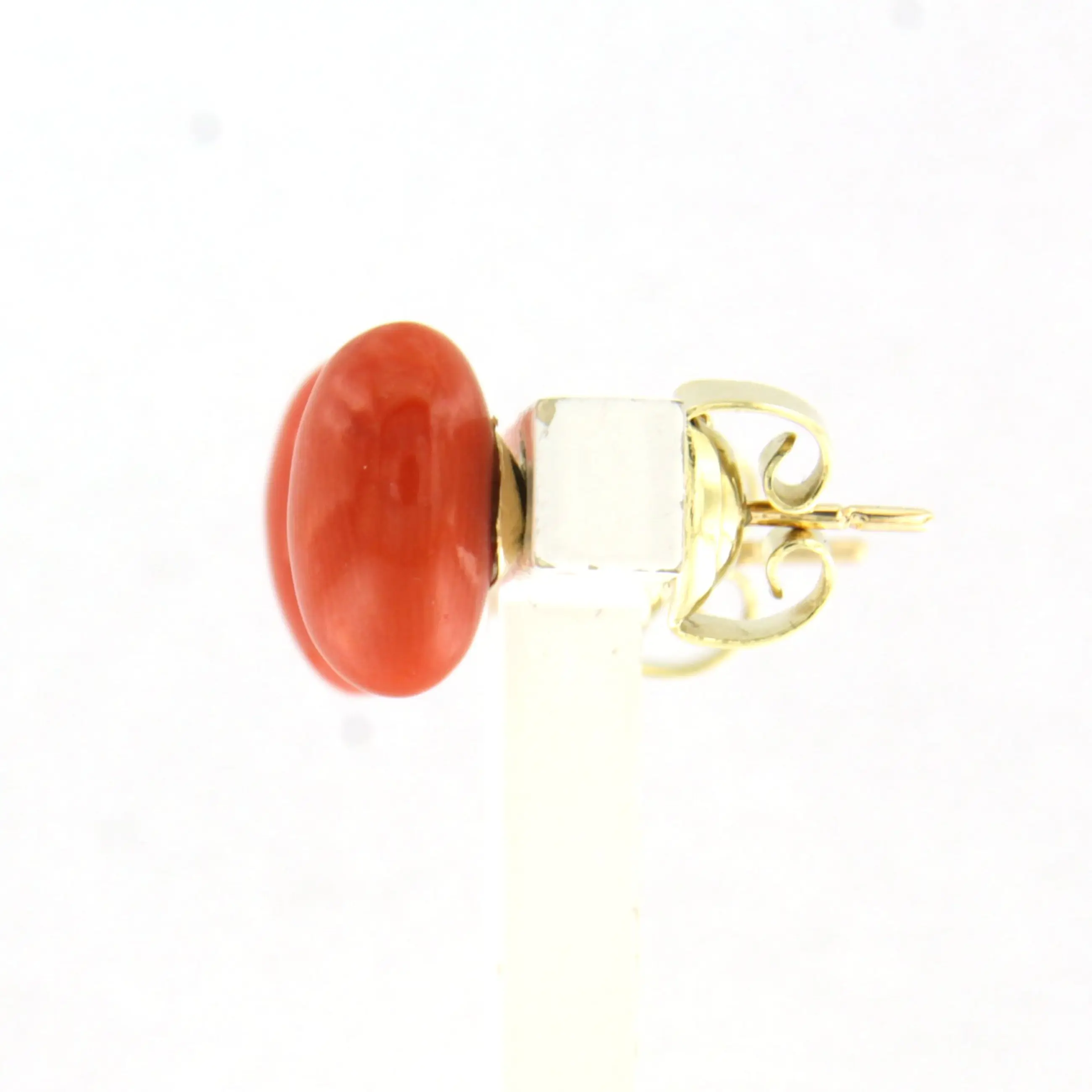 14k gouden oorknoppen bezet met koraal kopen? Bied vanaf 180!