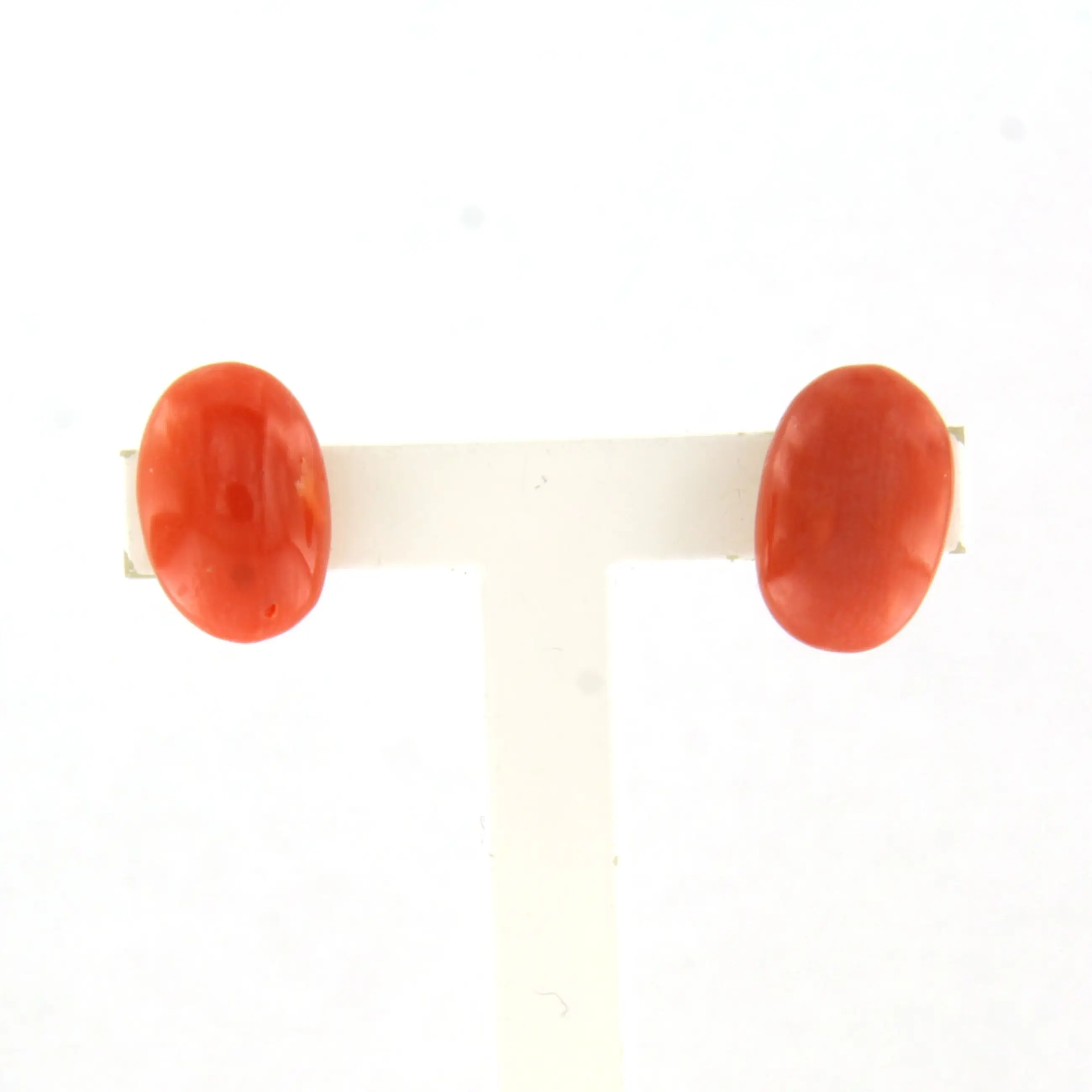 - 2 x 1.0 cm x 7.0 mm cabochon geslepen koraal