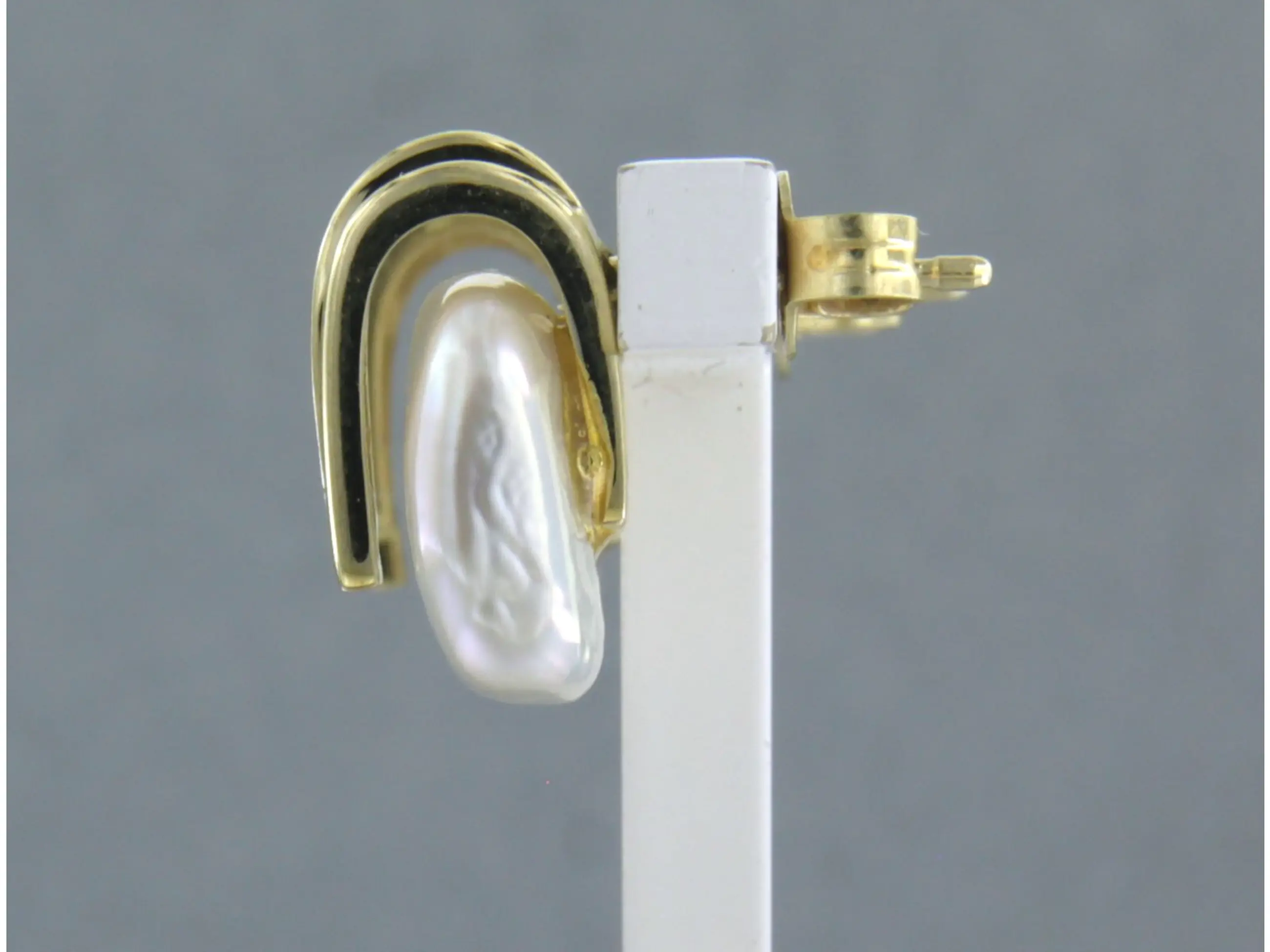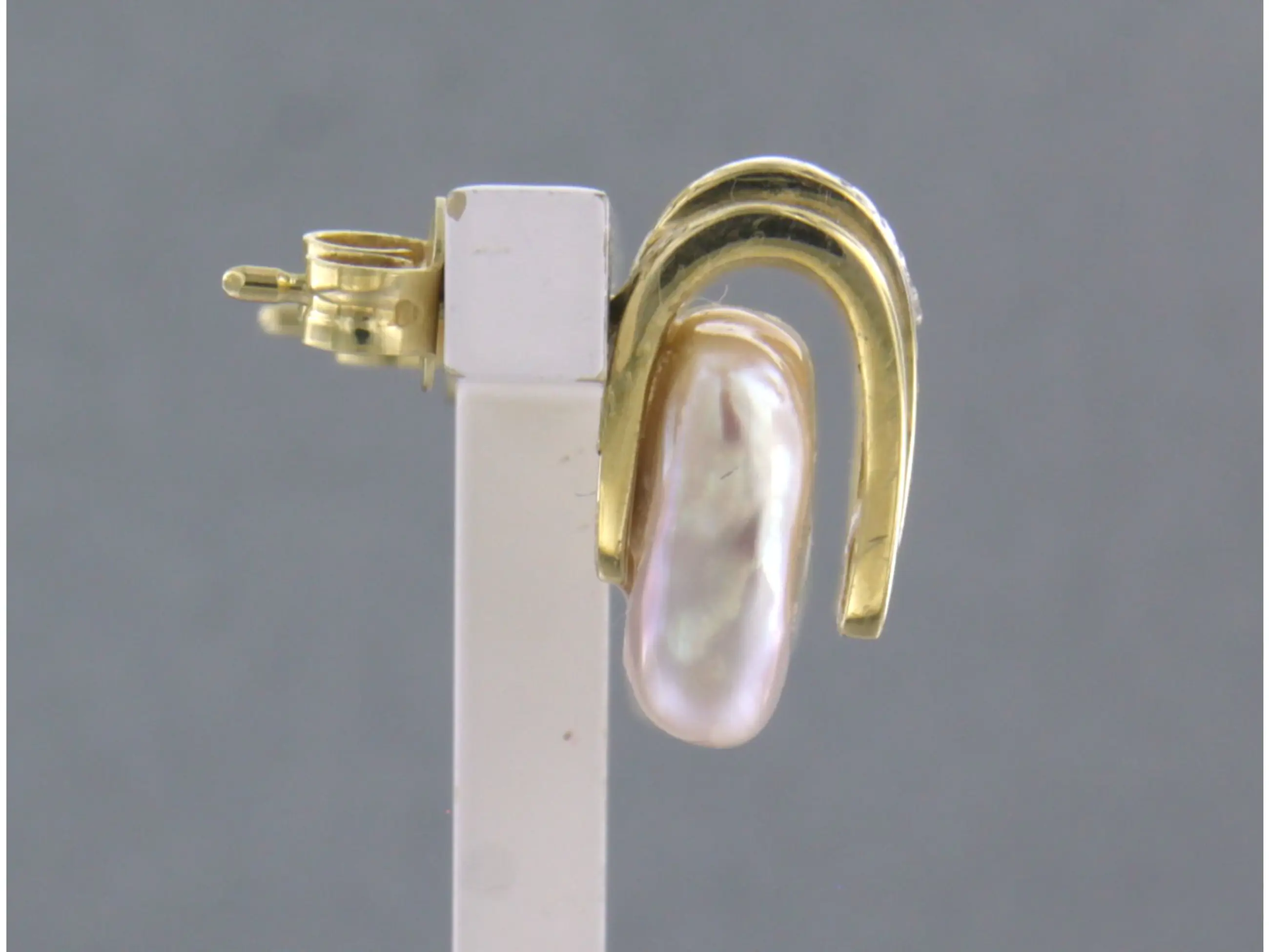 14k bicolor gouden oorknoppen bezet met parel en briljant geslepen diamant tot. 0.03ct - F/G - VS/SI