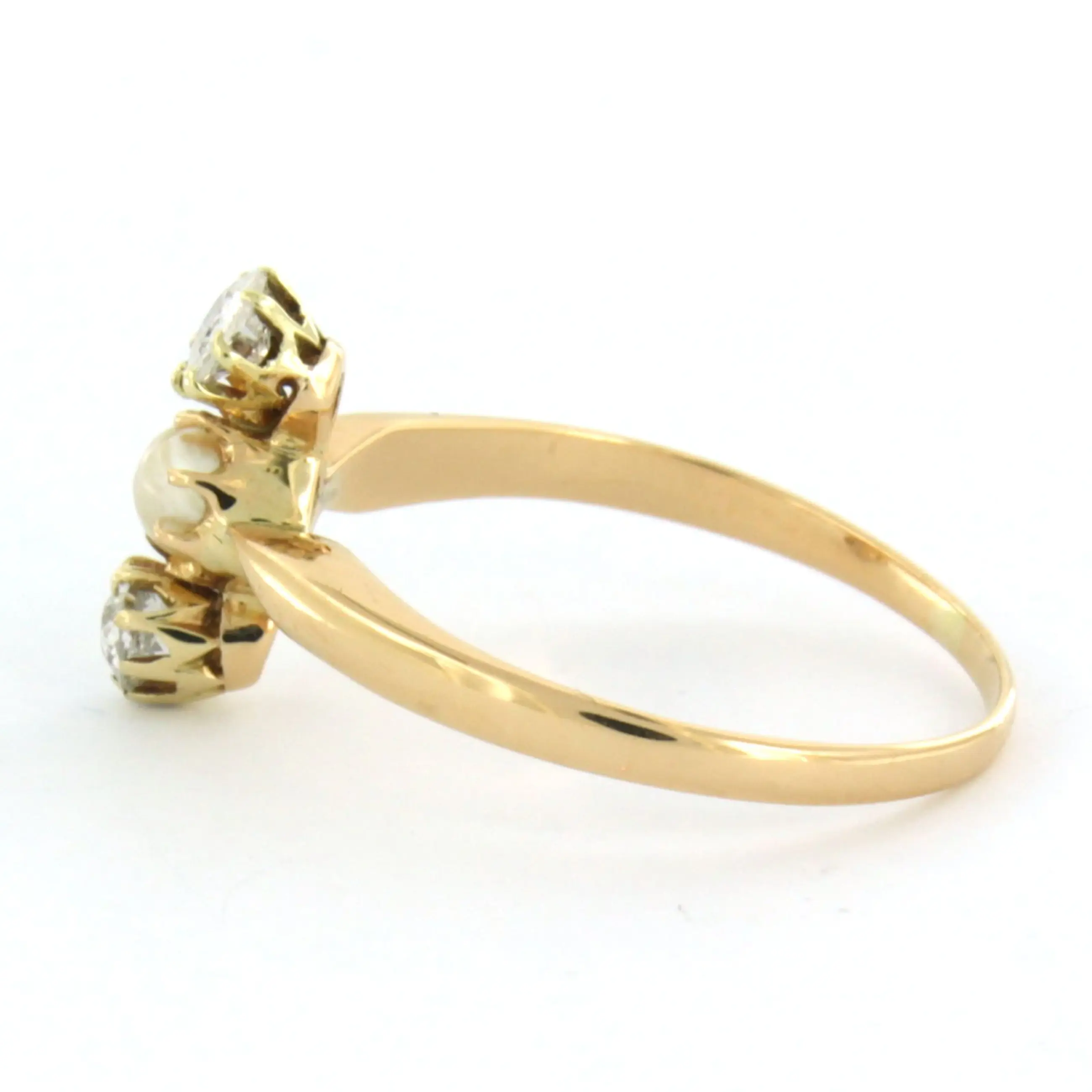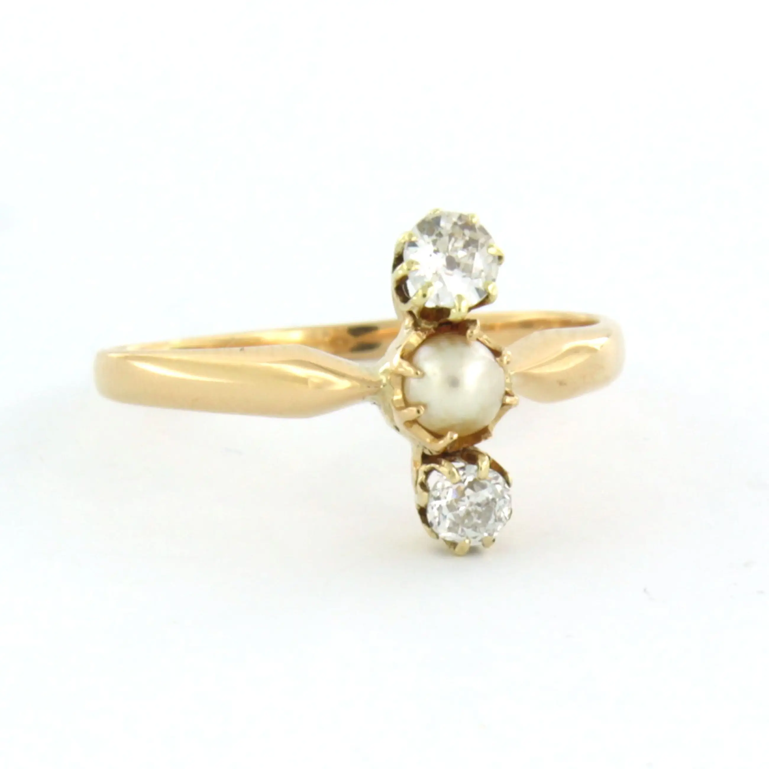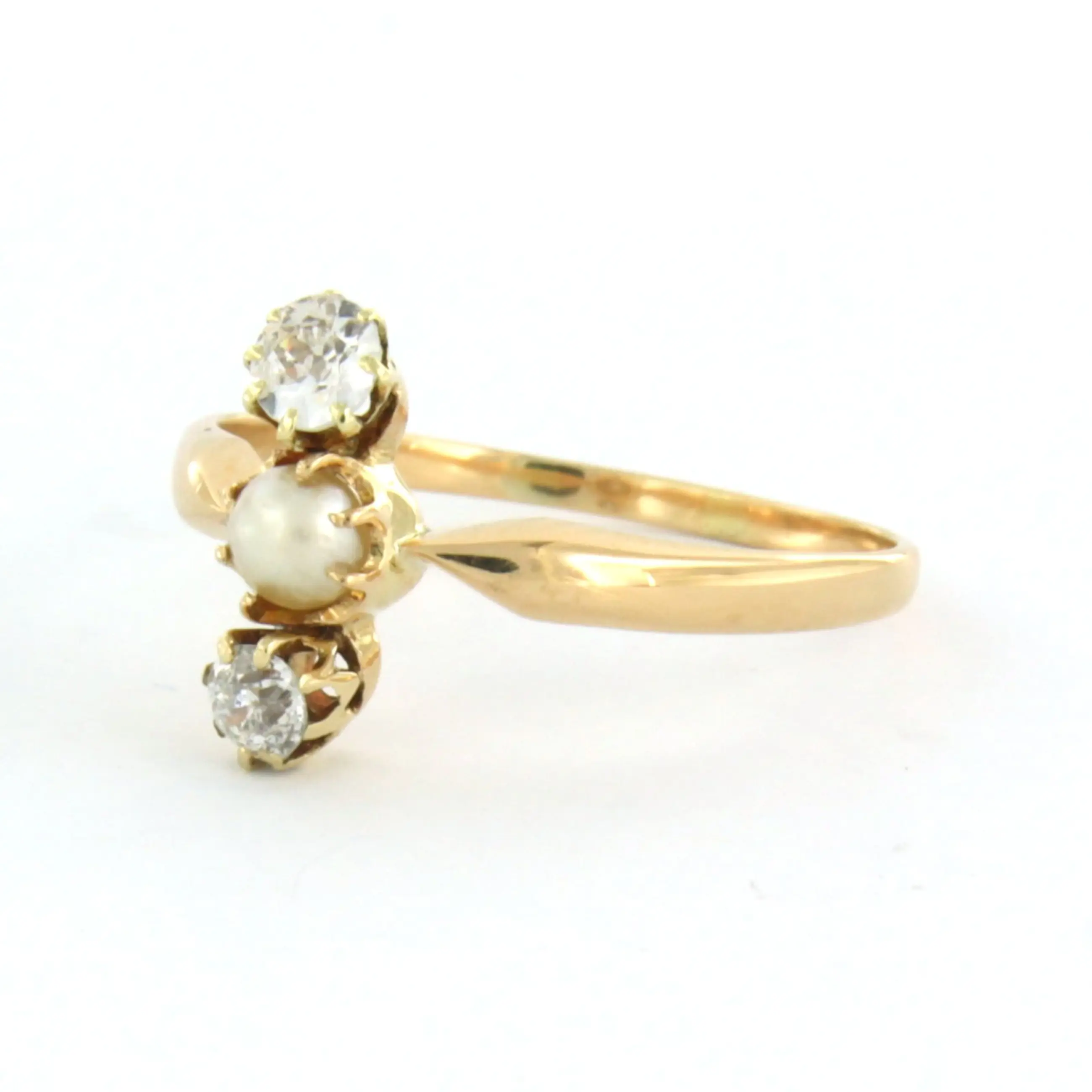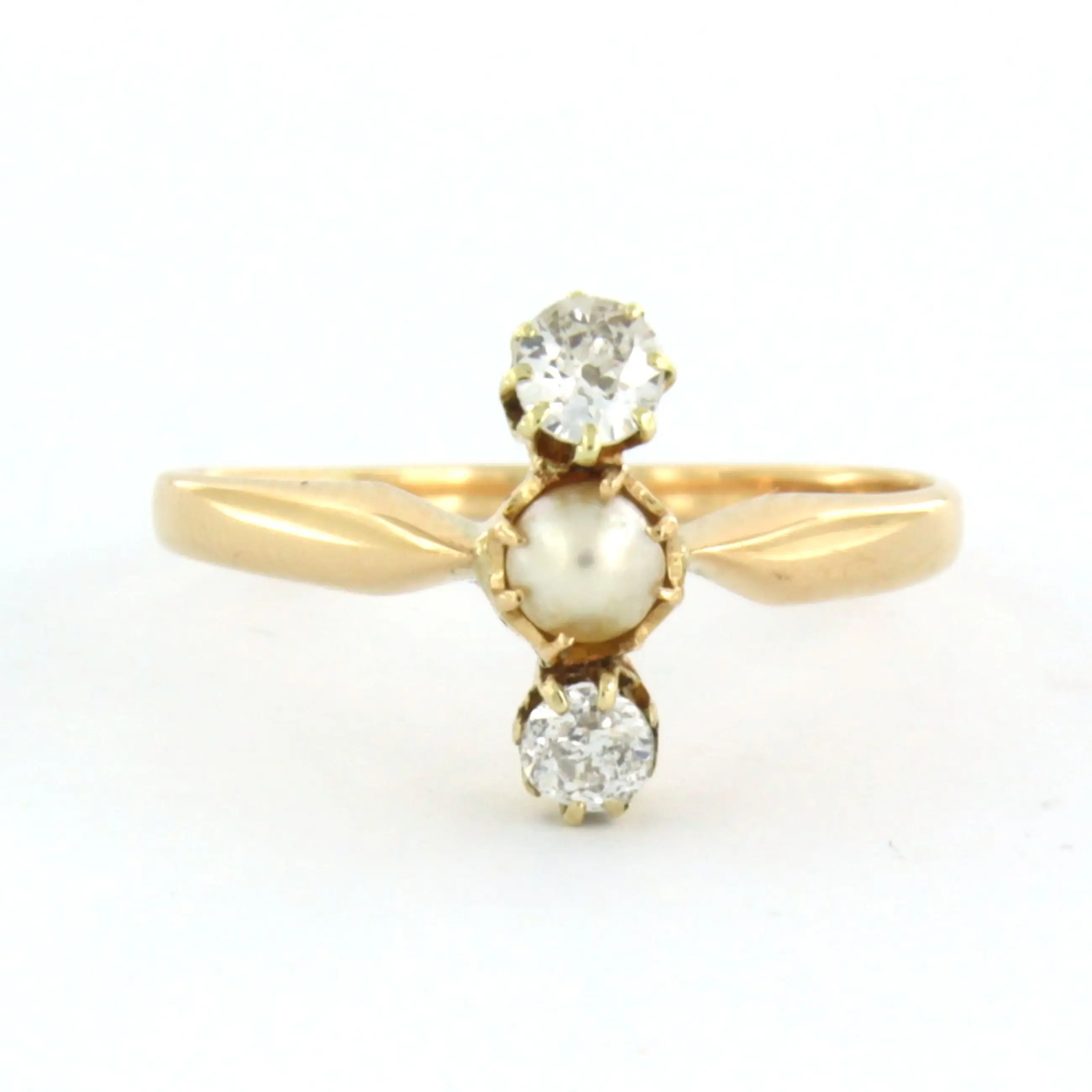 14k gouden ring bezet met parel en oud Amsterdams geslepen diamant tot. 0,30ct - F/G - SI - ringmaat 18.25 (57)