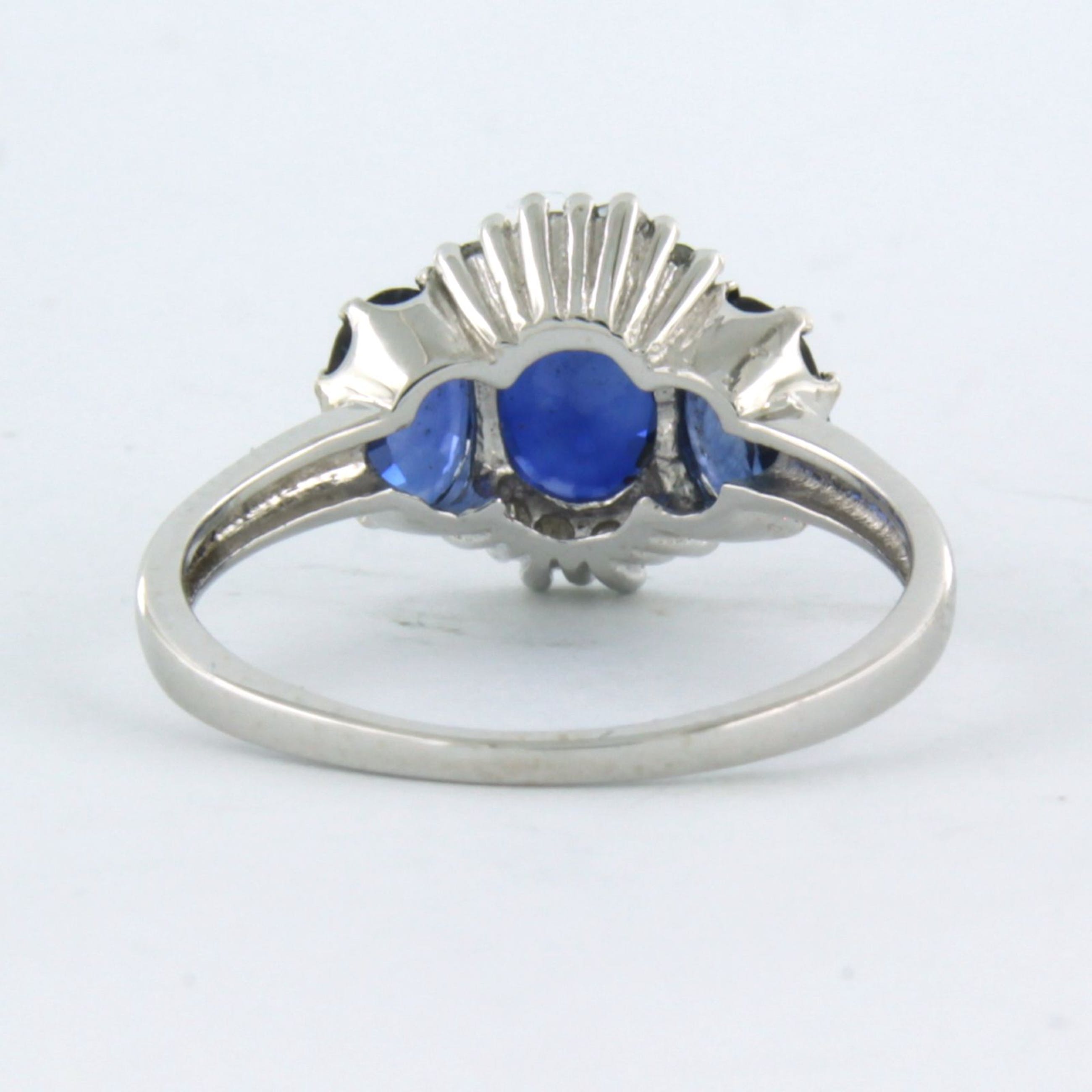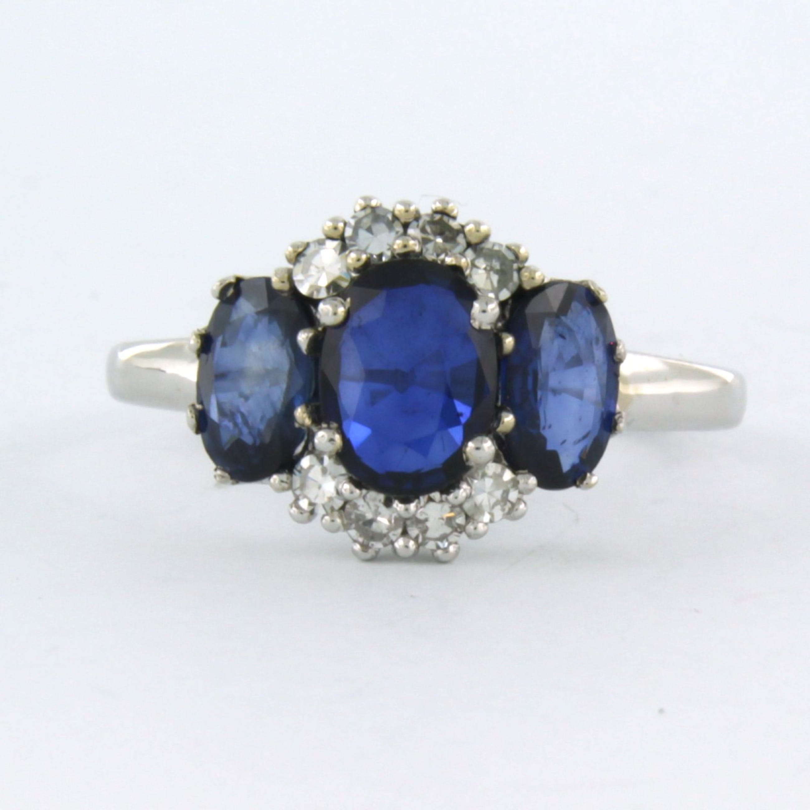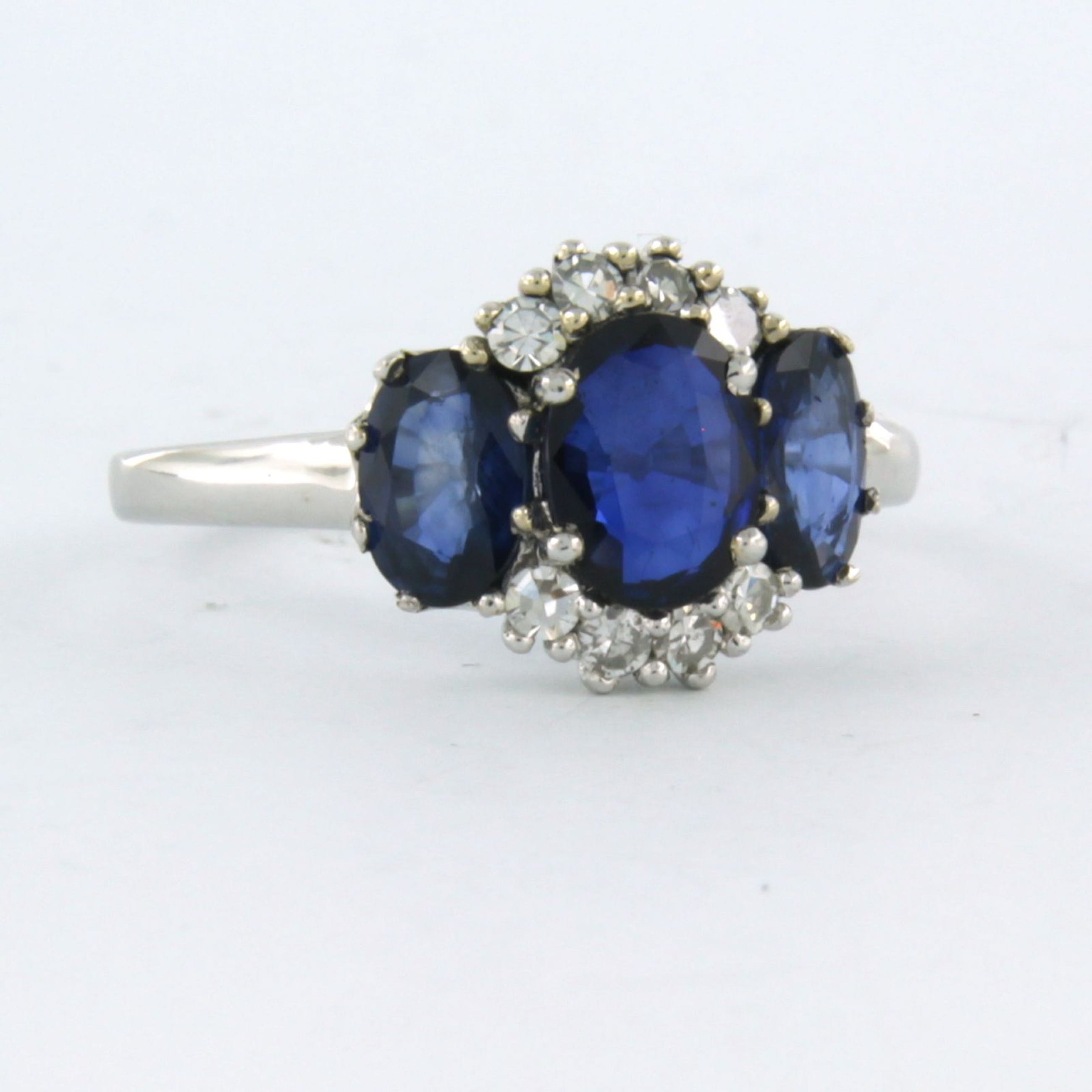 14k witgouden ring bezet saffier tot. 1,90ct en single cut geslepen diamant tot. 0,18ct - F/G - VS-SI - ringmaat 17.25 (54)