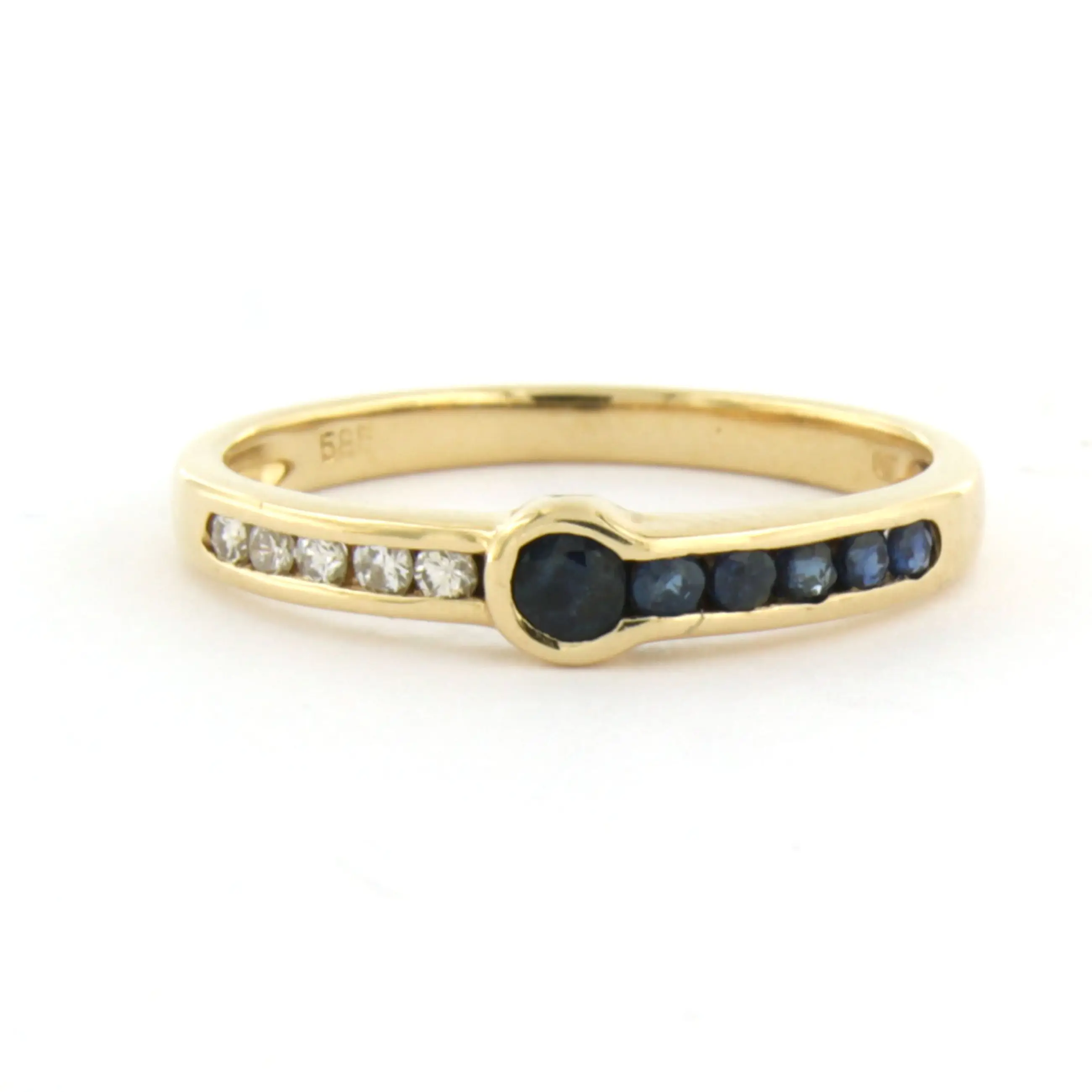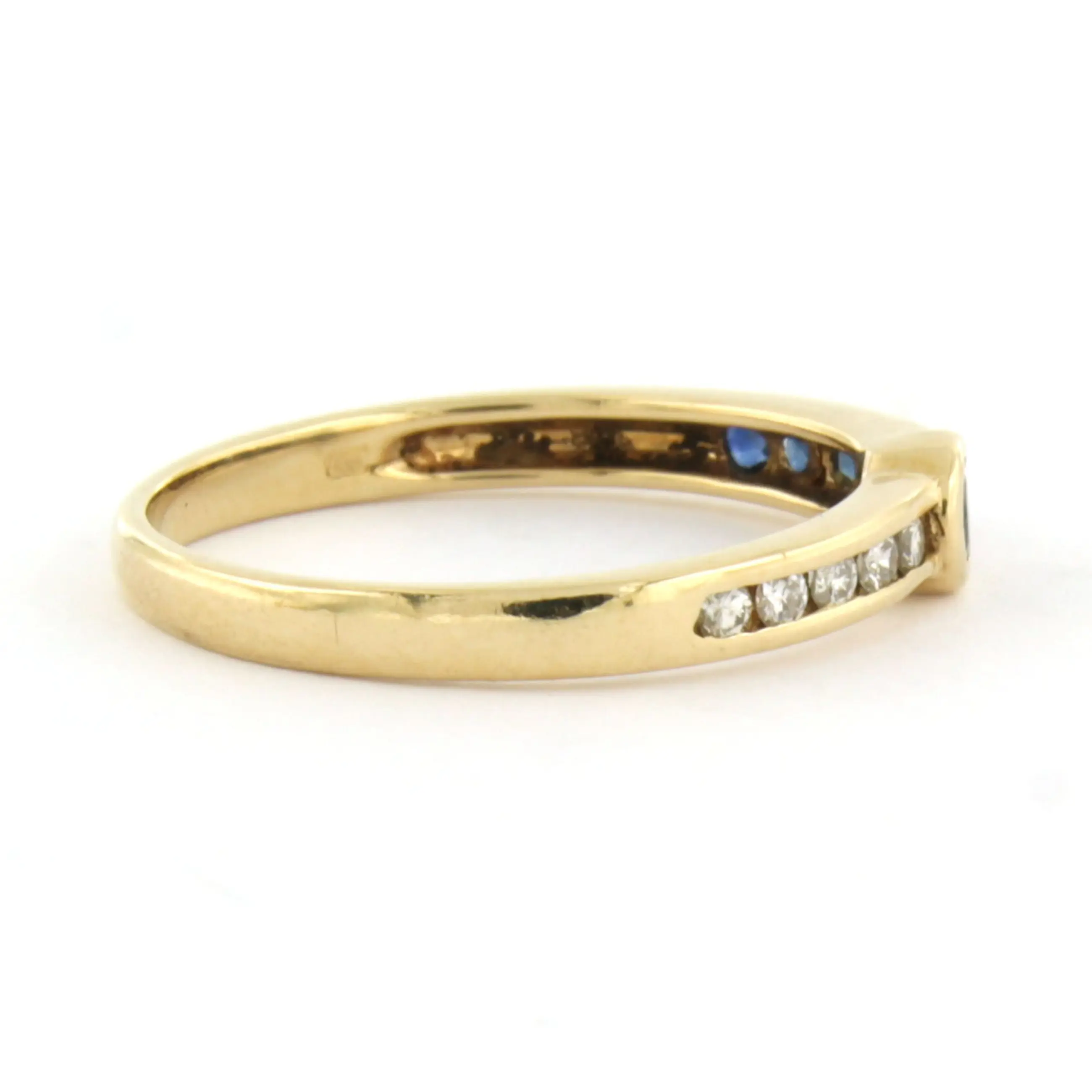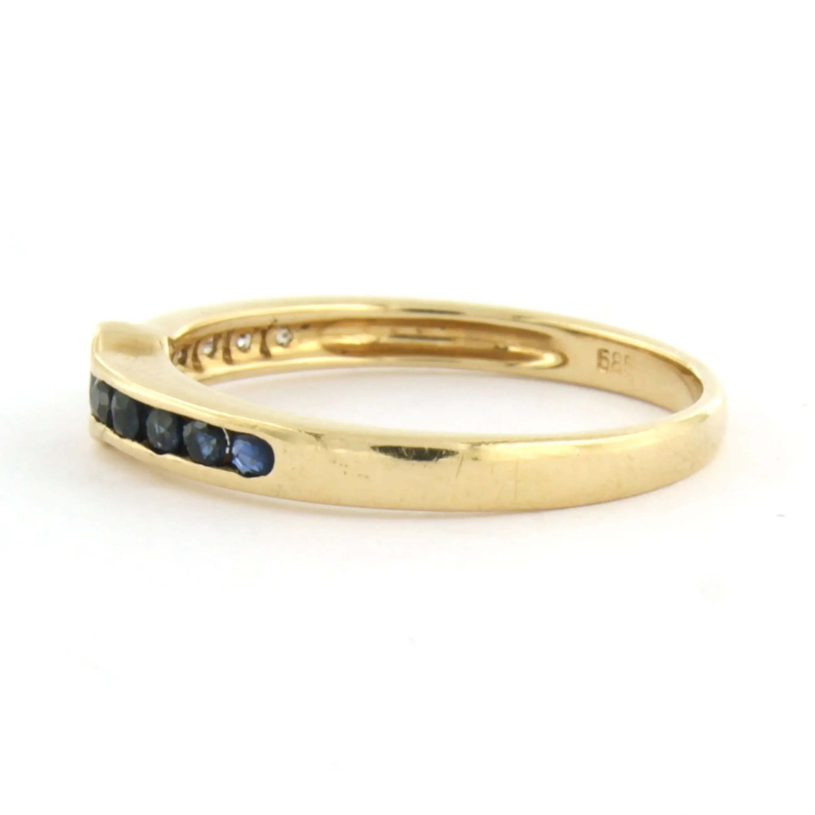 14k geel gouden ring bezet met saffier tot. 0.65ct en briljant geslepen diamant tot. 0.10ct - F/G - VS/SI - ringmaat 17.25(54)