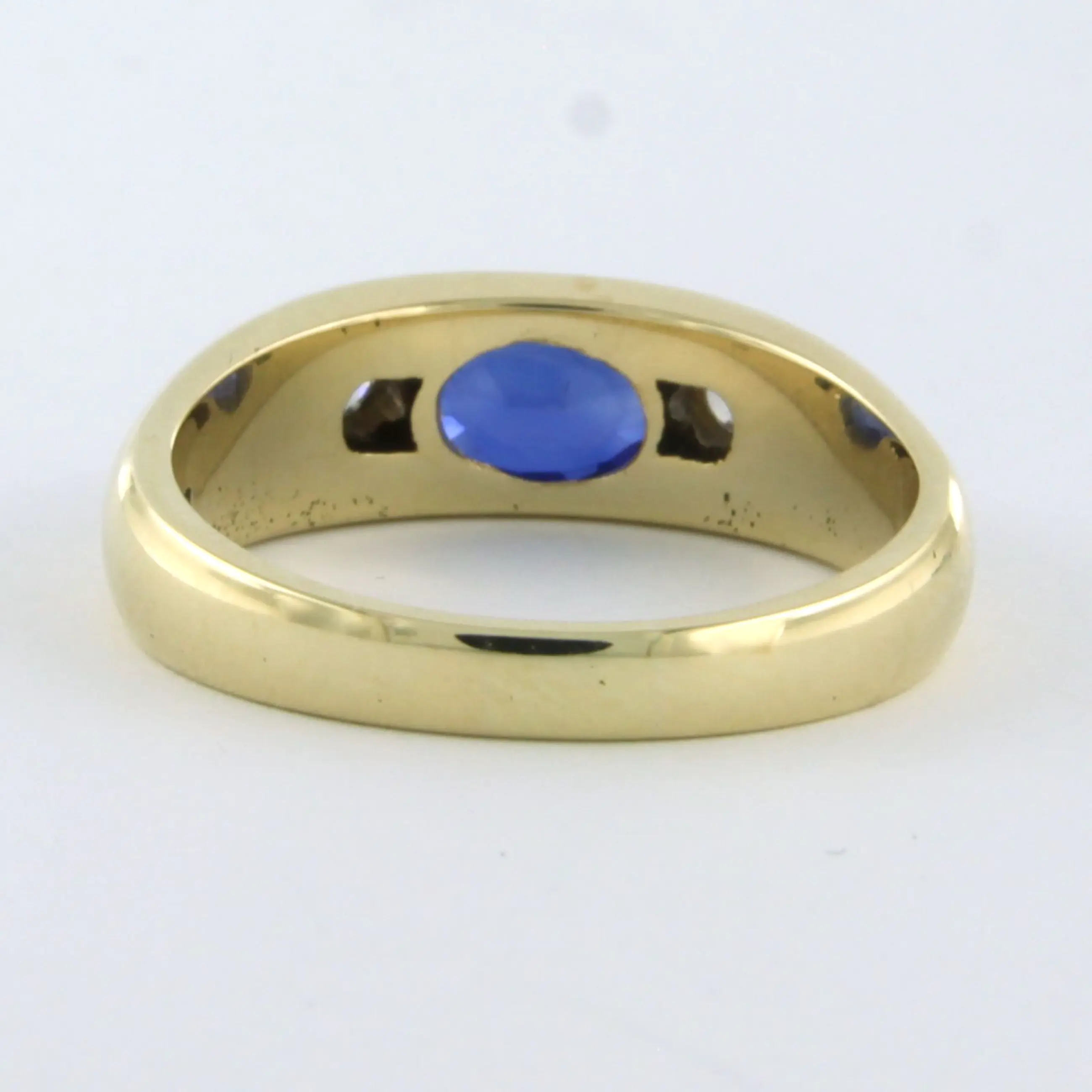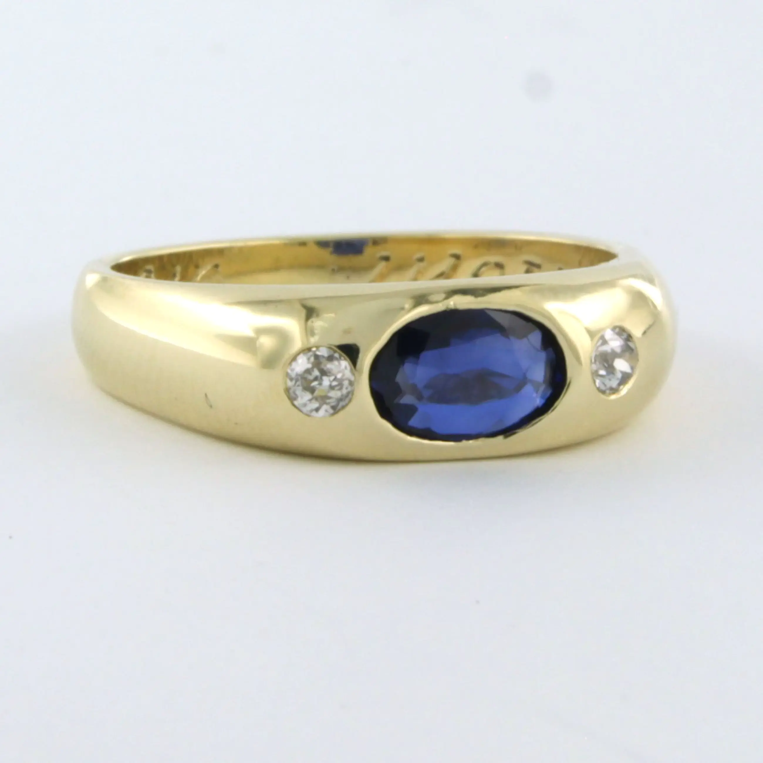 14k geel gouden ring met saffier tot.0.84ct en Bolsjewiek geslepen diamant tot.0.10ct - G/H - SI - ringmaat 17.5(55)