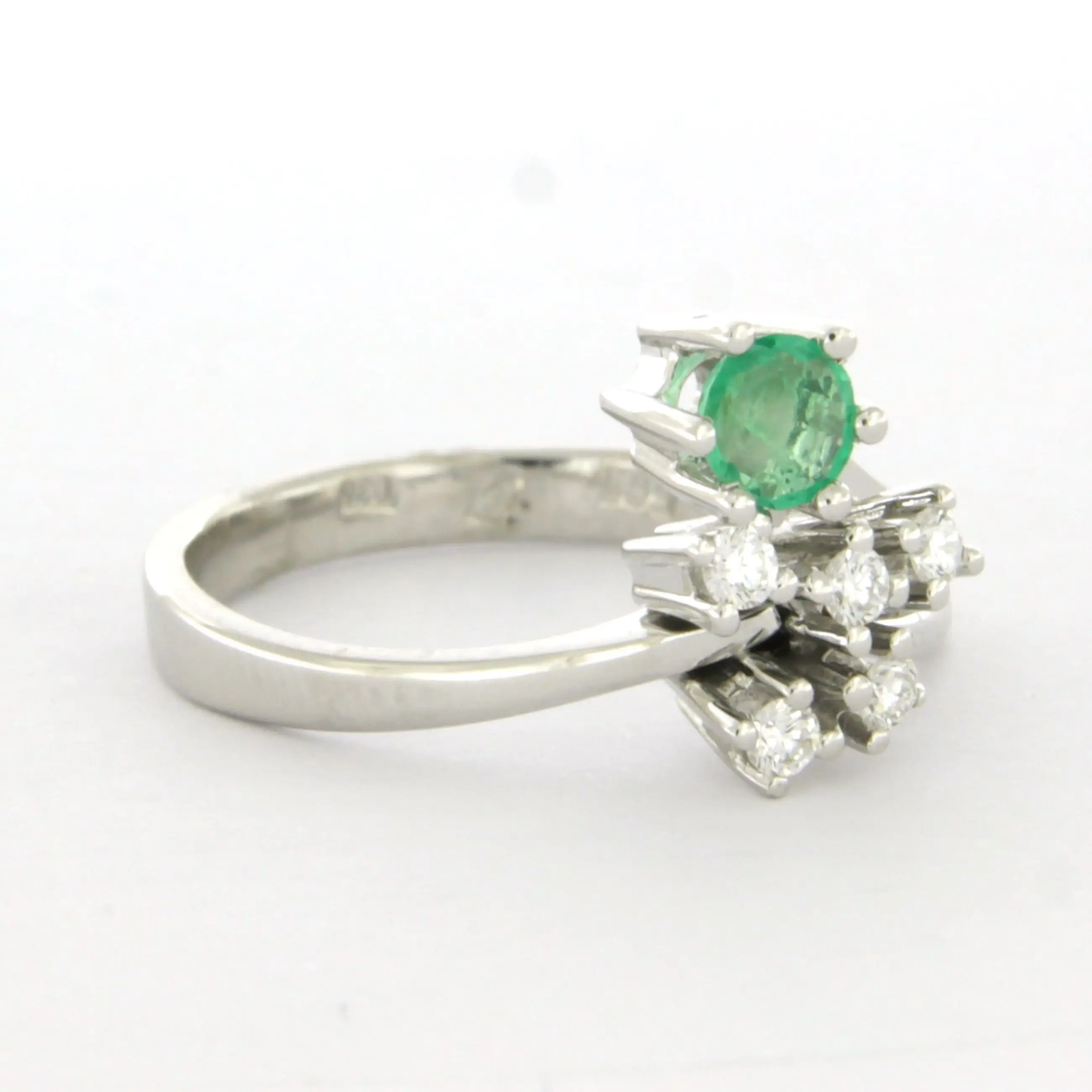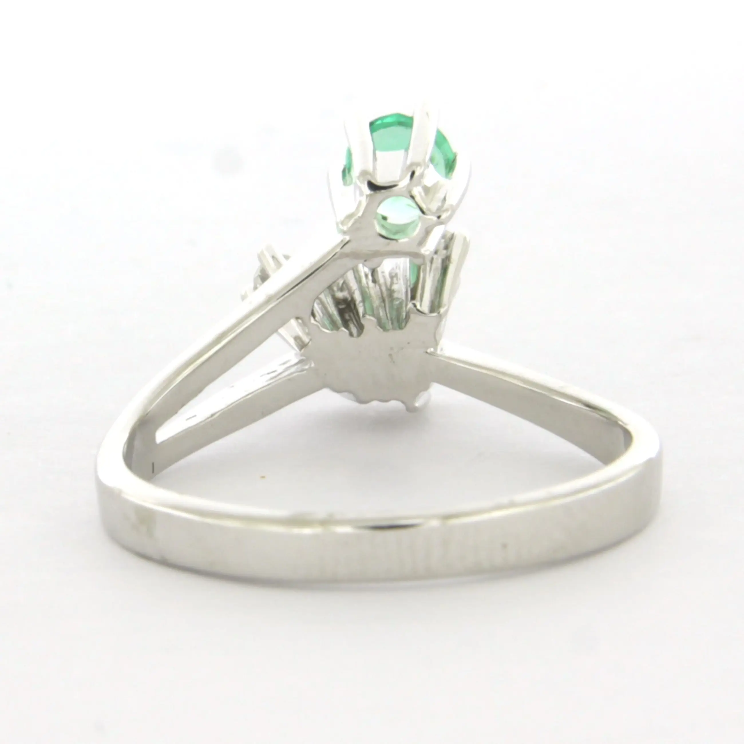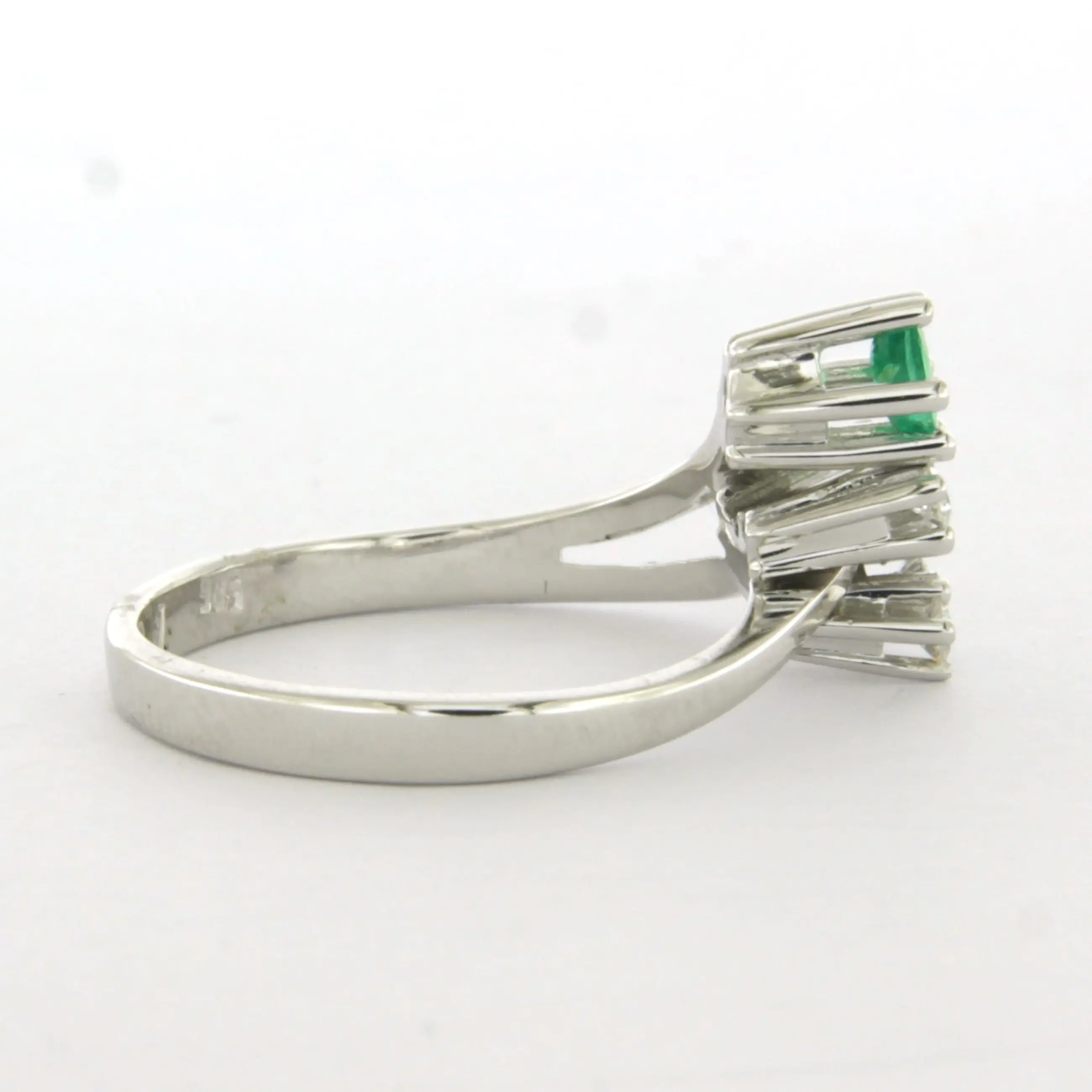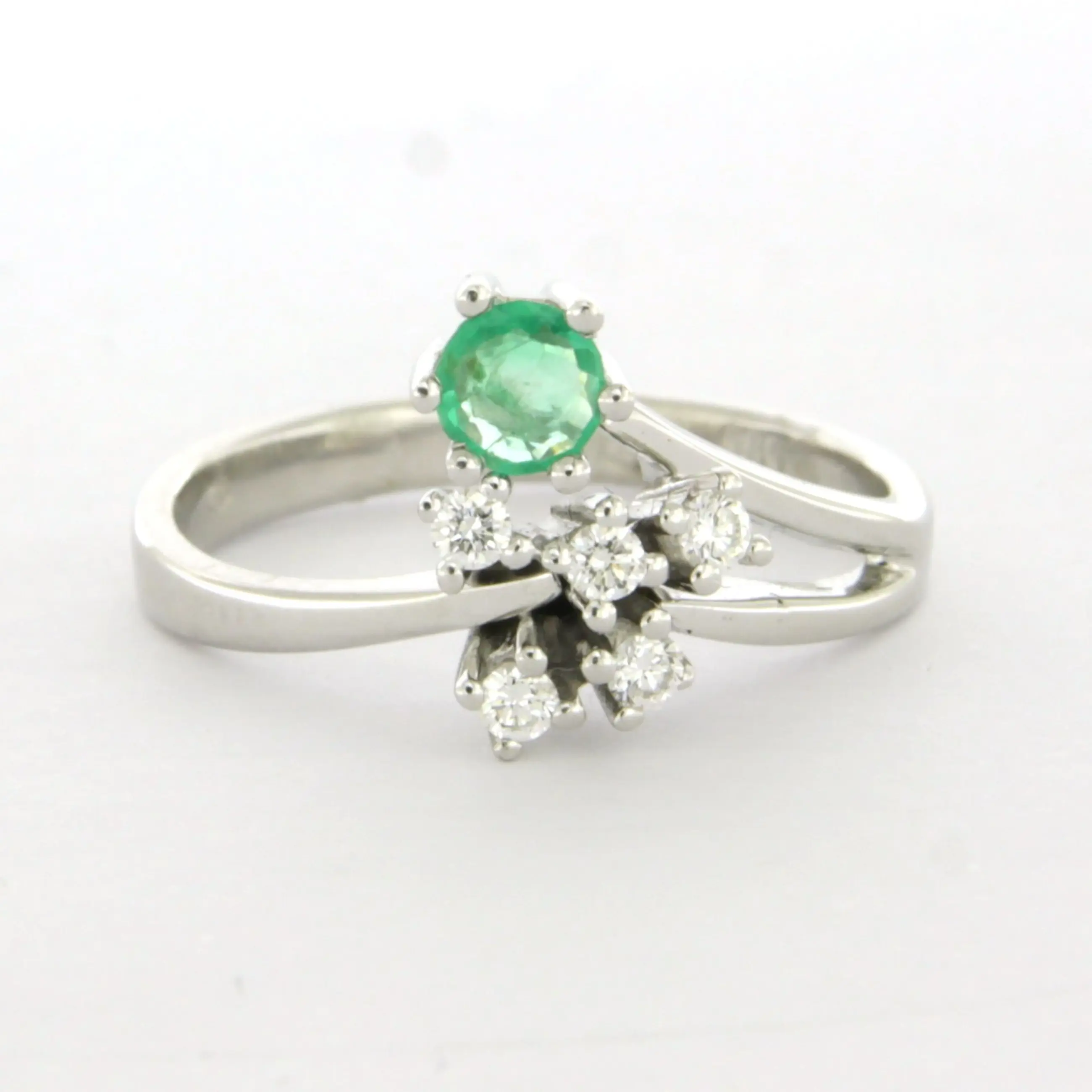 14k wit gouden ring bezet met smaragd tot. 0.20ct en briljant geslepen diamant tot. 0.10ct - F/G - VS/SI - ringmaat 17.25(54)