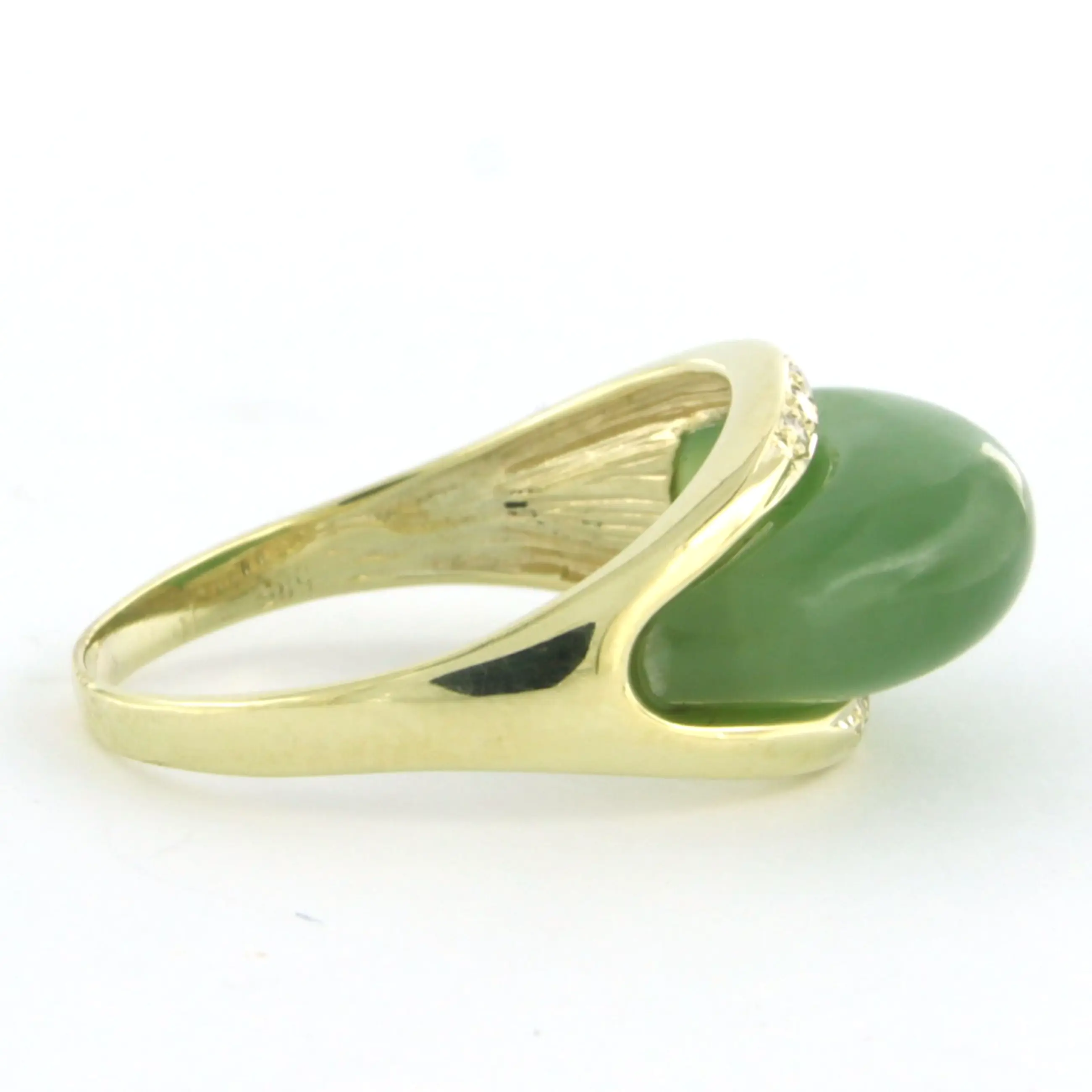 14k geel gouden ring mos agaath single cut geslepen diamant 0.15ct - F/G - VS/SI ringmaat 18.5(58)