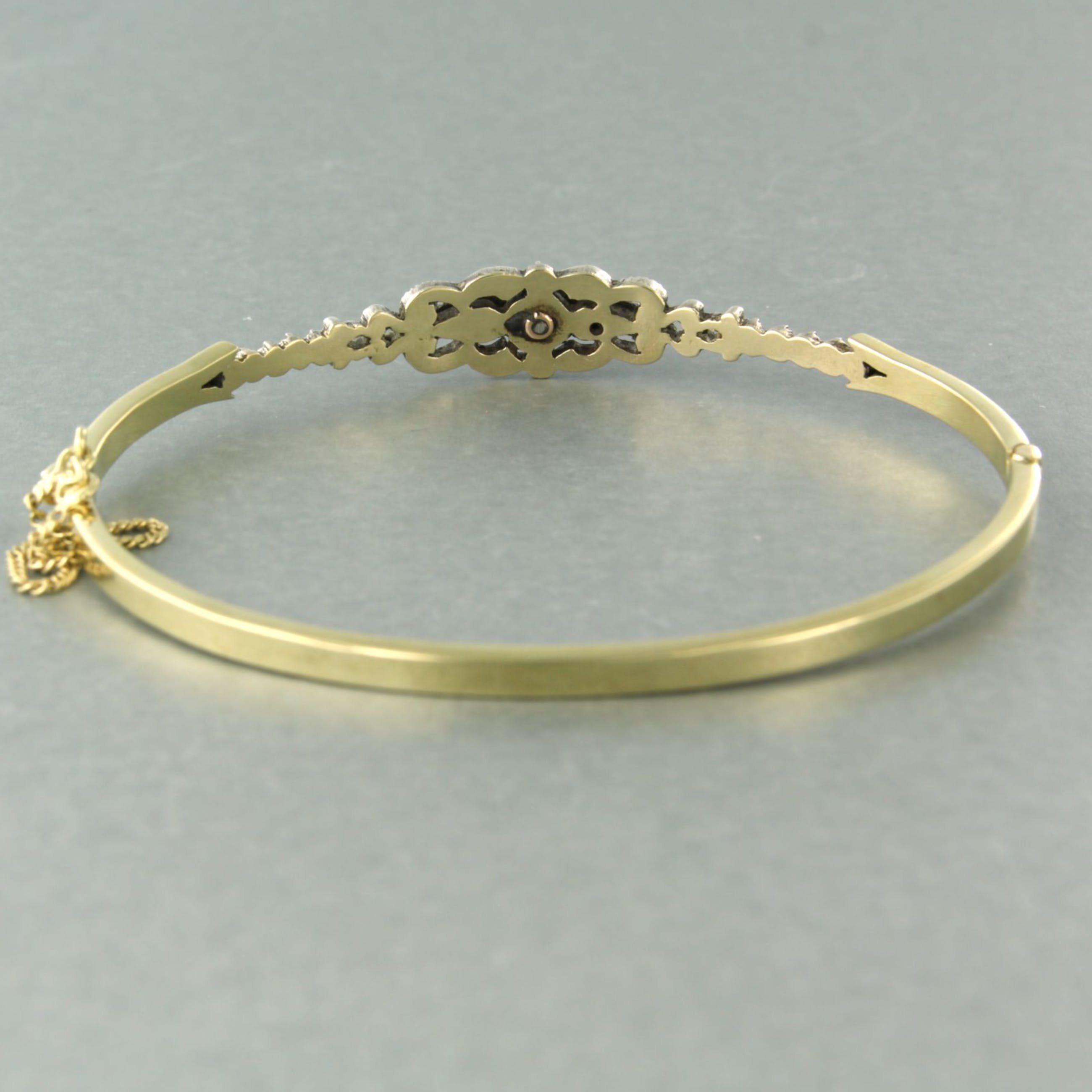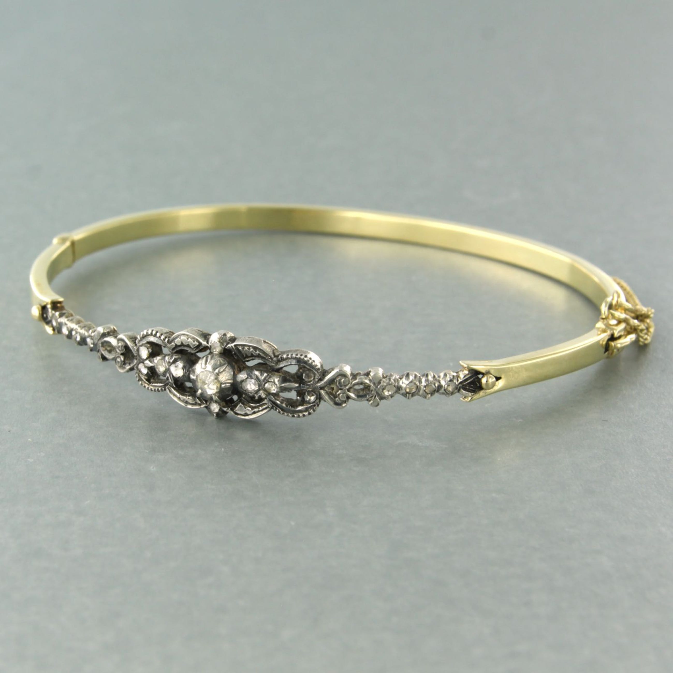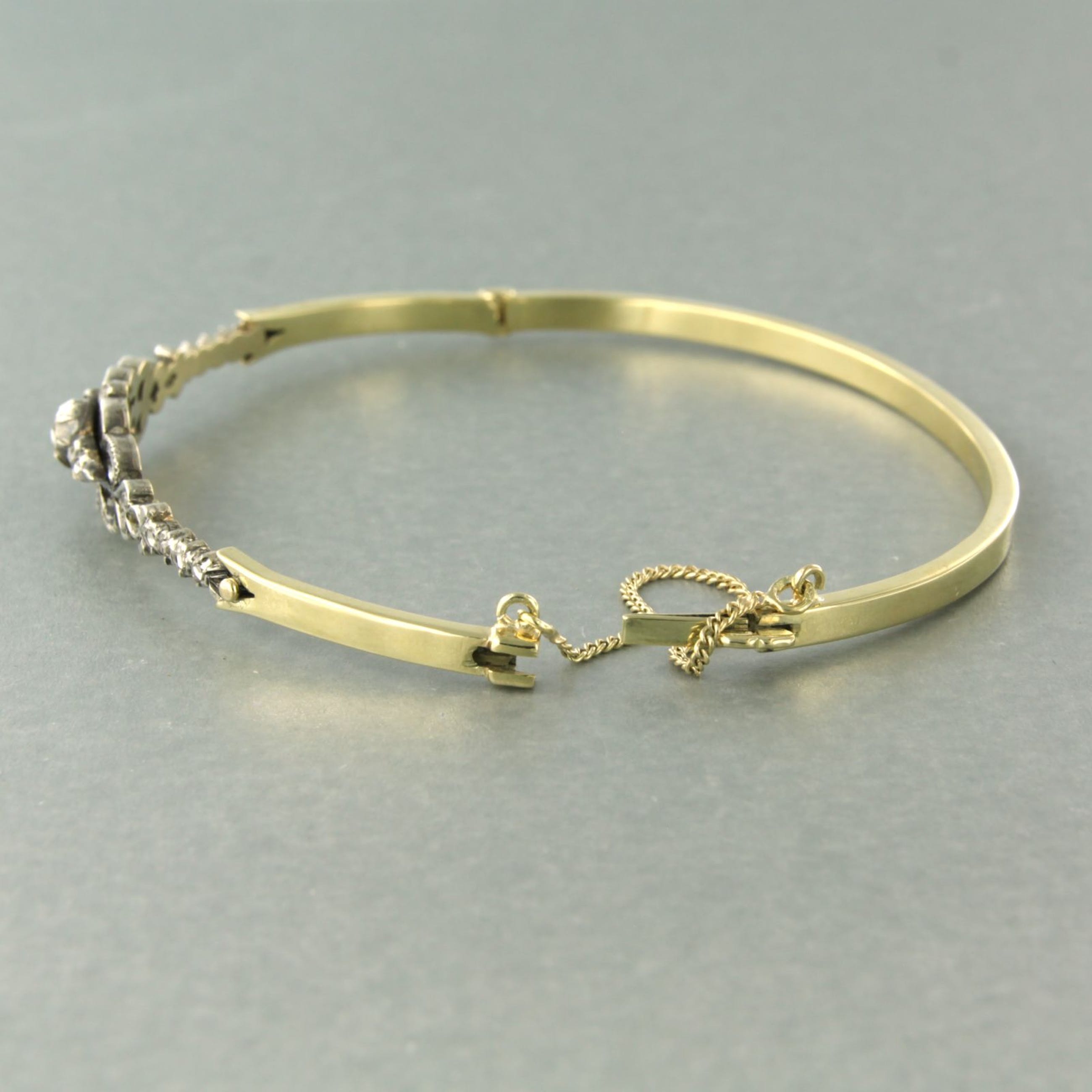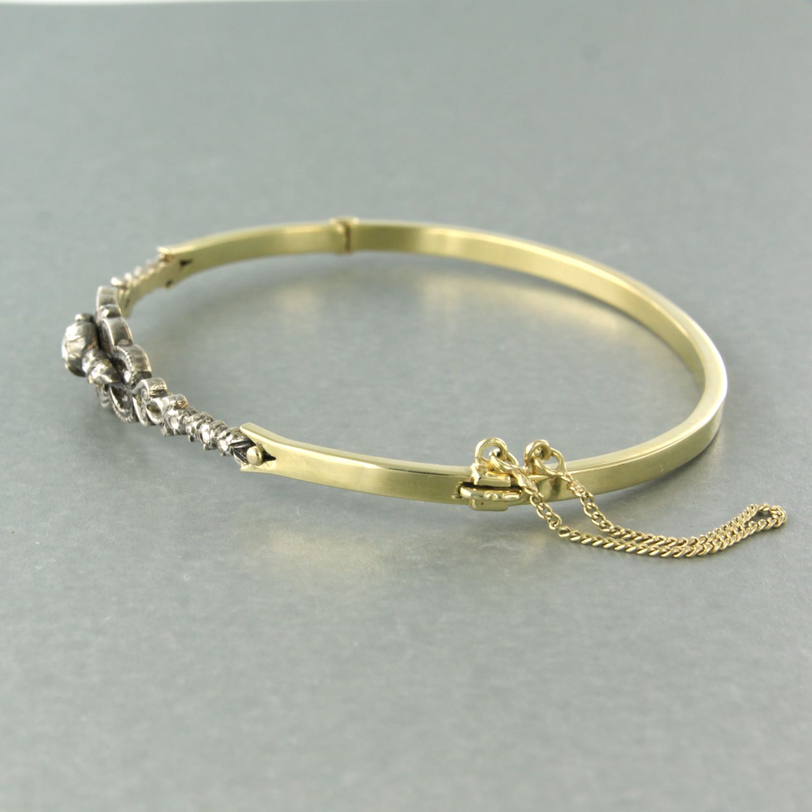 14k geel gouden scharnierarmband met een zilveren kop bezet met roos diamanten tot. 0,10ct - G/H - SI - afm 6,1 cm x 5,2 cm breed