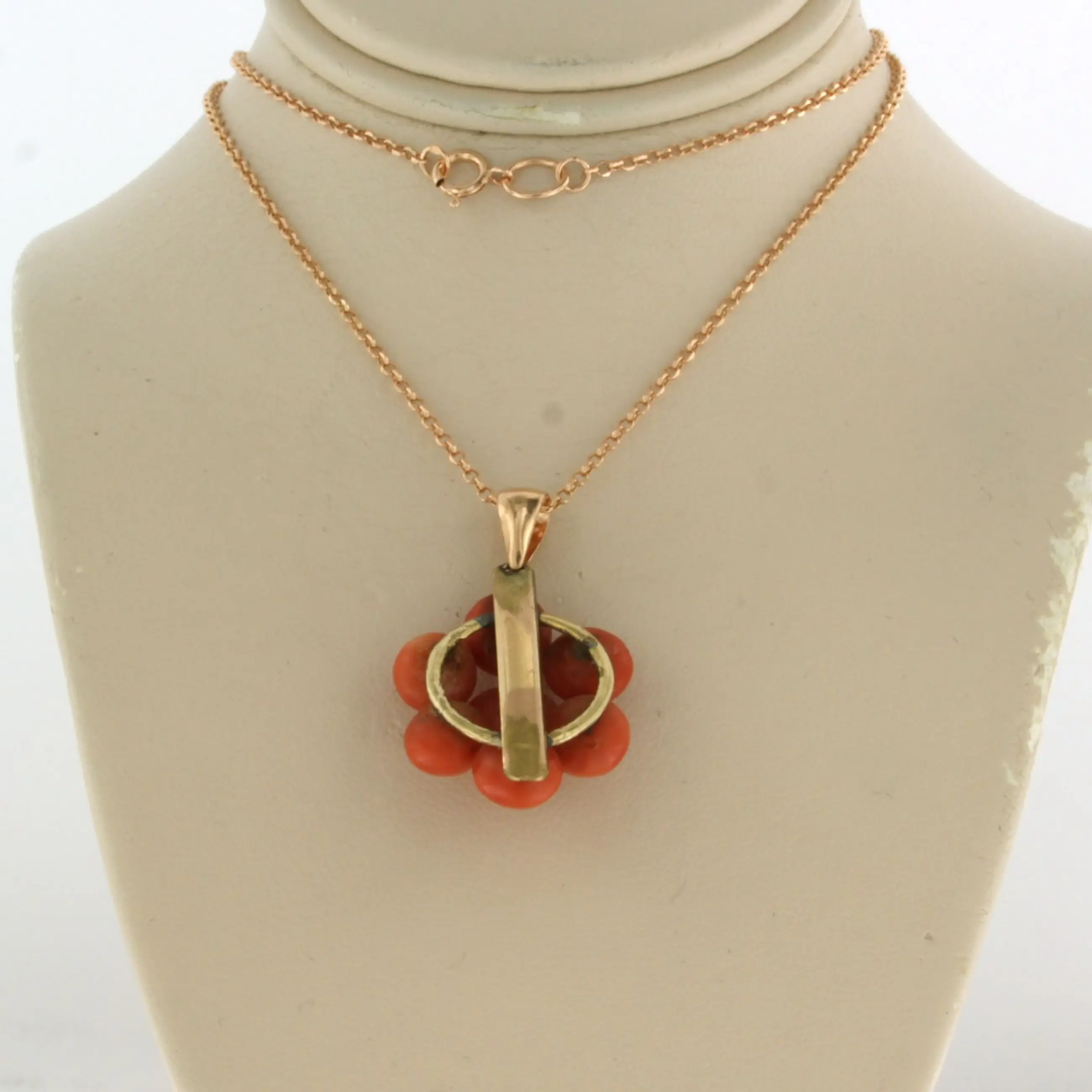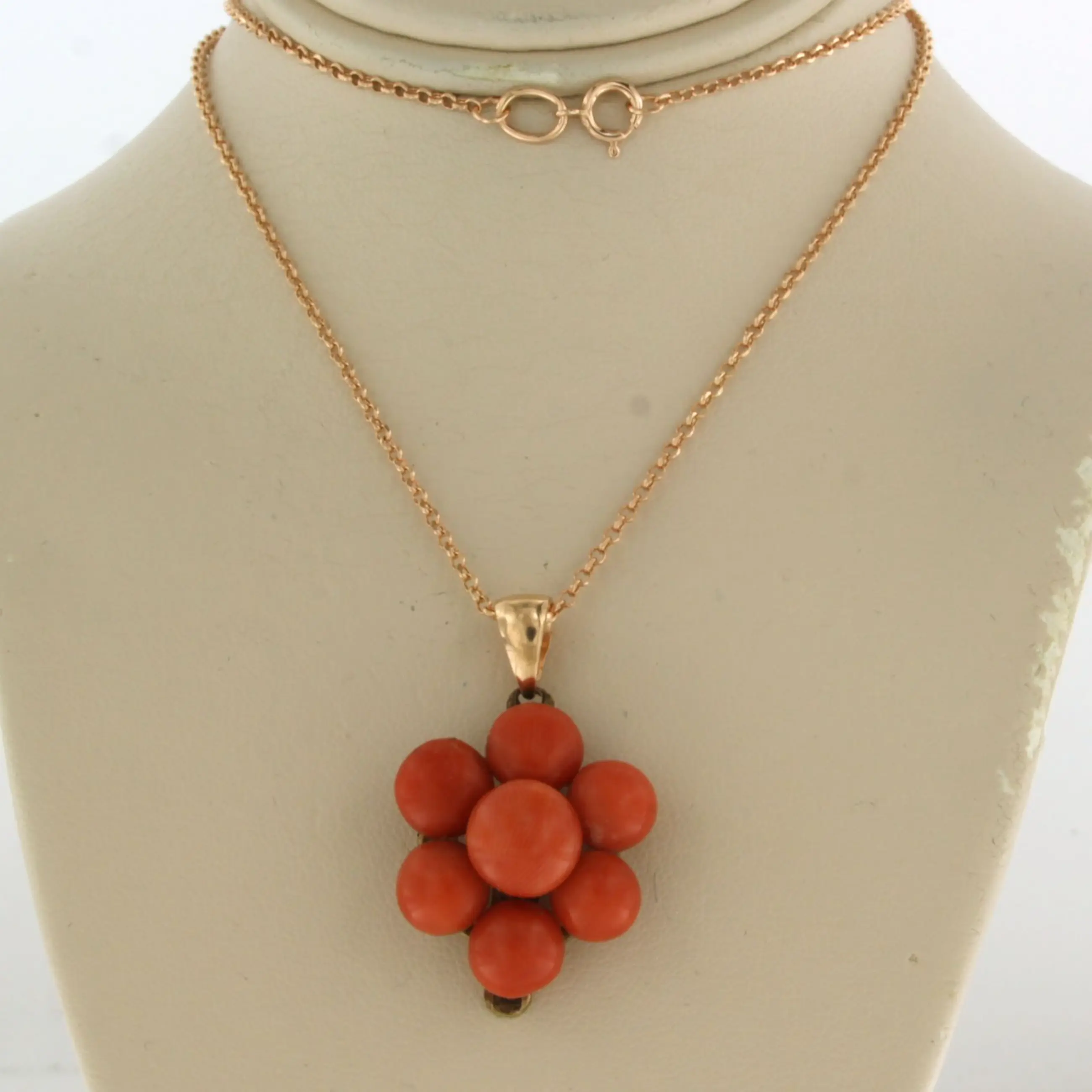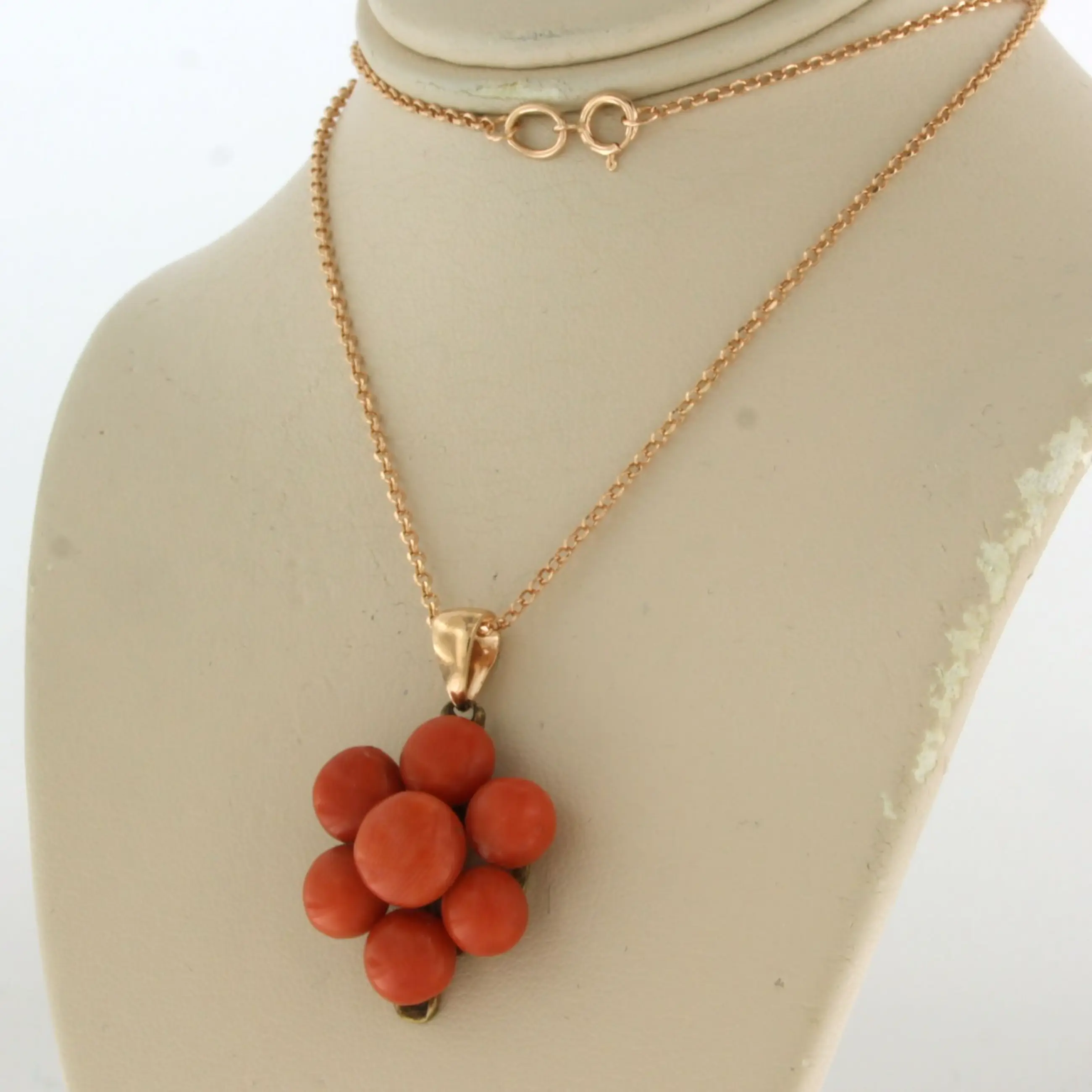14k rosé gouden collier met hanger bezet met koraal - 45 cm
