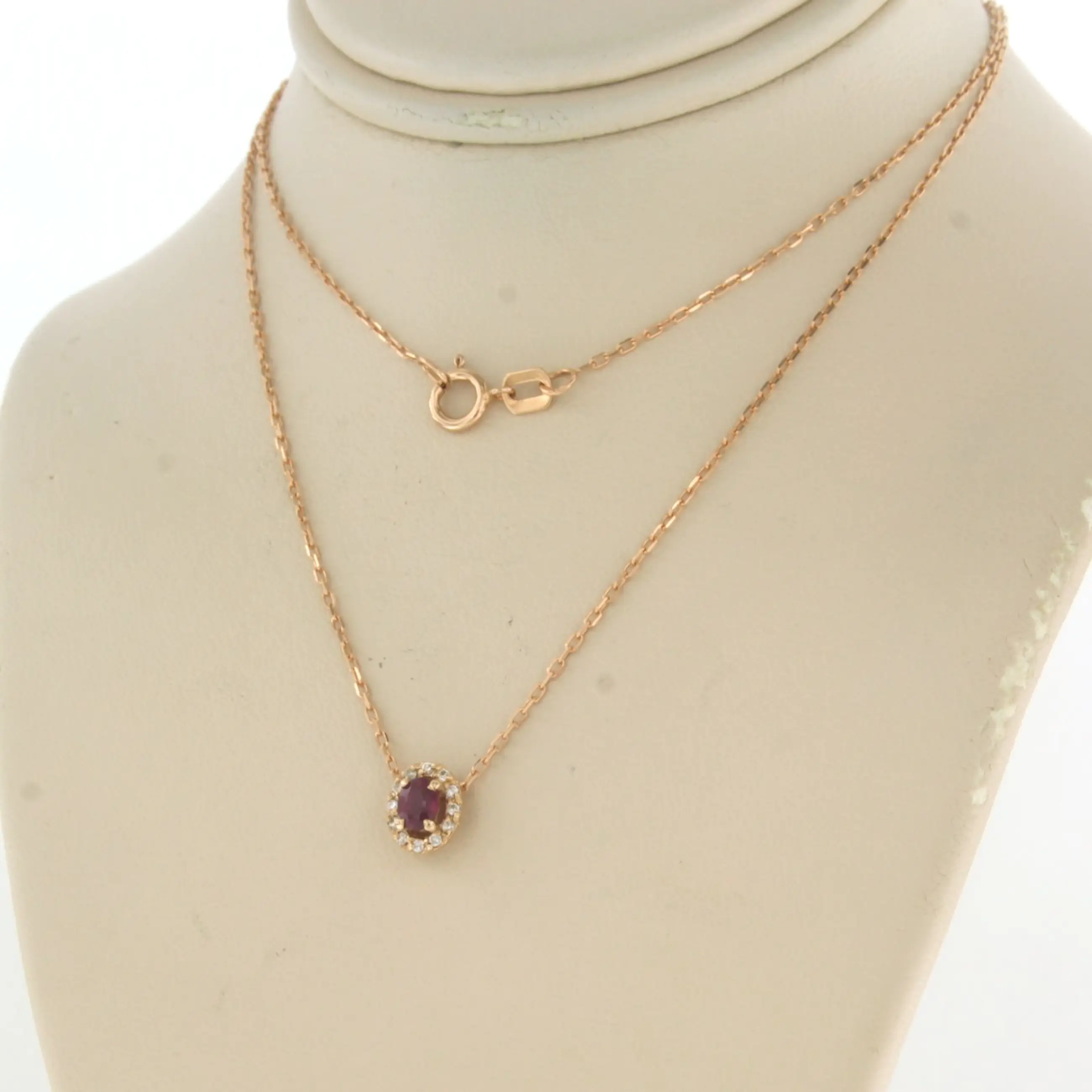 14k rosé gouden collier met hanger bezet met robijn 0.30 ct en diamant 0.05 ct G/H VS/SI - 45 cm