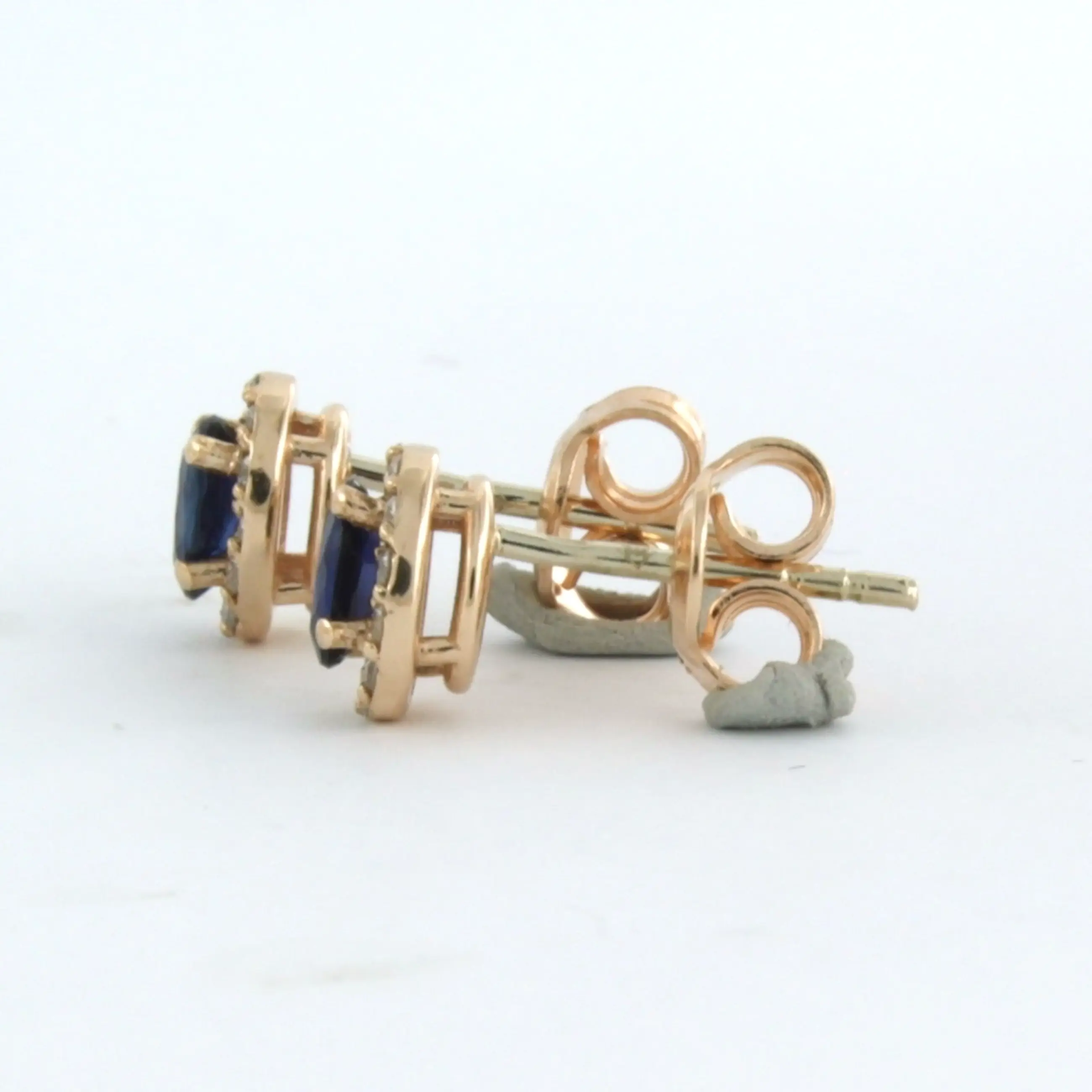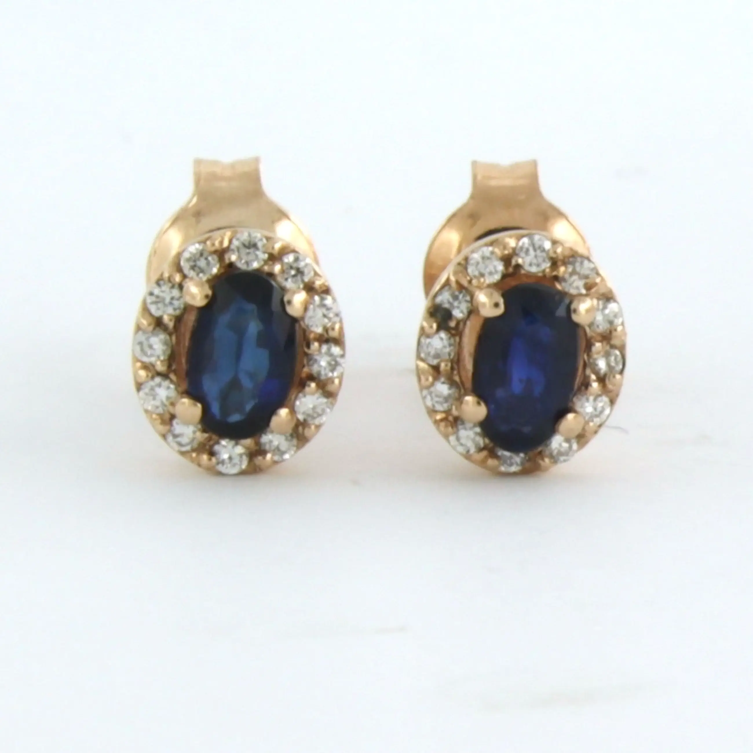14k rose gouden entourage oorknoppen bezet met robijn en diamant 0.13 ct - Verkocht