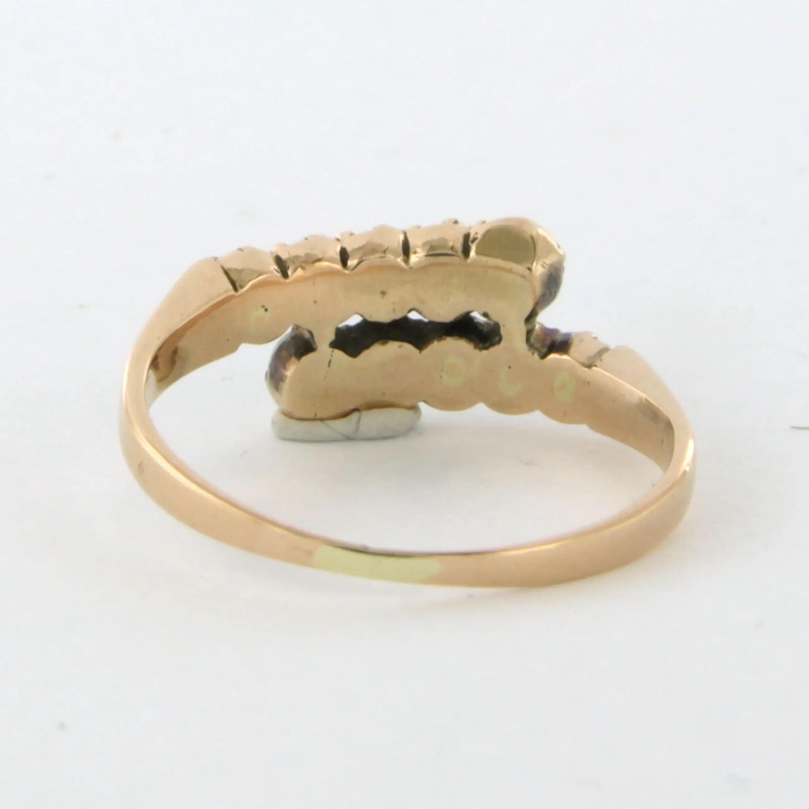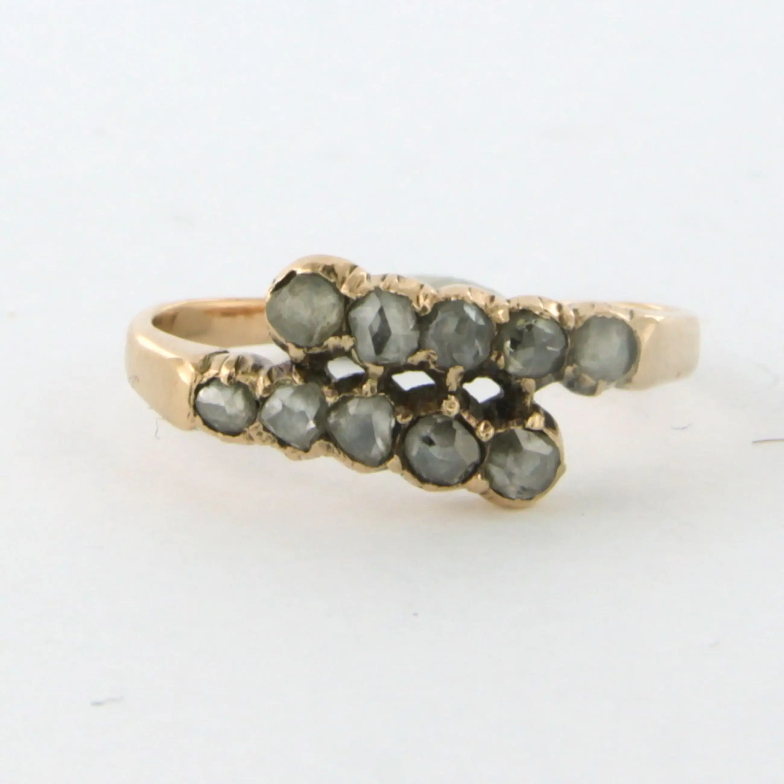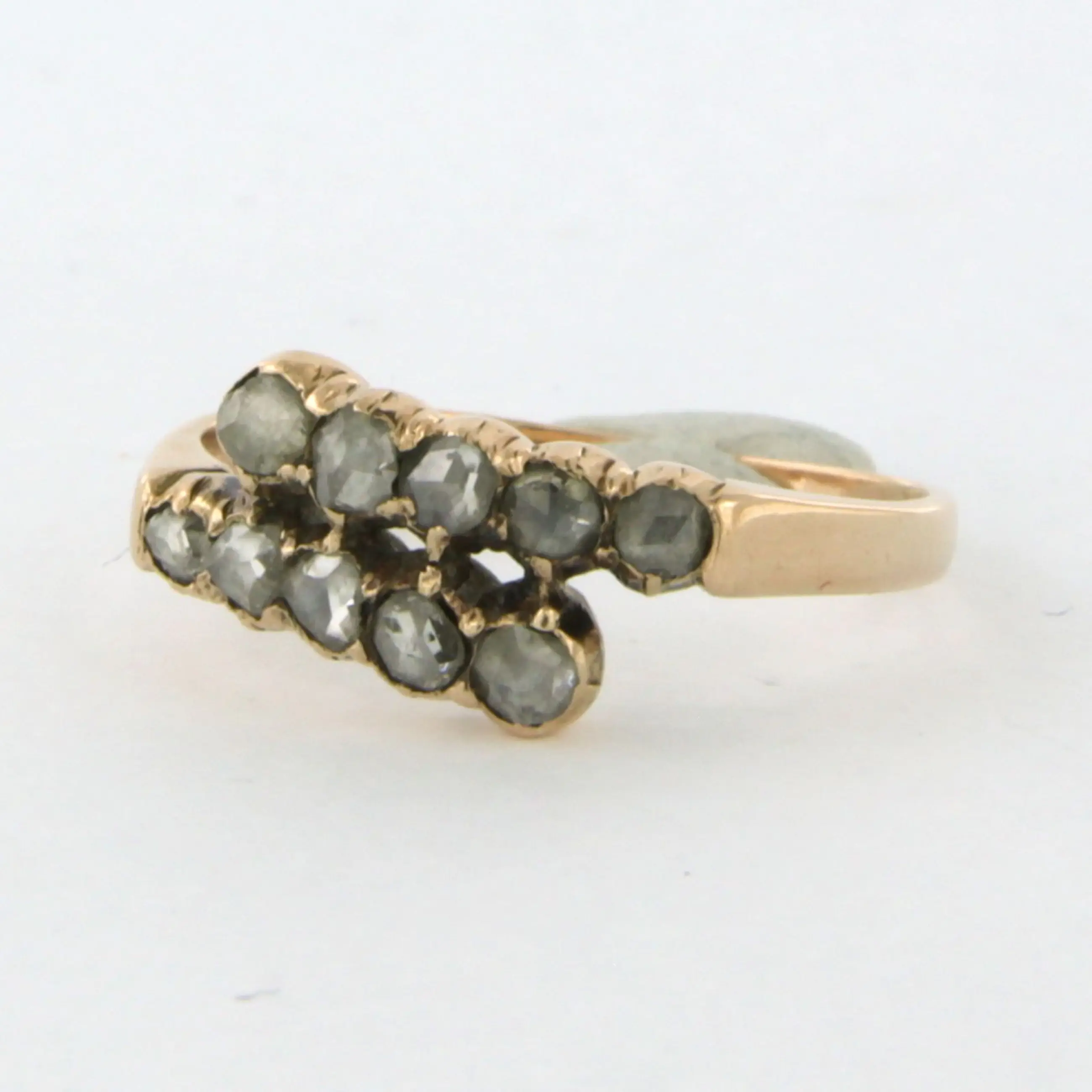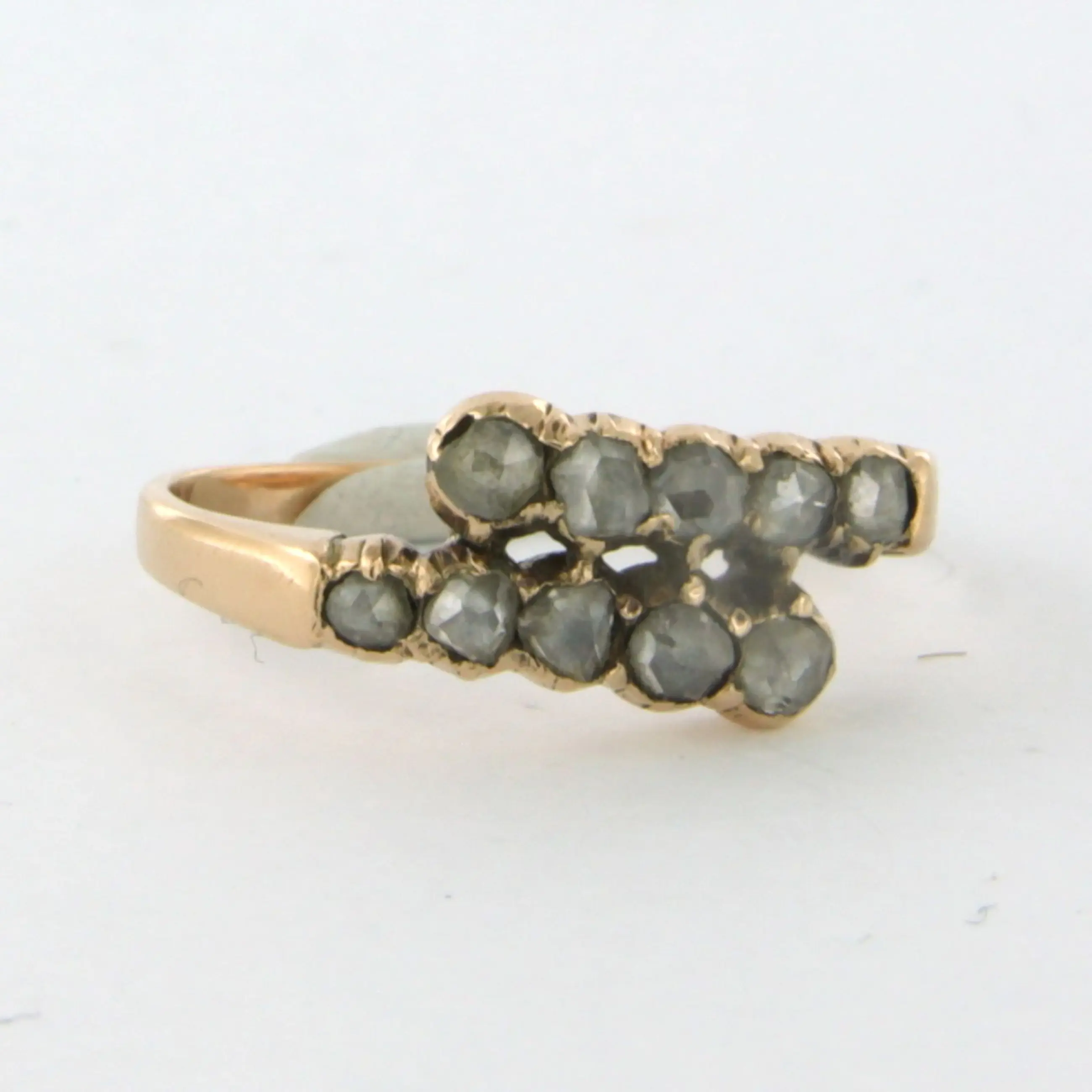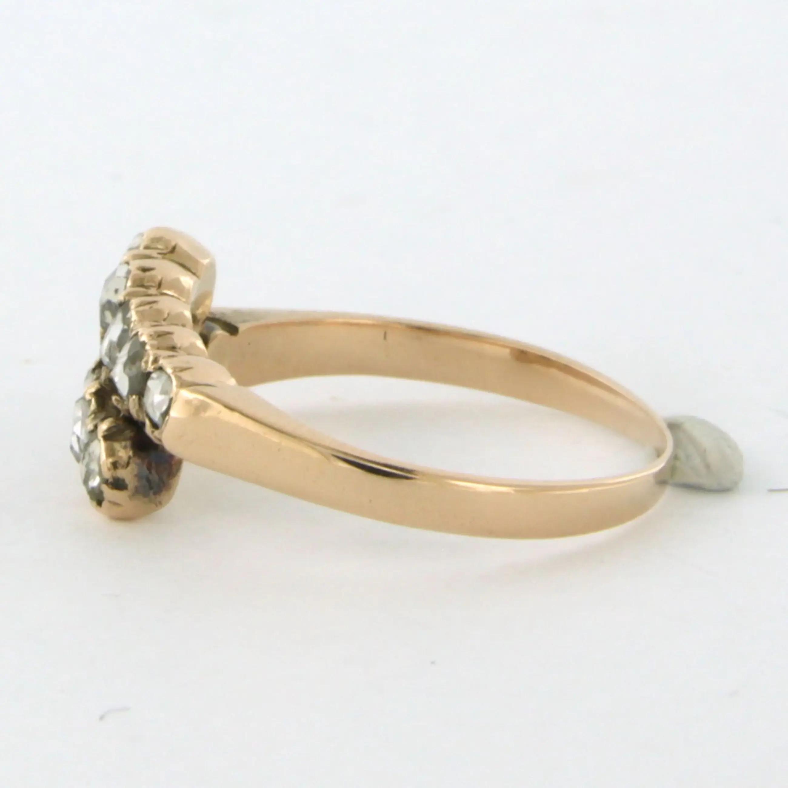 14k rosé gouden ring bezet met roos geslepen diamant tot. 0.25ct – N/O - SI - ringmaat 17 (53)