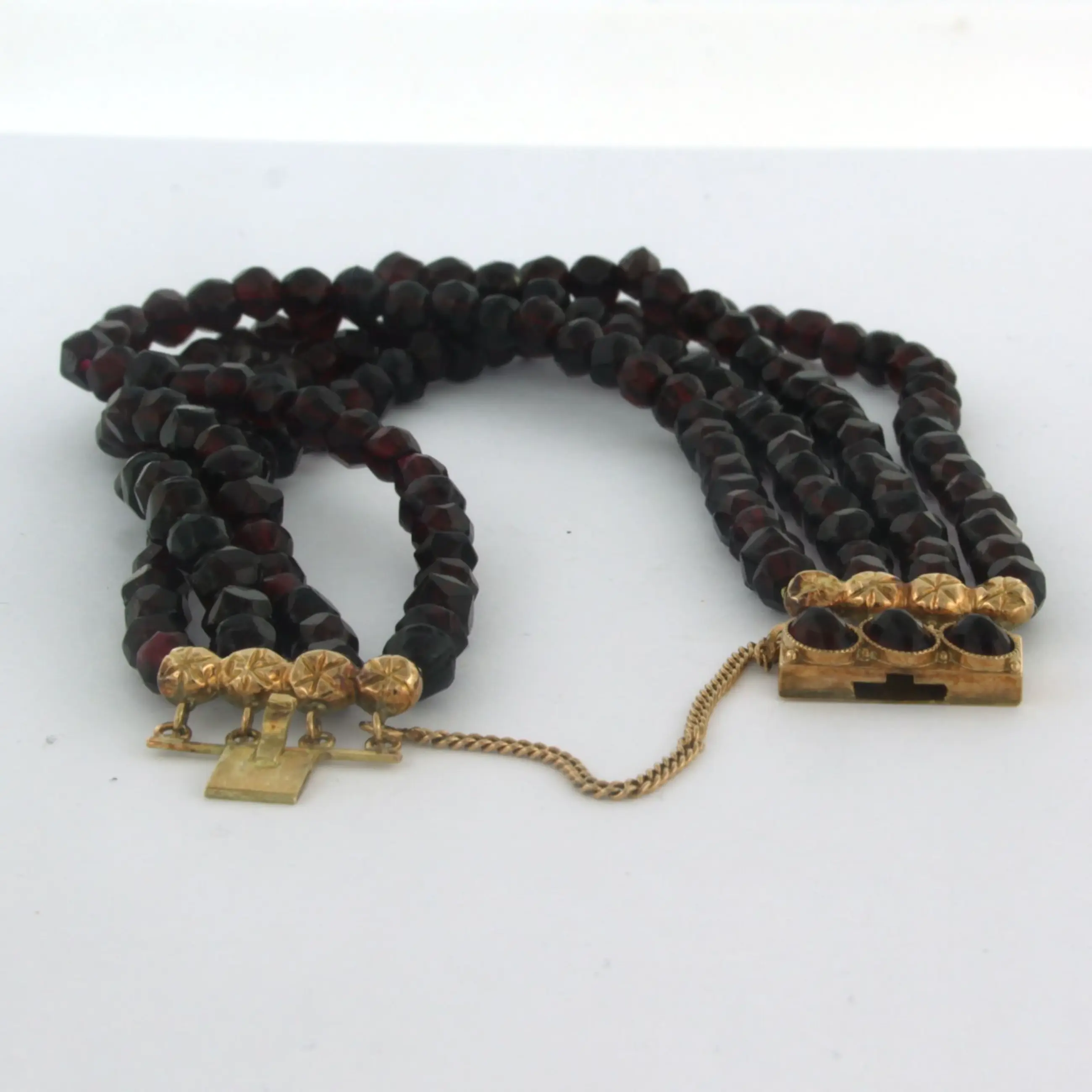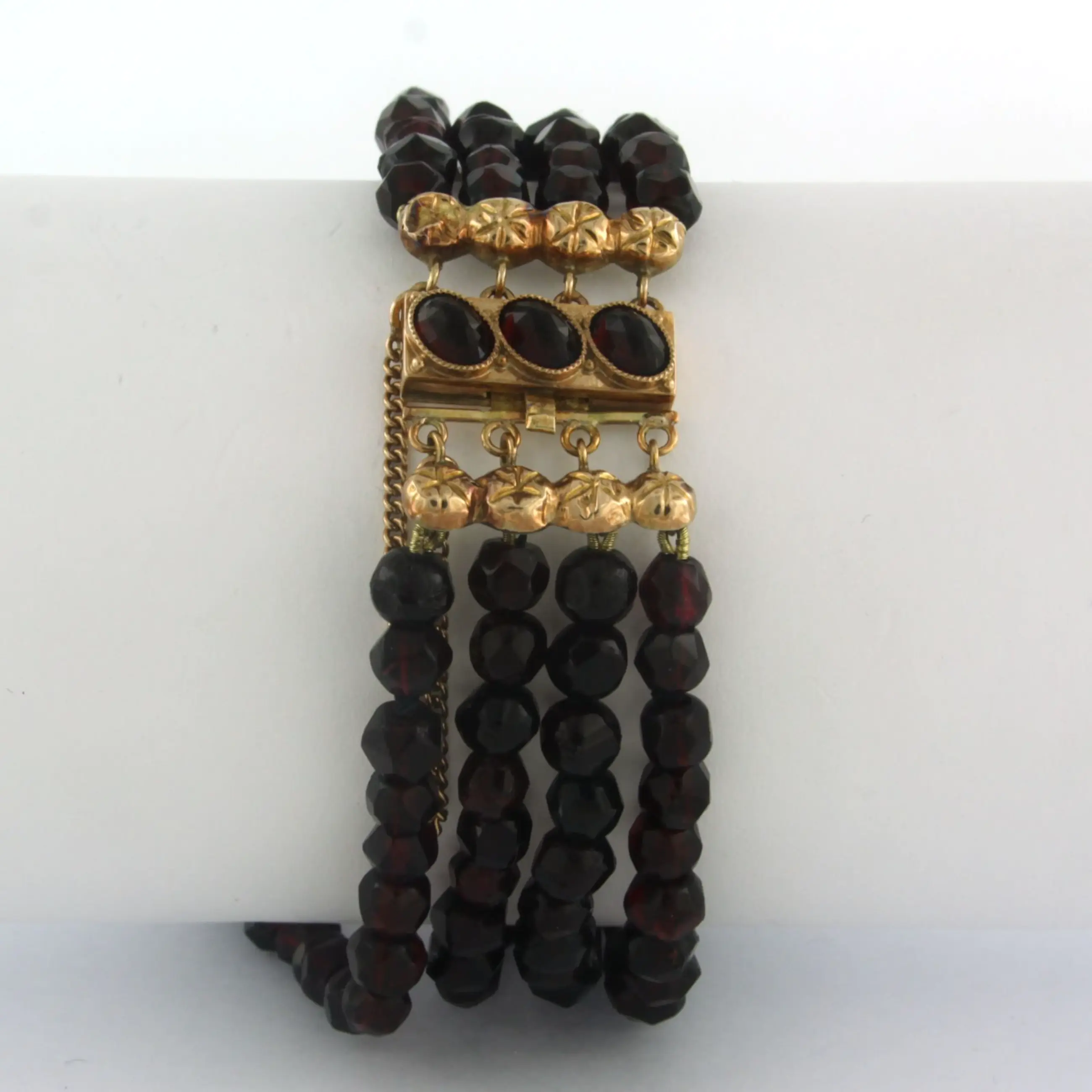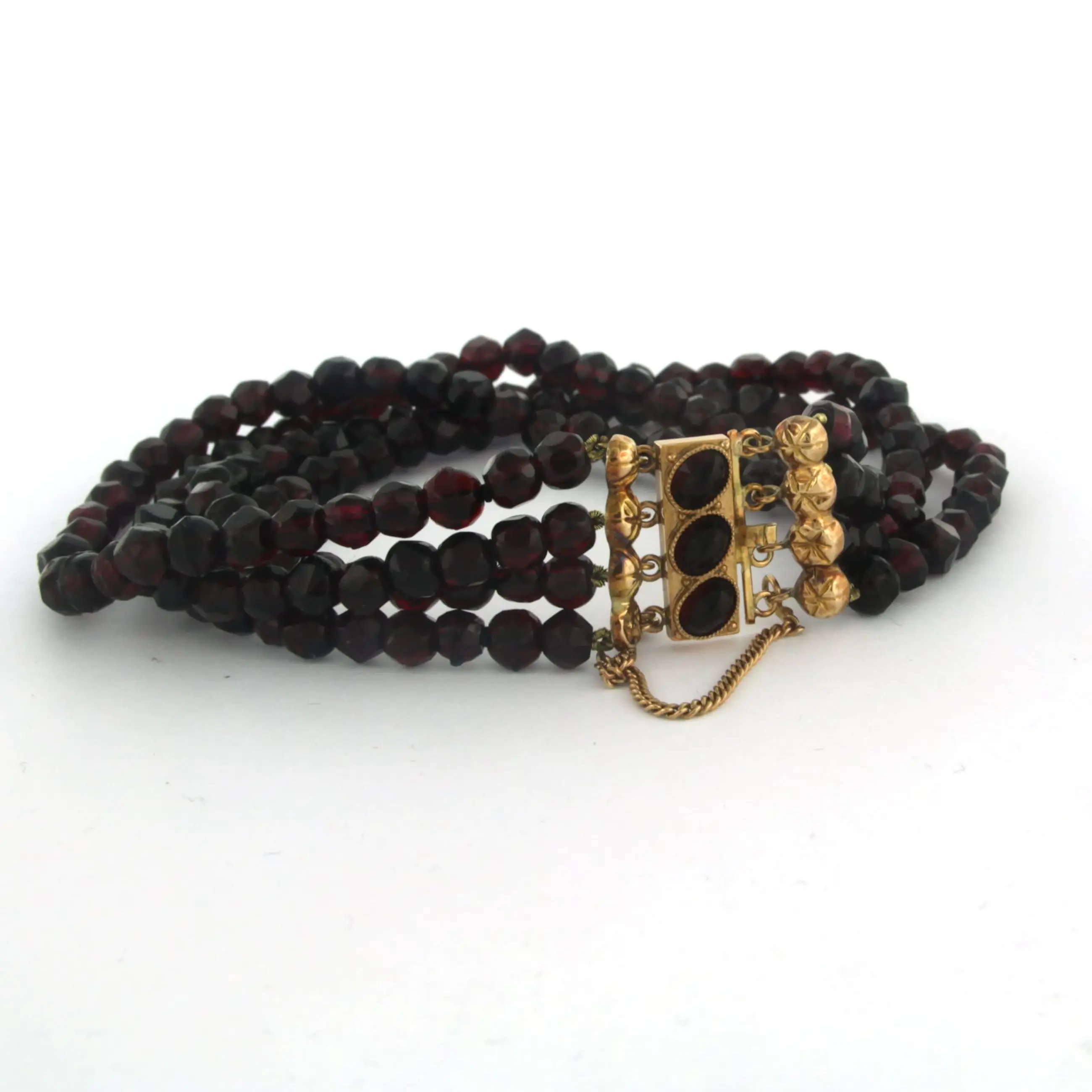 De armband is is ongeveer 18 cm lang, breedte van de vier rijen granaat is ongeveer 1.9 cm.