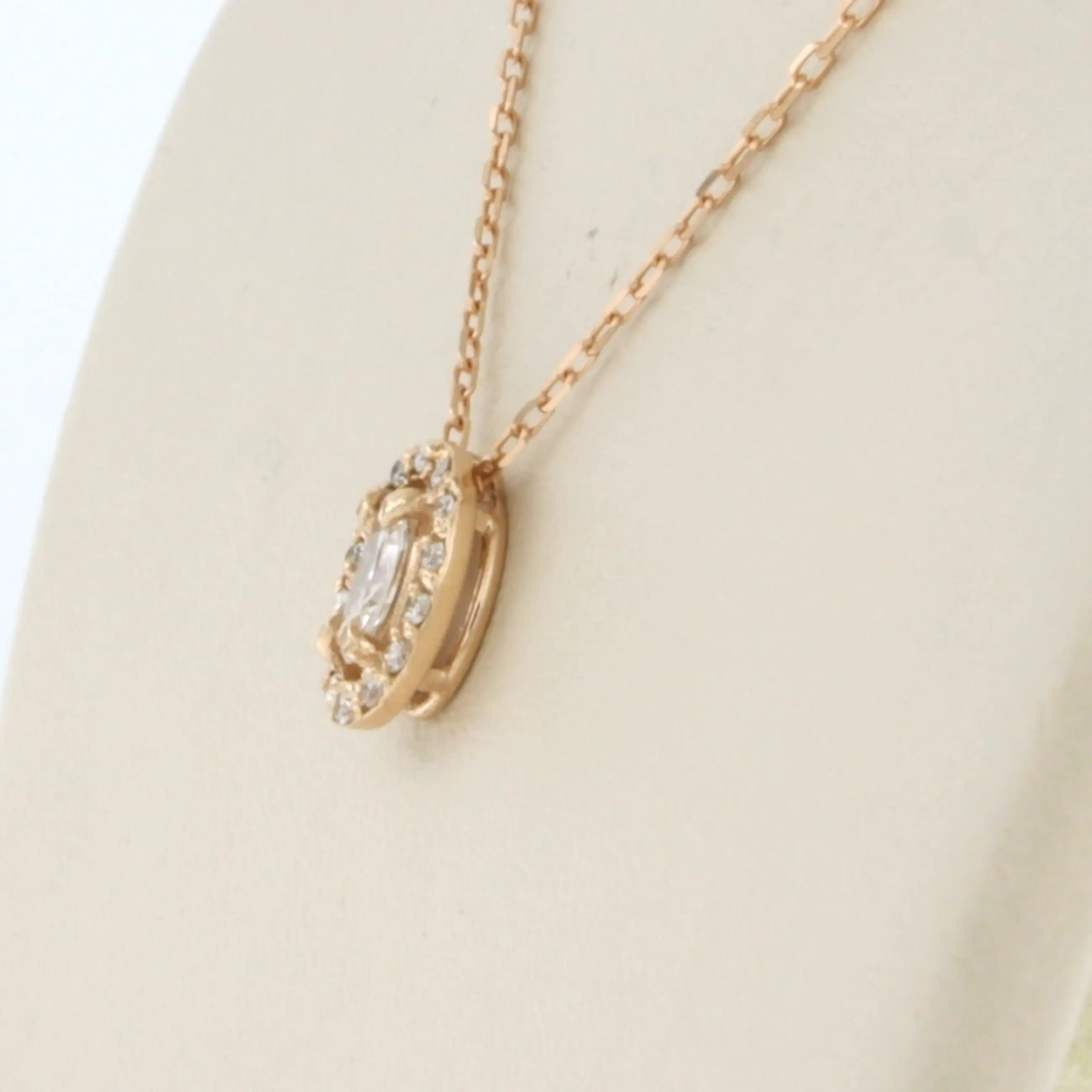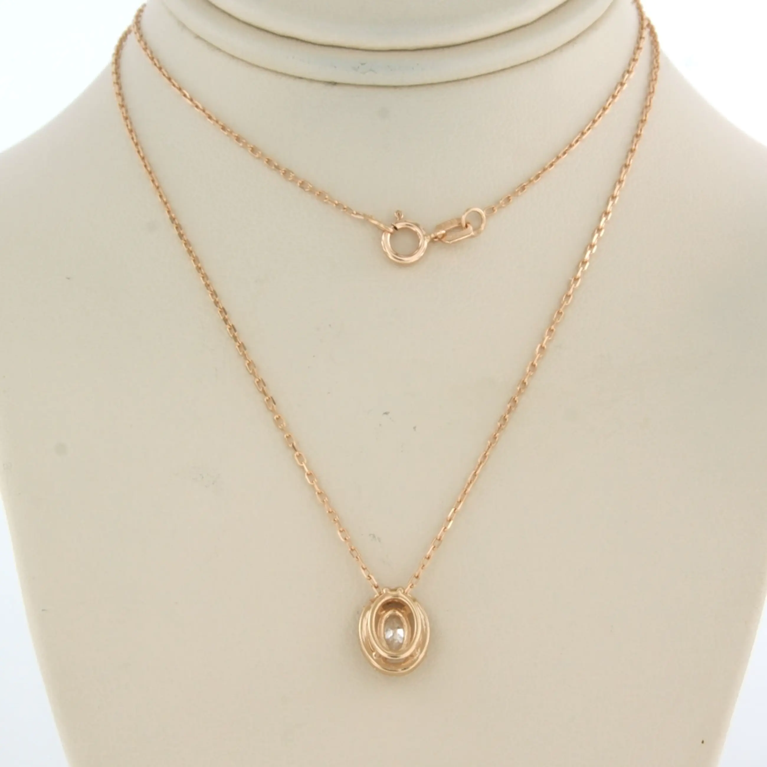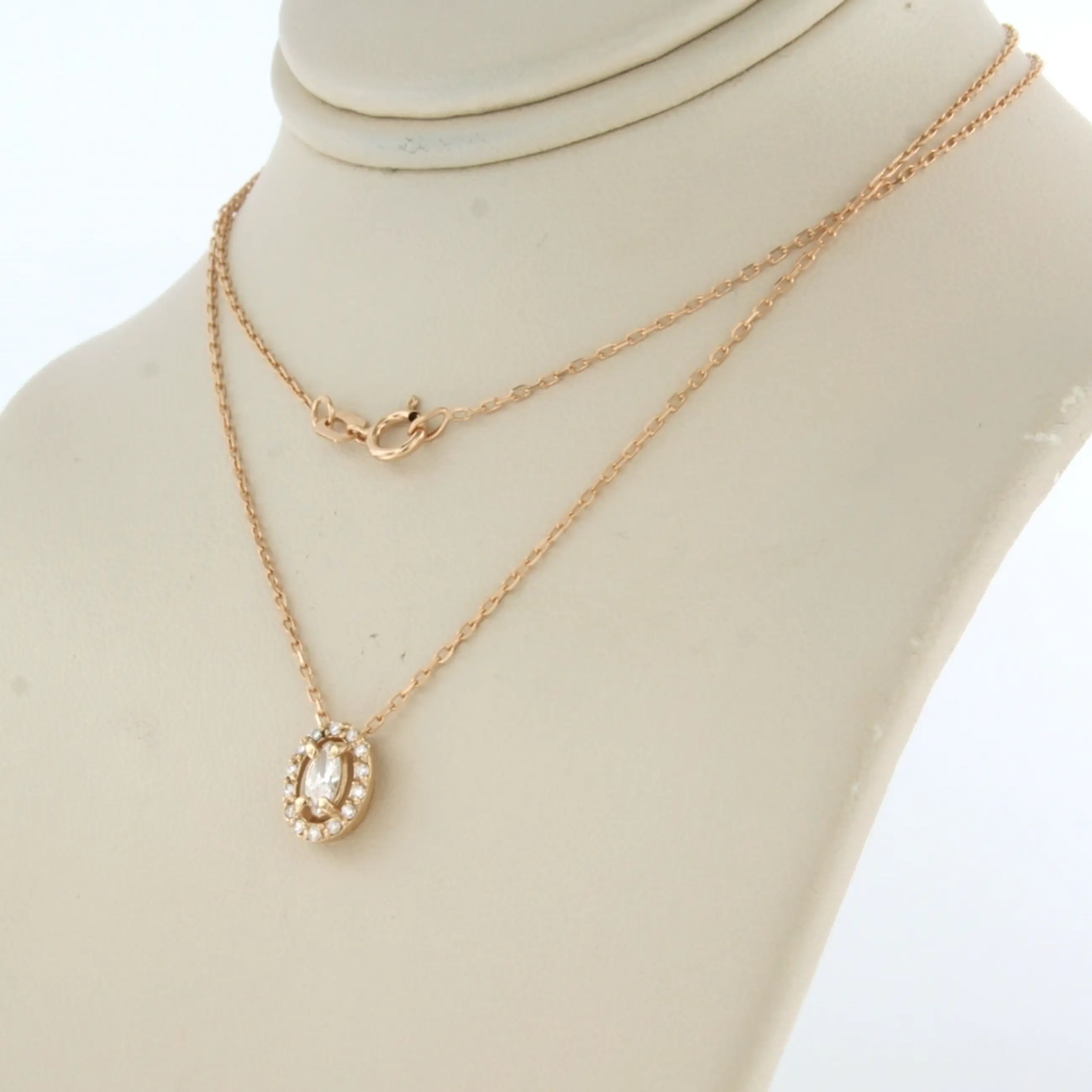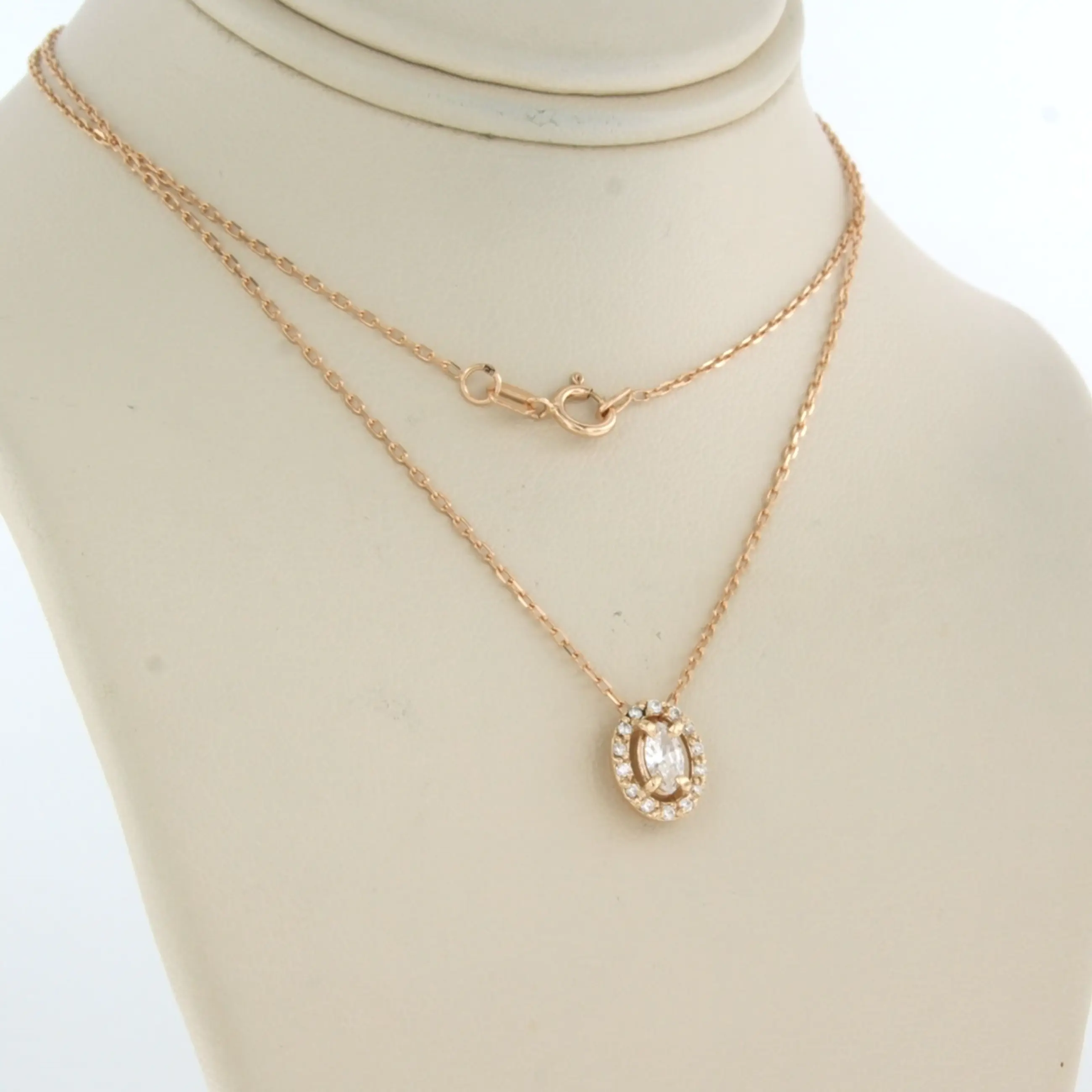 14k rosegouden collier met hanger bezet met centaal een markies en aan entourage briljant geslepen diamant tot. 0,22ct - G-H - VS/SI - 45 cm