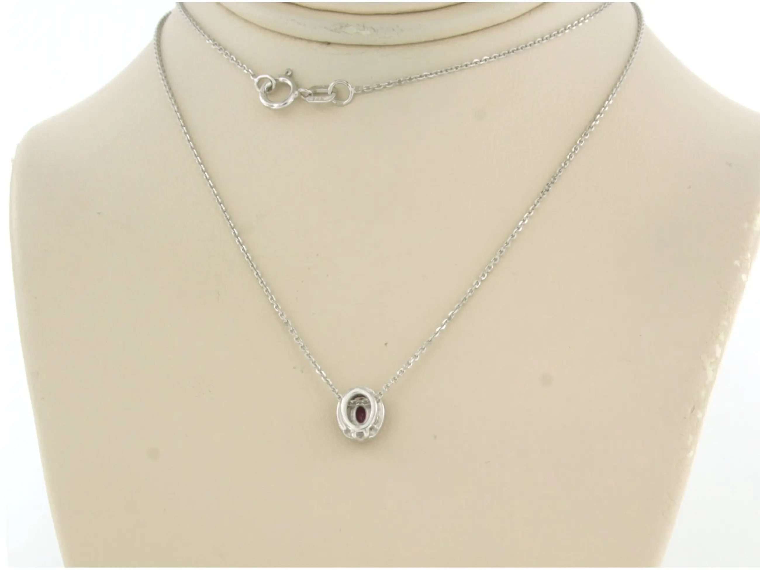 14k wit gouden collier met hanger bezet met robijn 0.16 ct en briljant geslepen diamant tot. 0.16 ct F/G - VS/SI - 45 cm lang