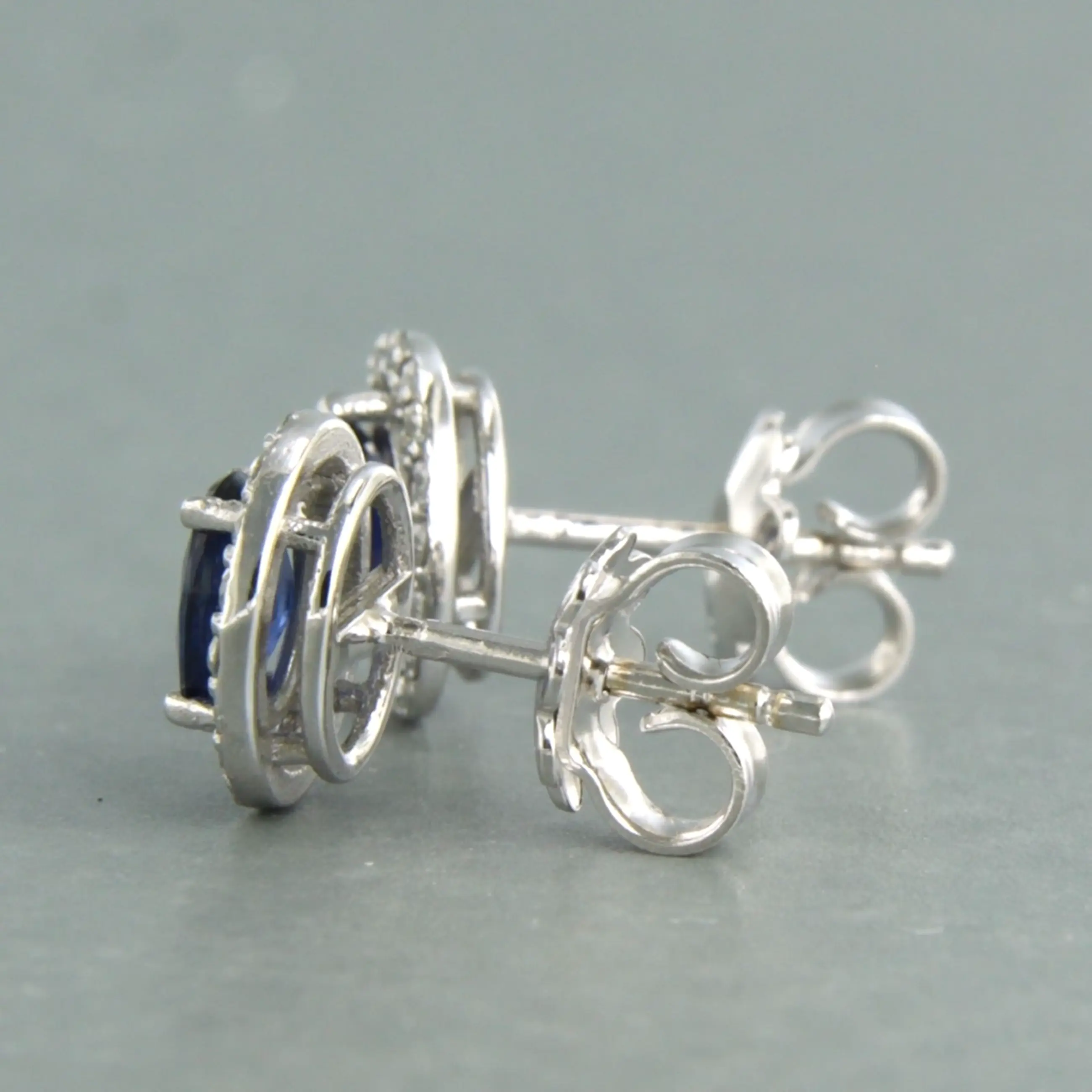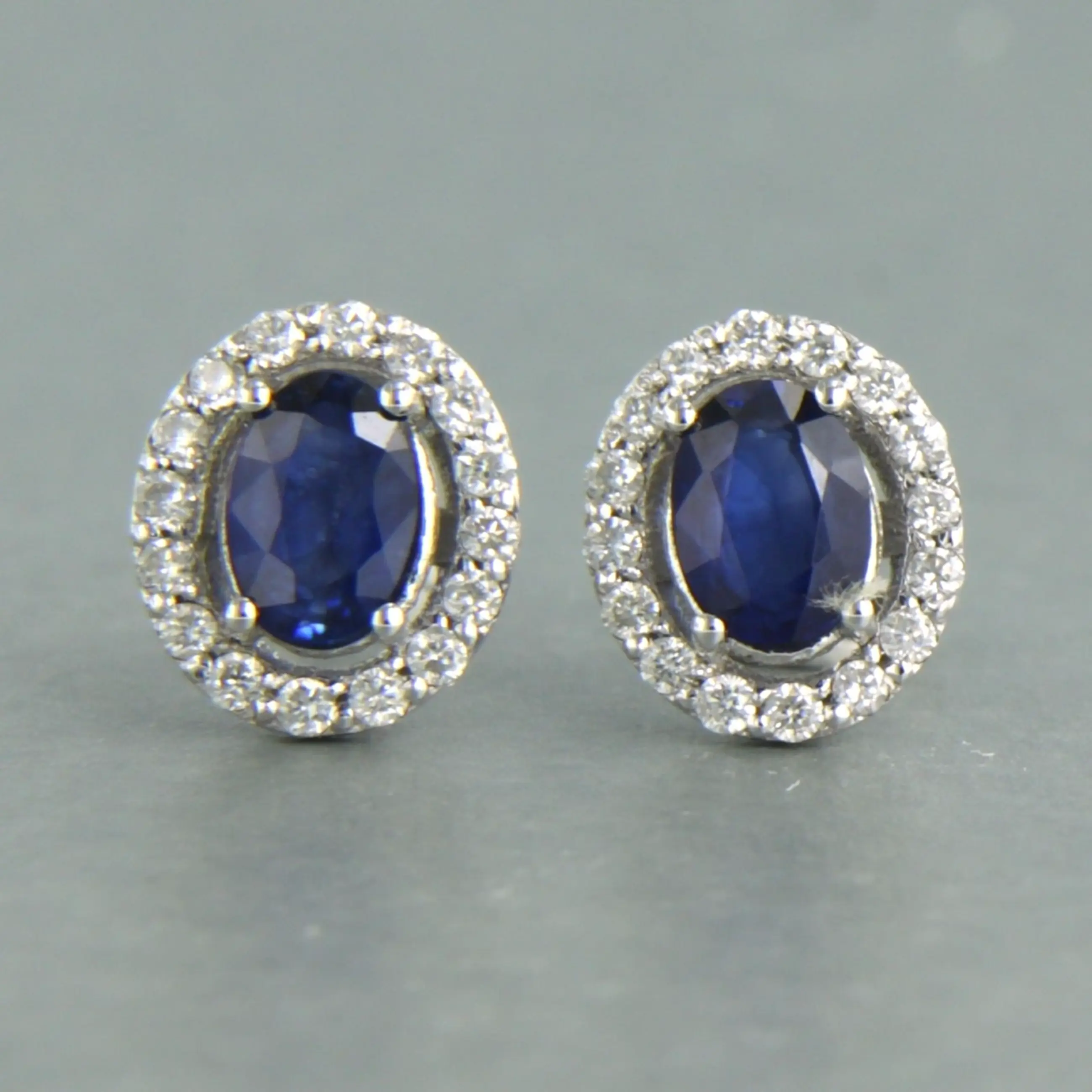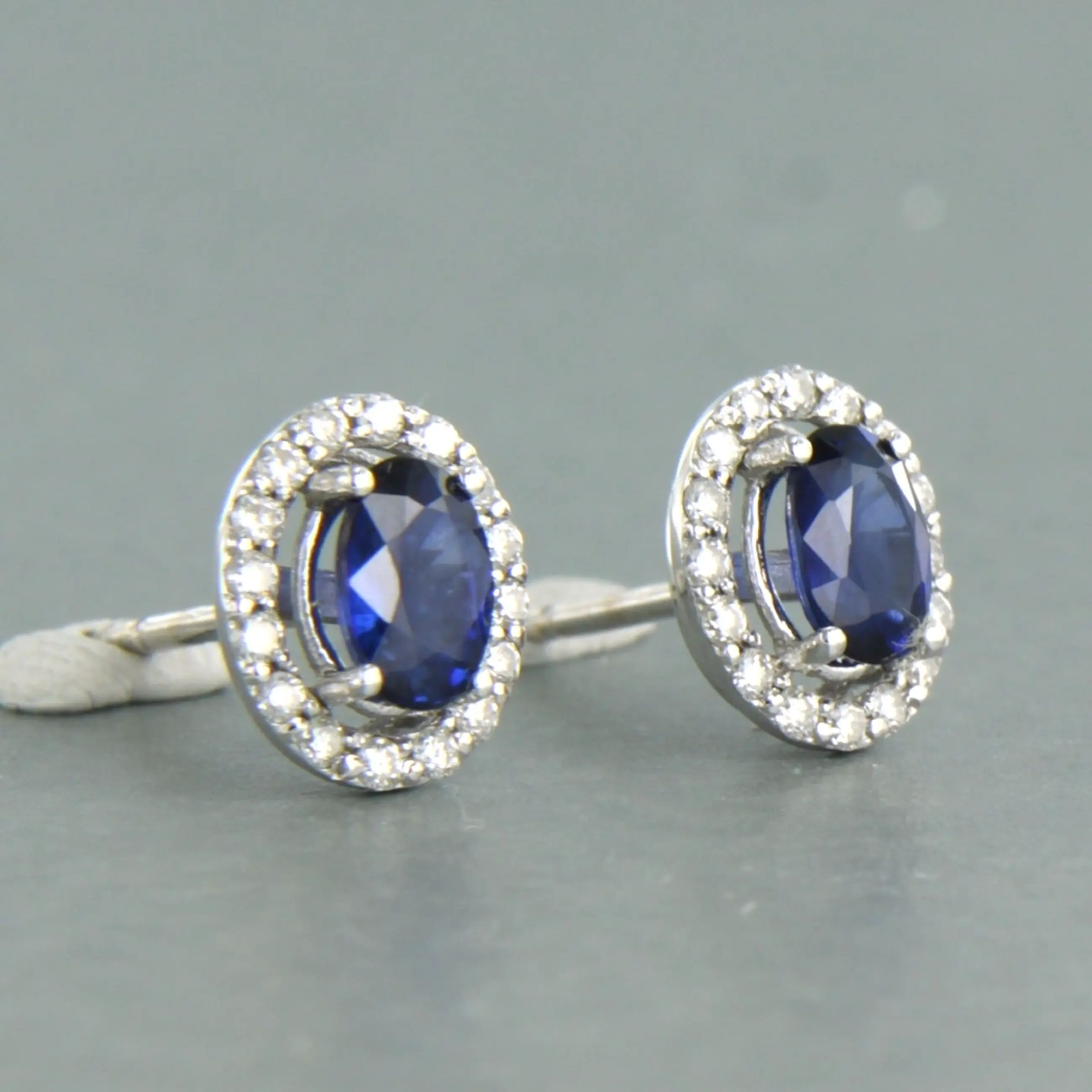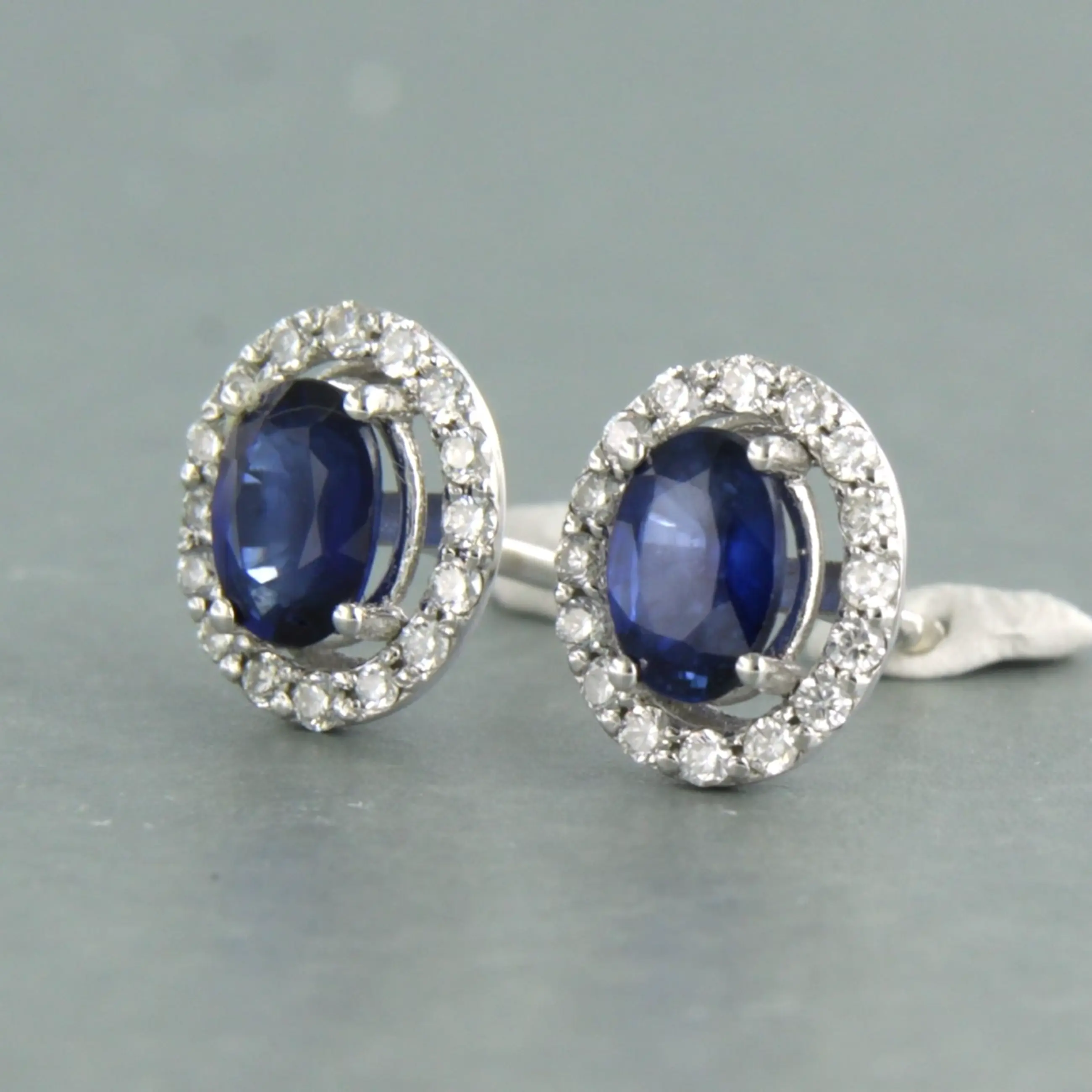14k wit gouden entourage oorknoppen bezet met saffier tot. 1,04ct en aan entourage briljant geslepen diamant tot. 0,24ct - F/G - VS/SI