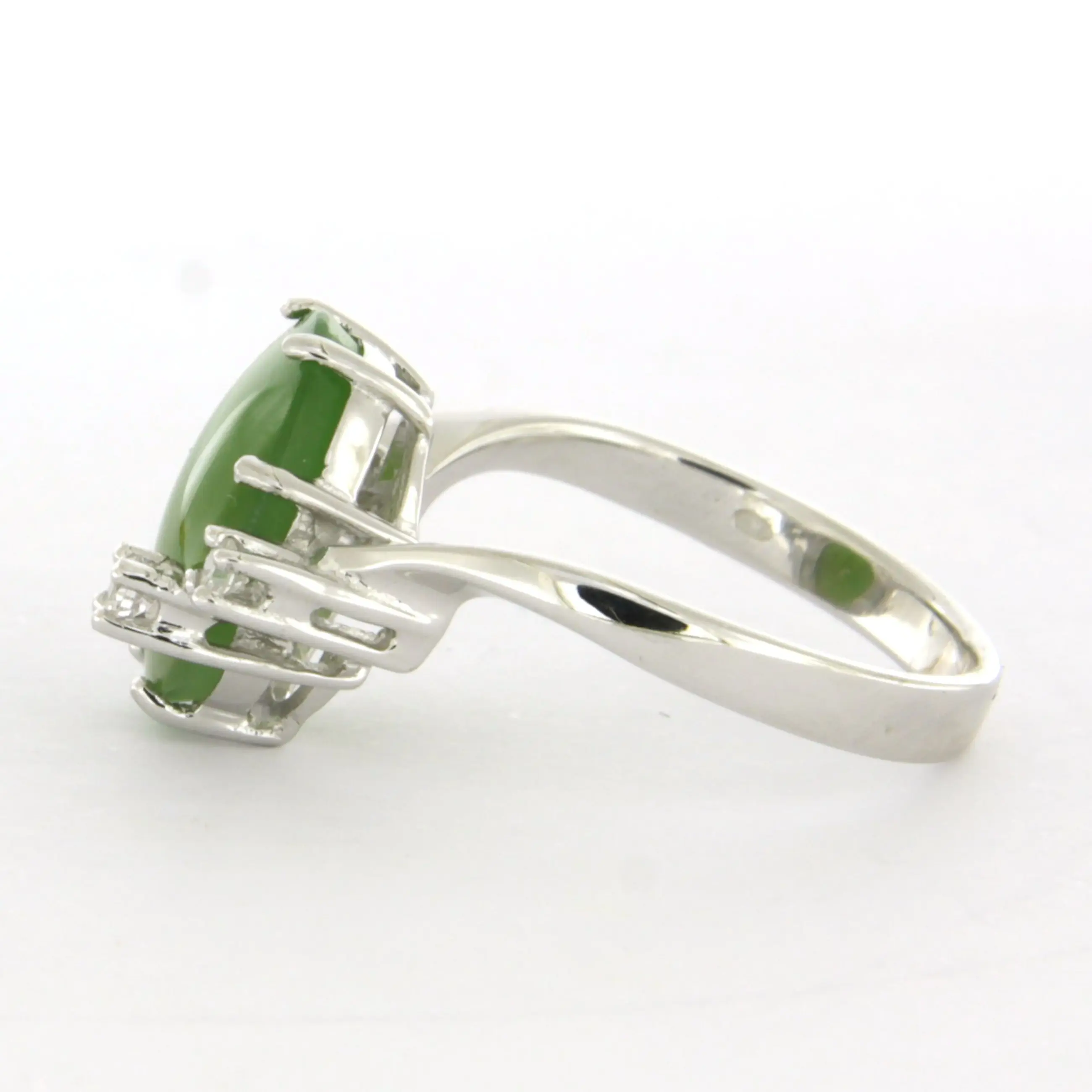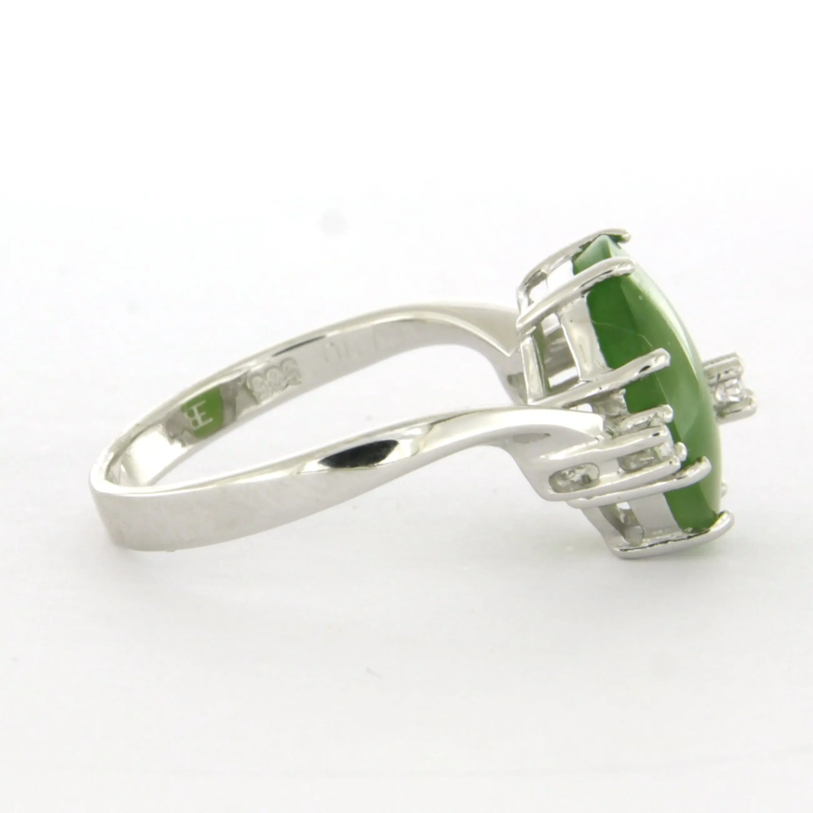 14k wit gouden ring bezet met jade en briljant geslepen diamant tot. 0.10ct
