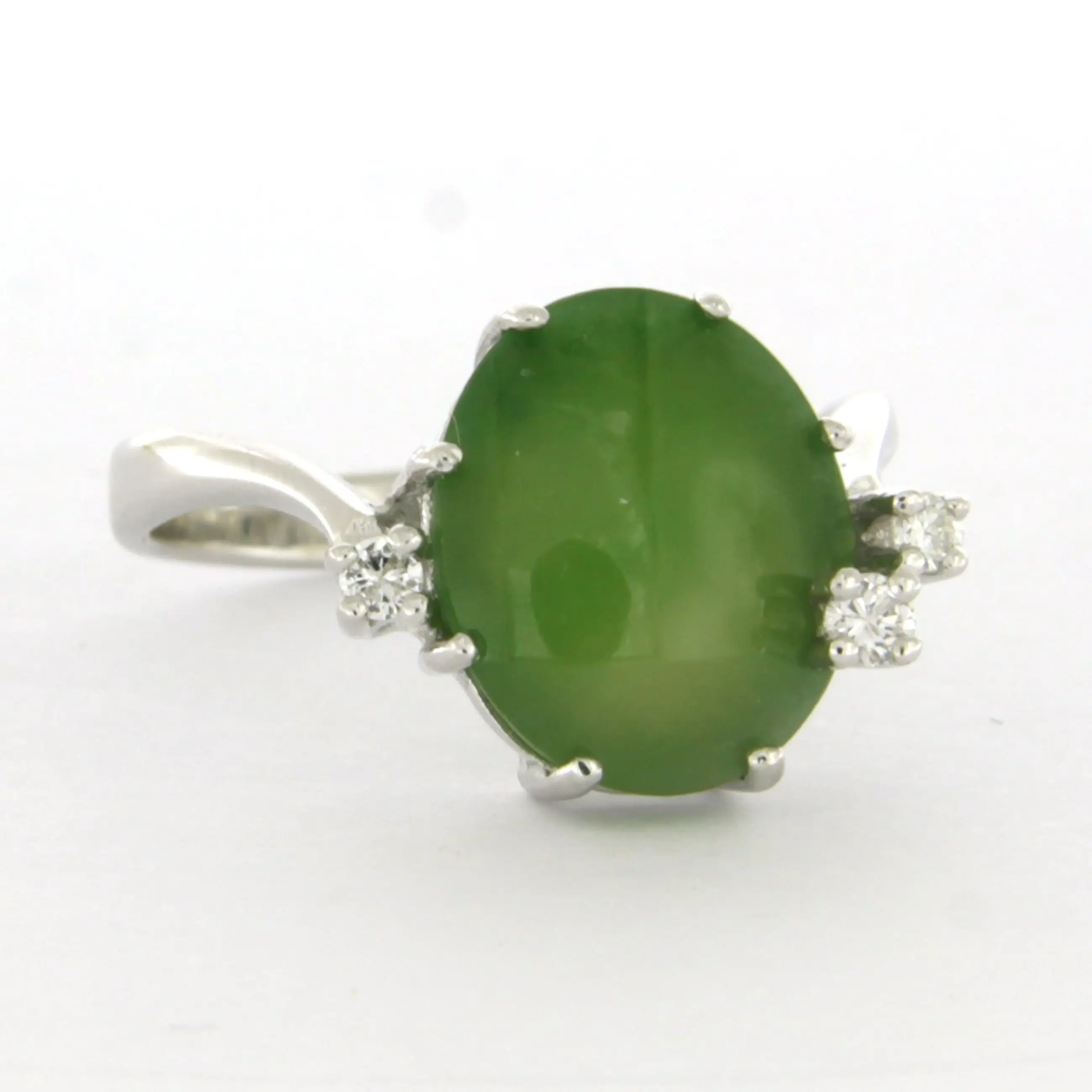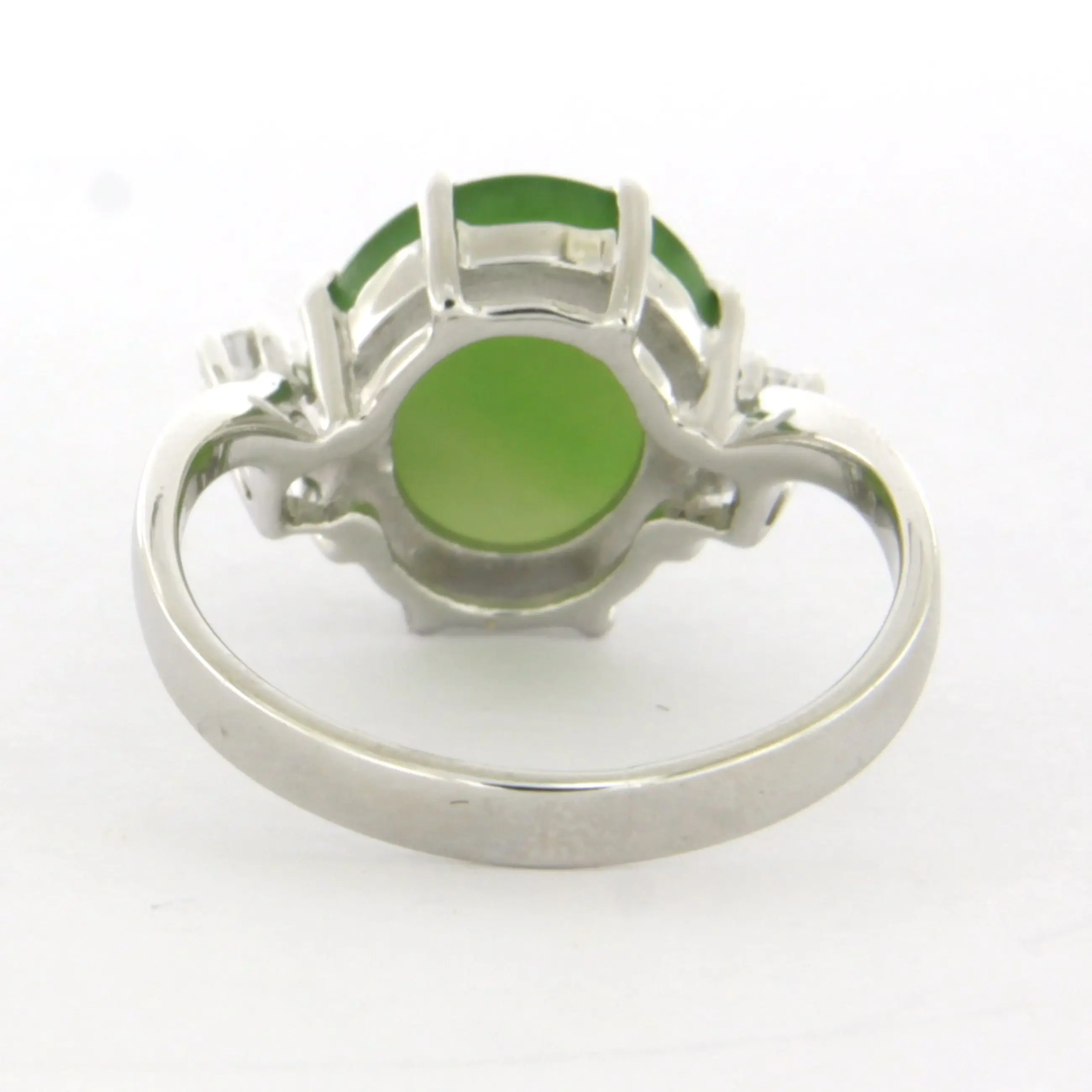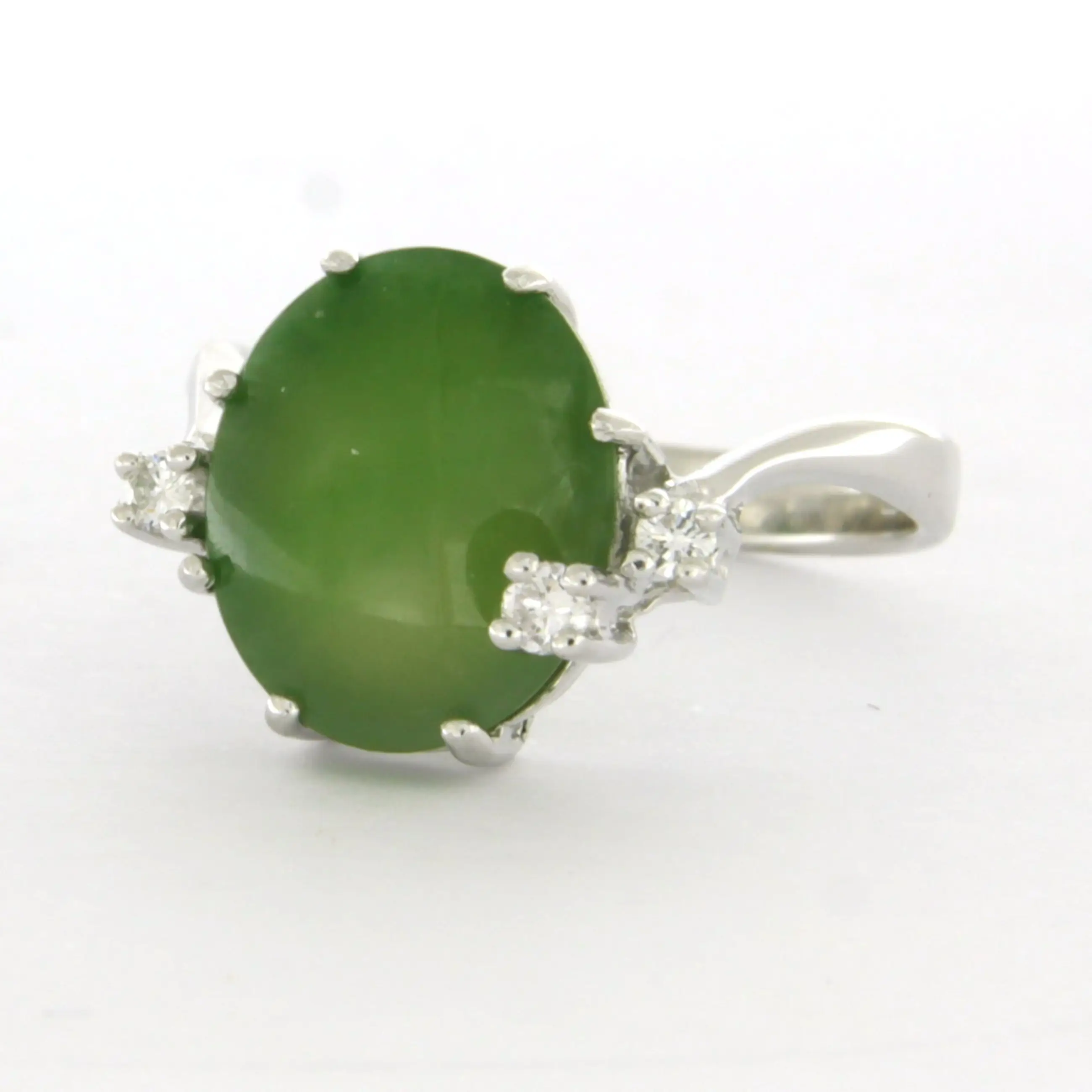 14k wit gouden ring bezet met jade en briljant geslepen diamant tot. 0.10ct – F/G – VS/SI – ringmaat 16.5(52)