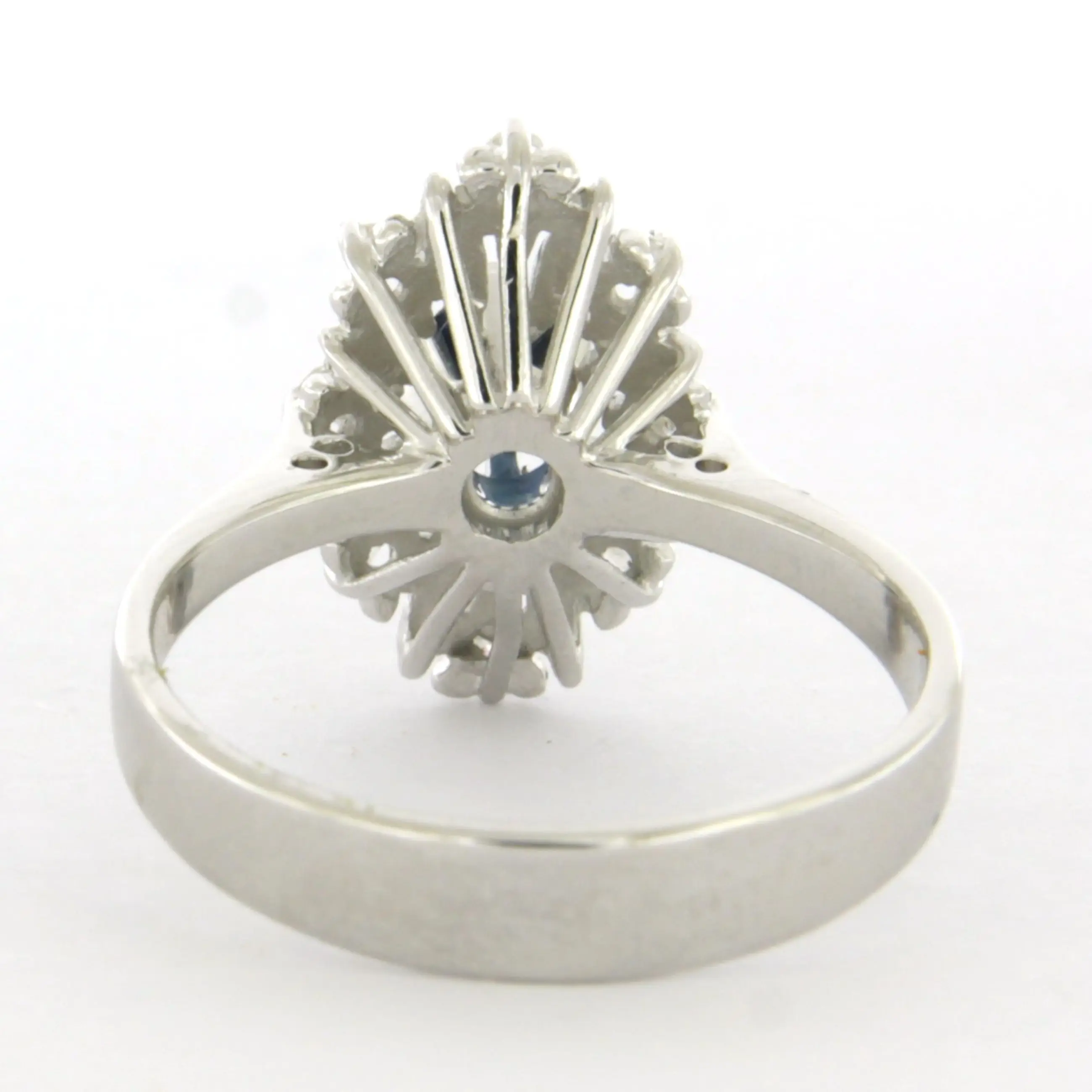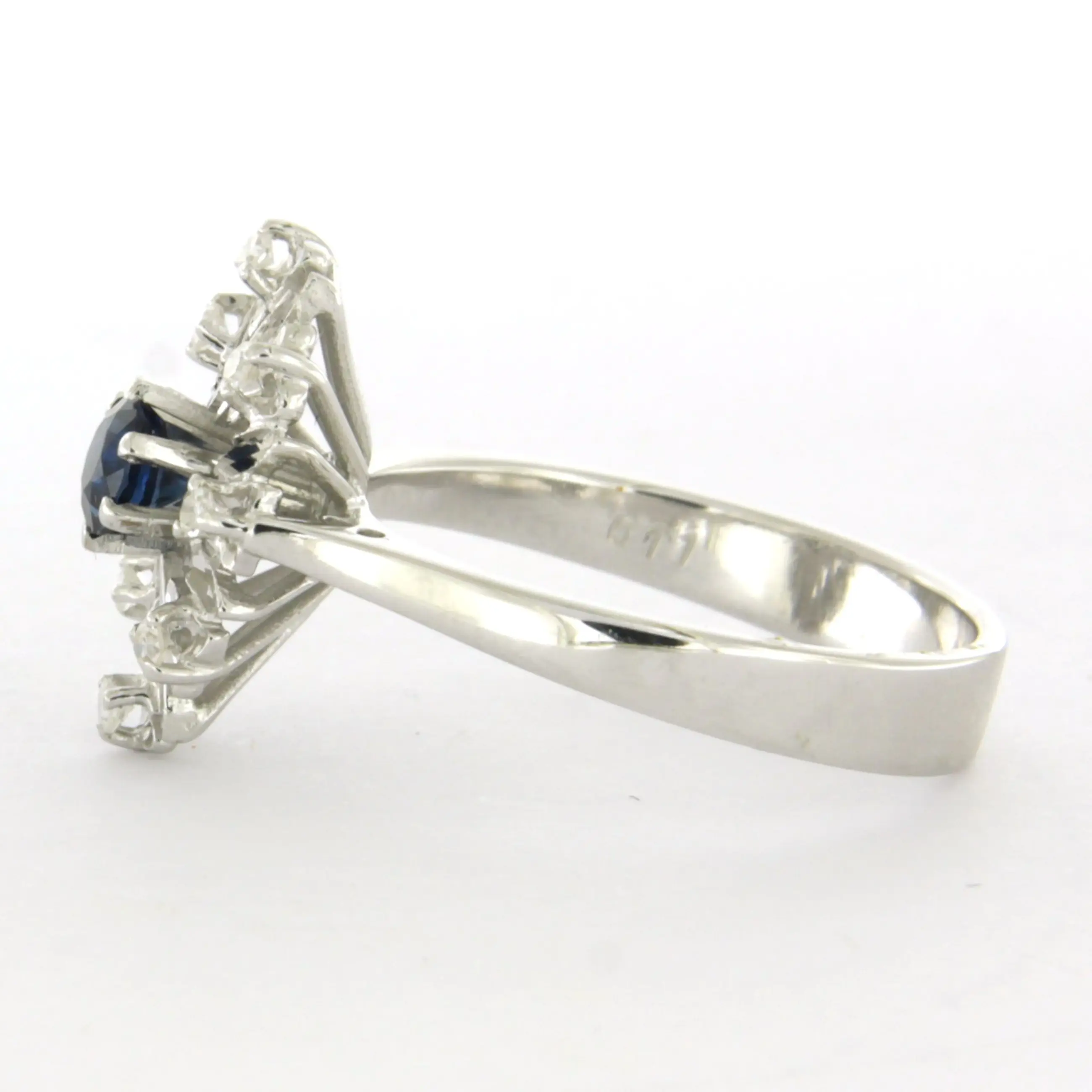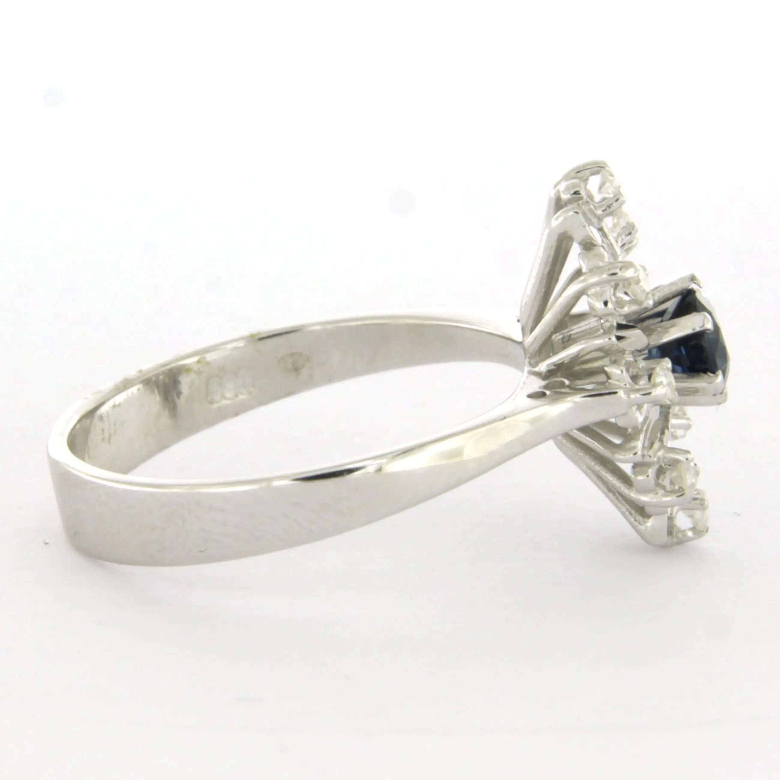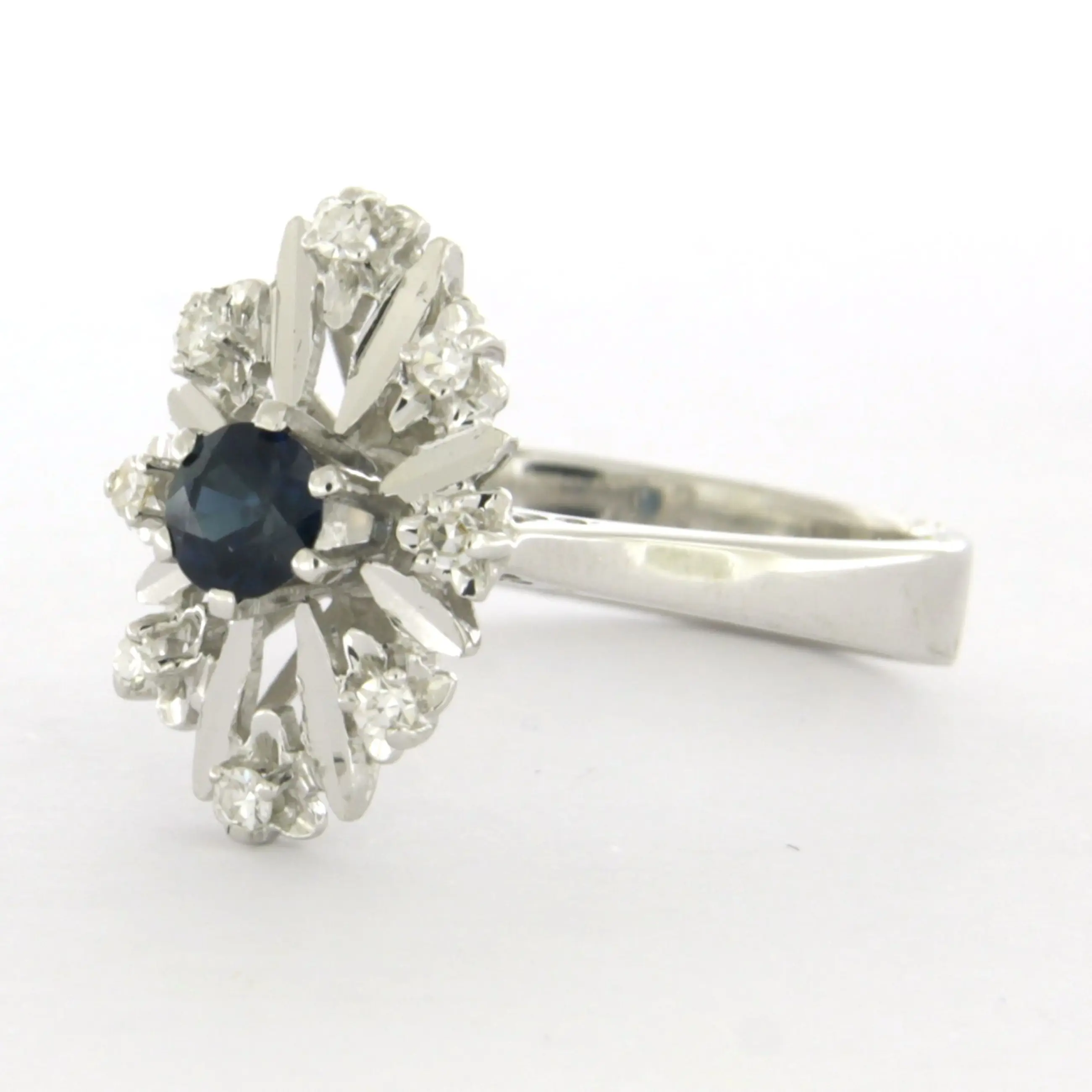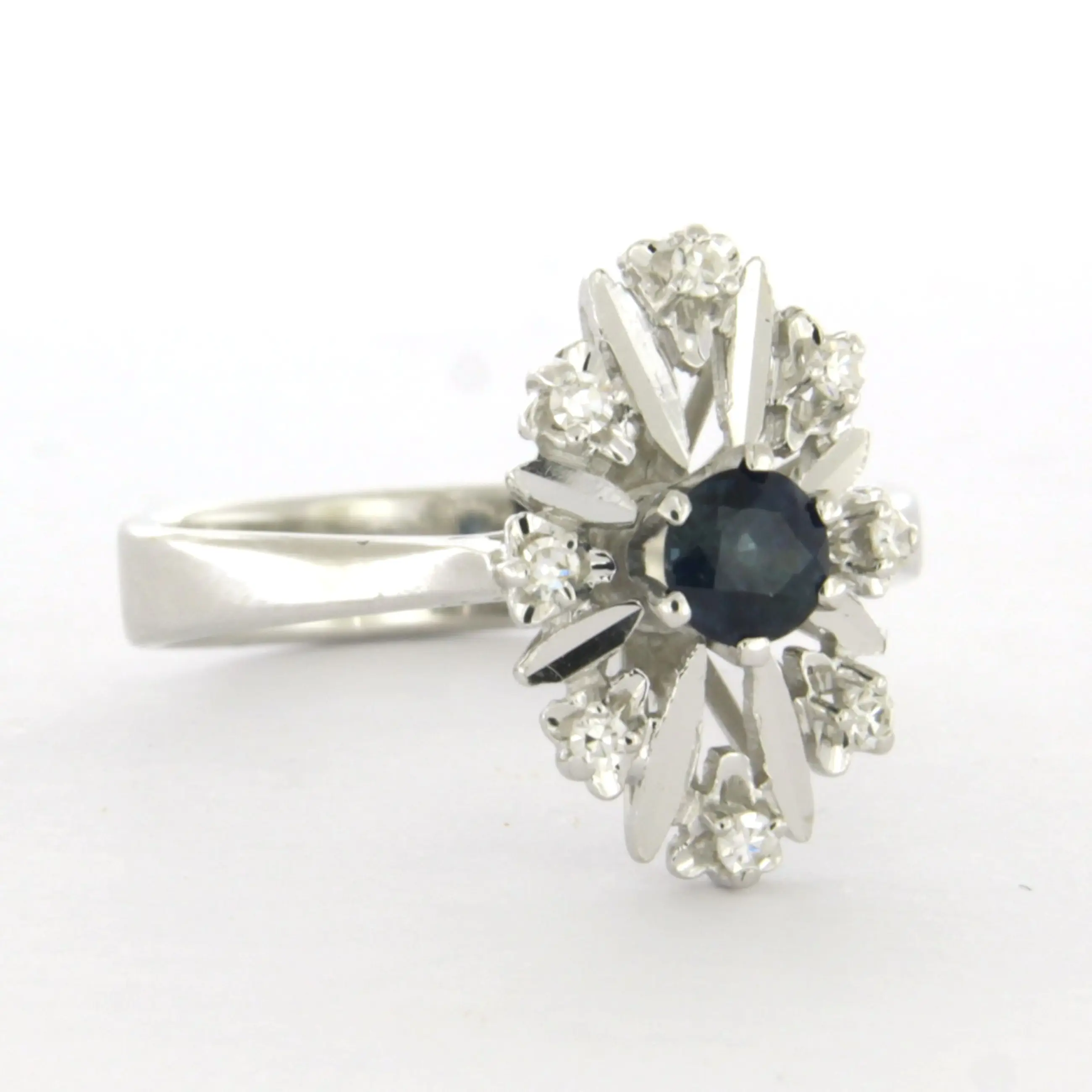 14k wit gouden ring bezet met saffier en single cut geslepen diamant tot. 0.11ct