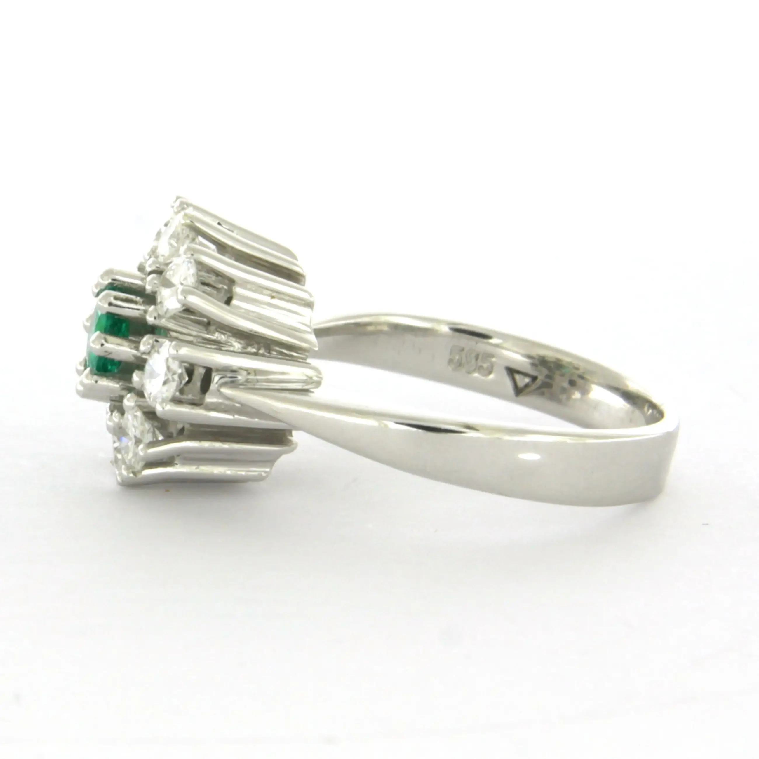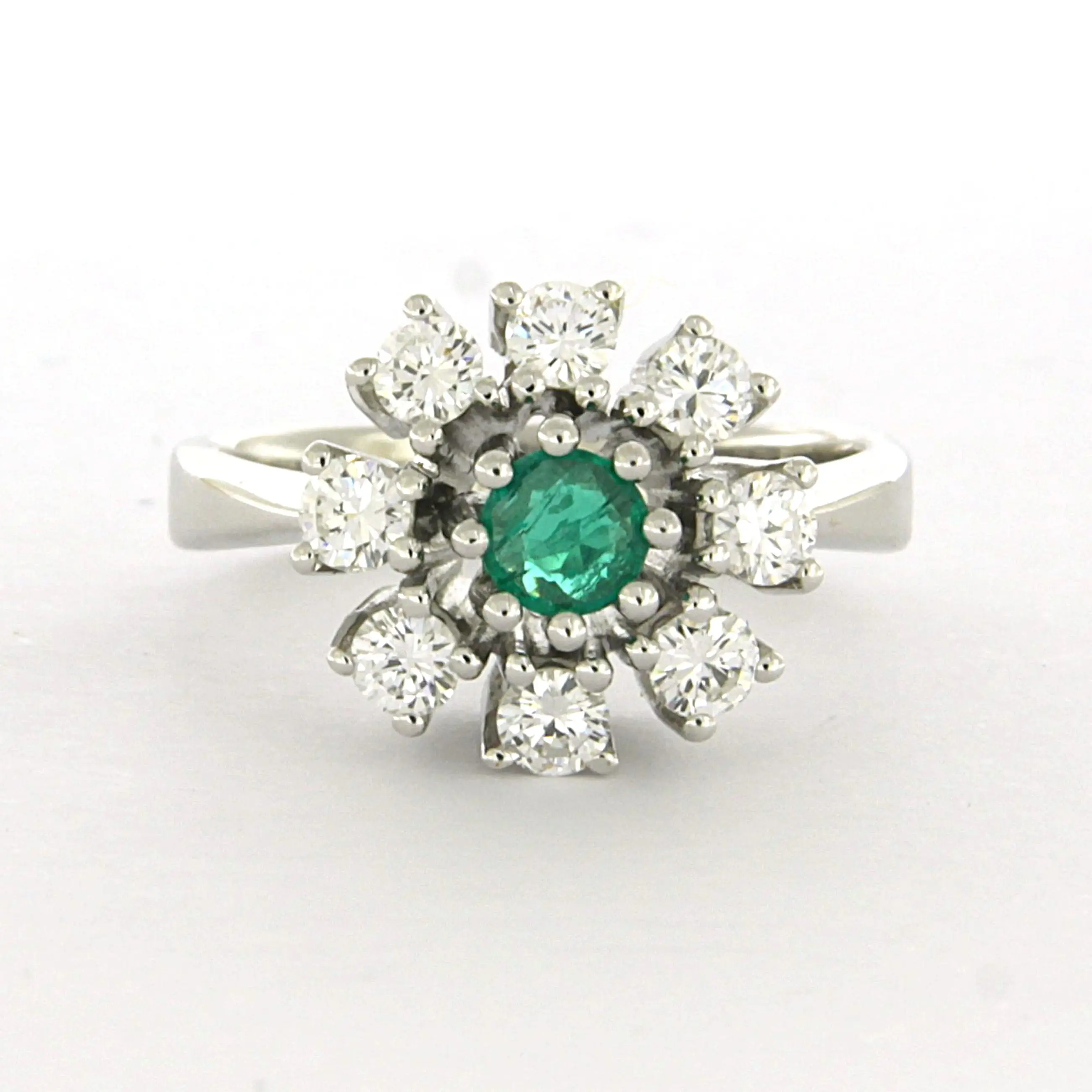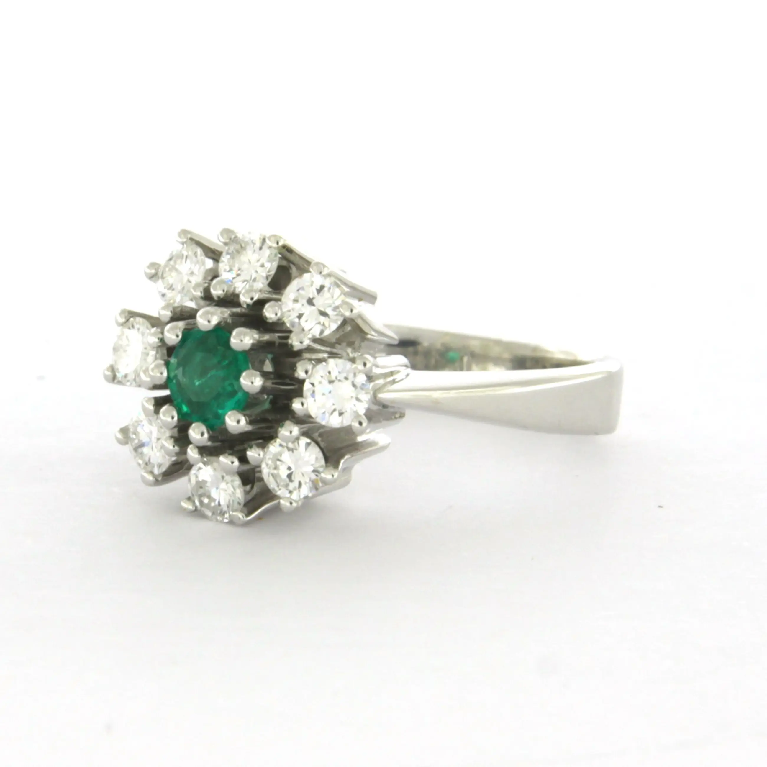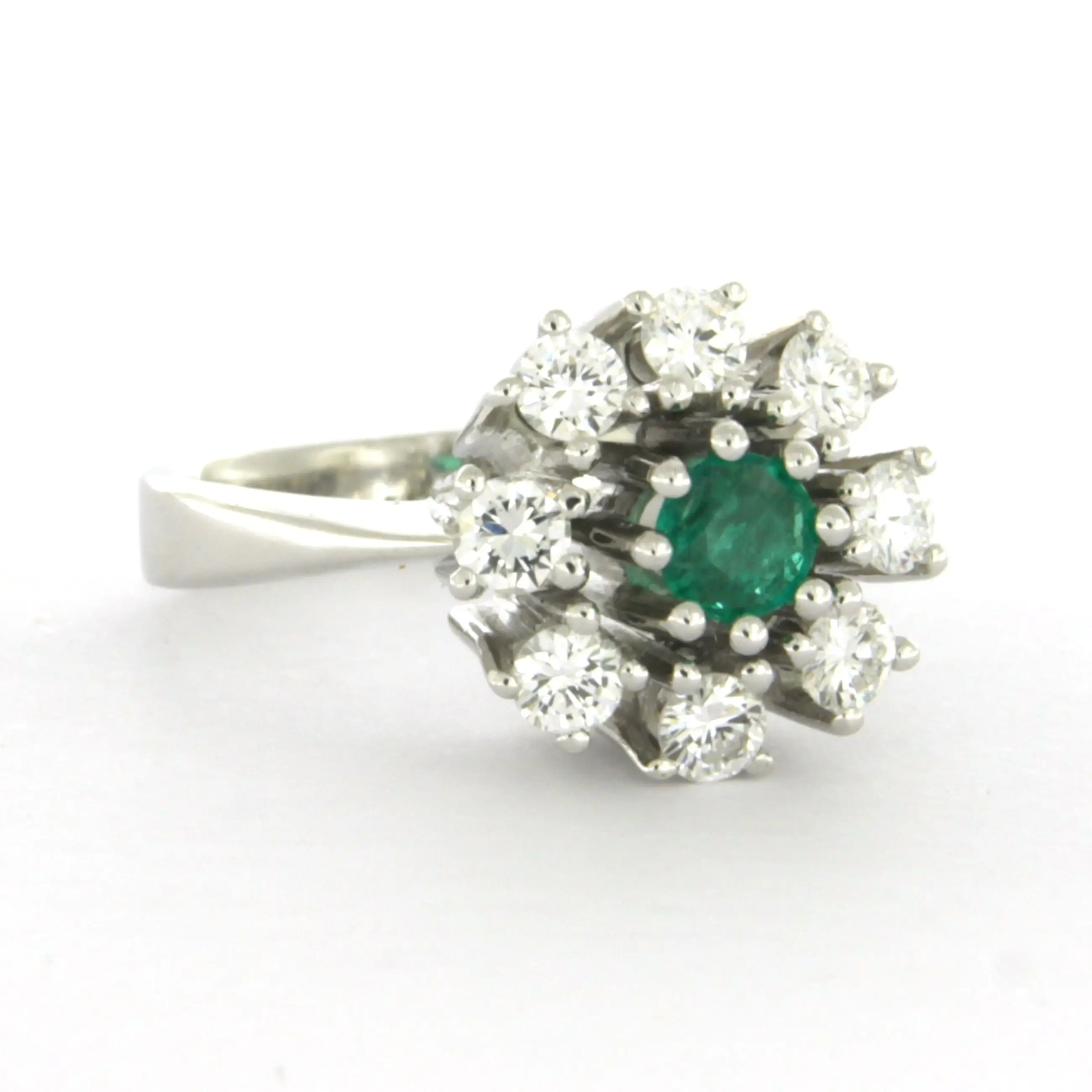 14k wit gouden ring bezet met smaragd en briljant geslepen diamant tot. 0.48ct
