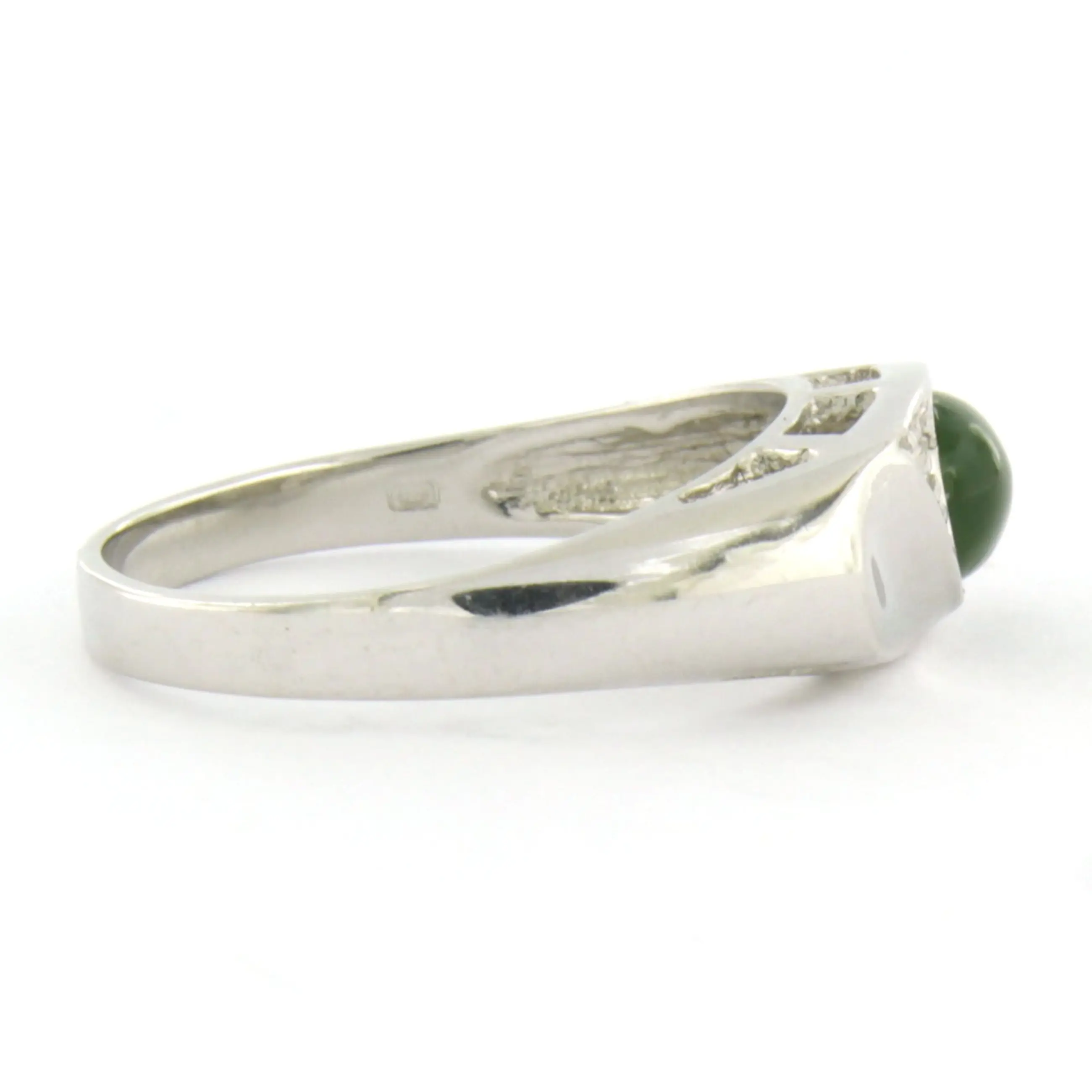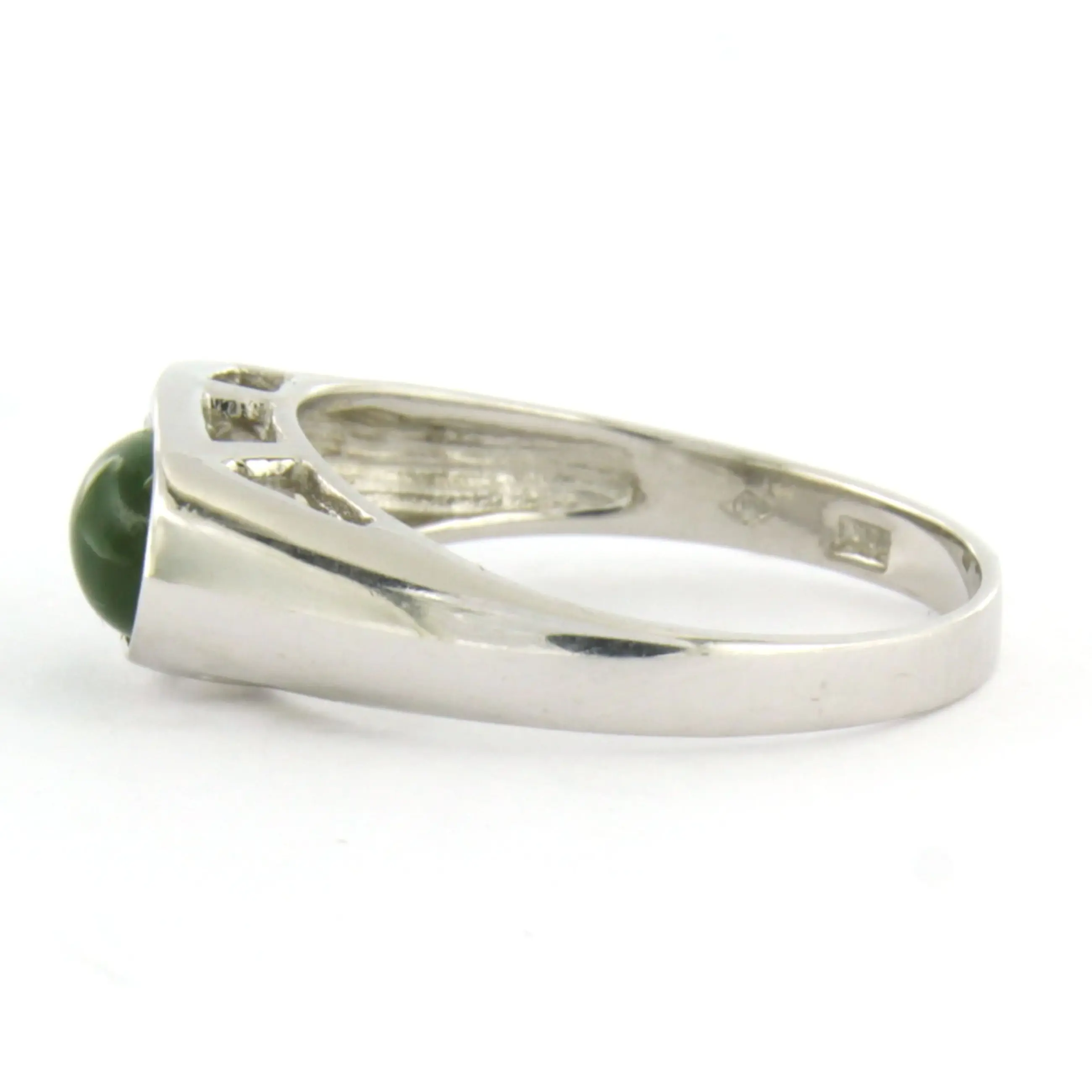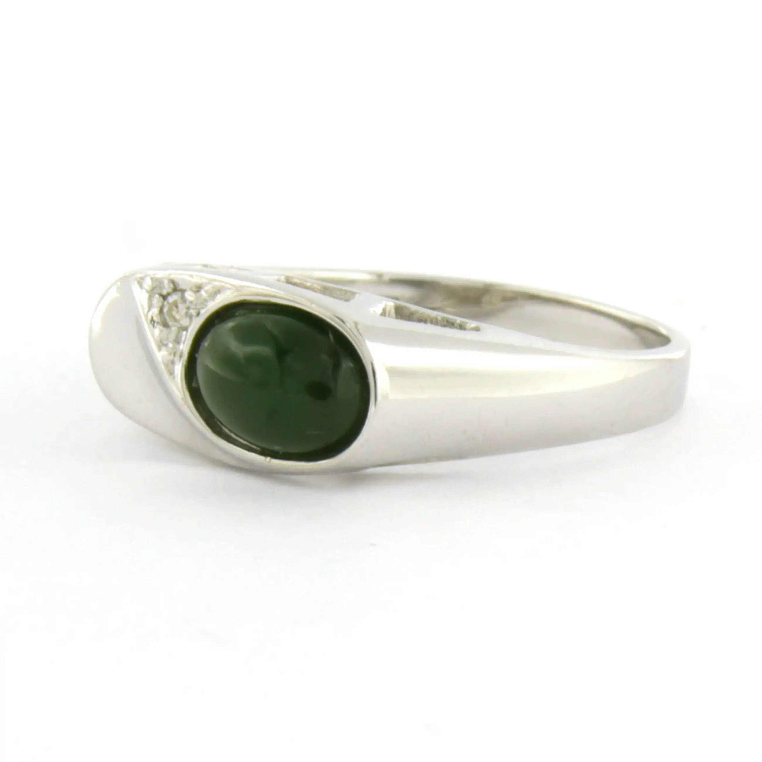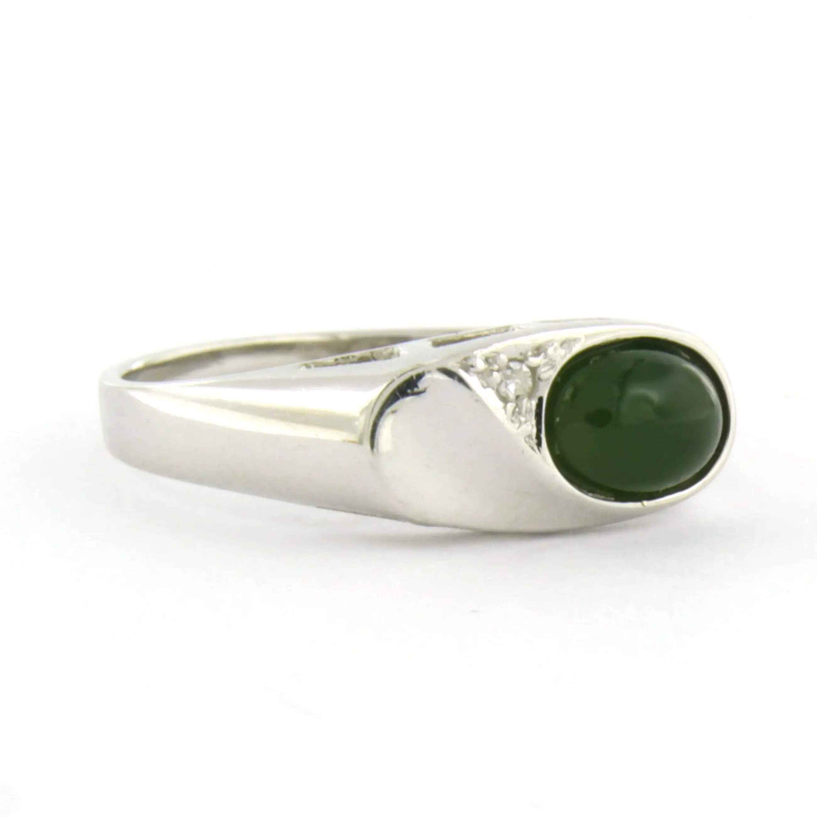 14k wit gouden ring bezet met mos agaat en single cut geslepen diamant tot. 0.01ct - F/G - VS/SI - ringmaat 17.25(54)