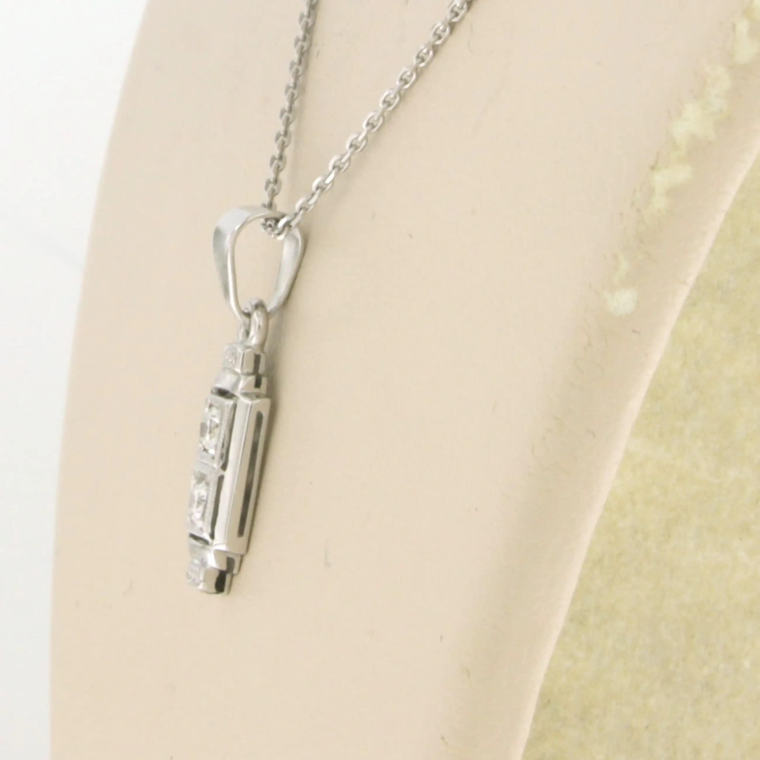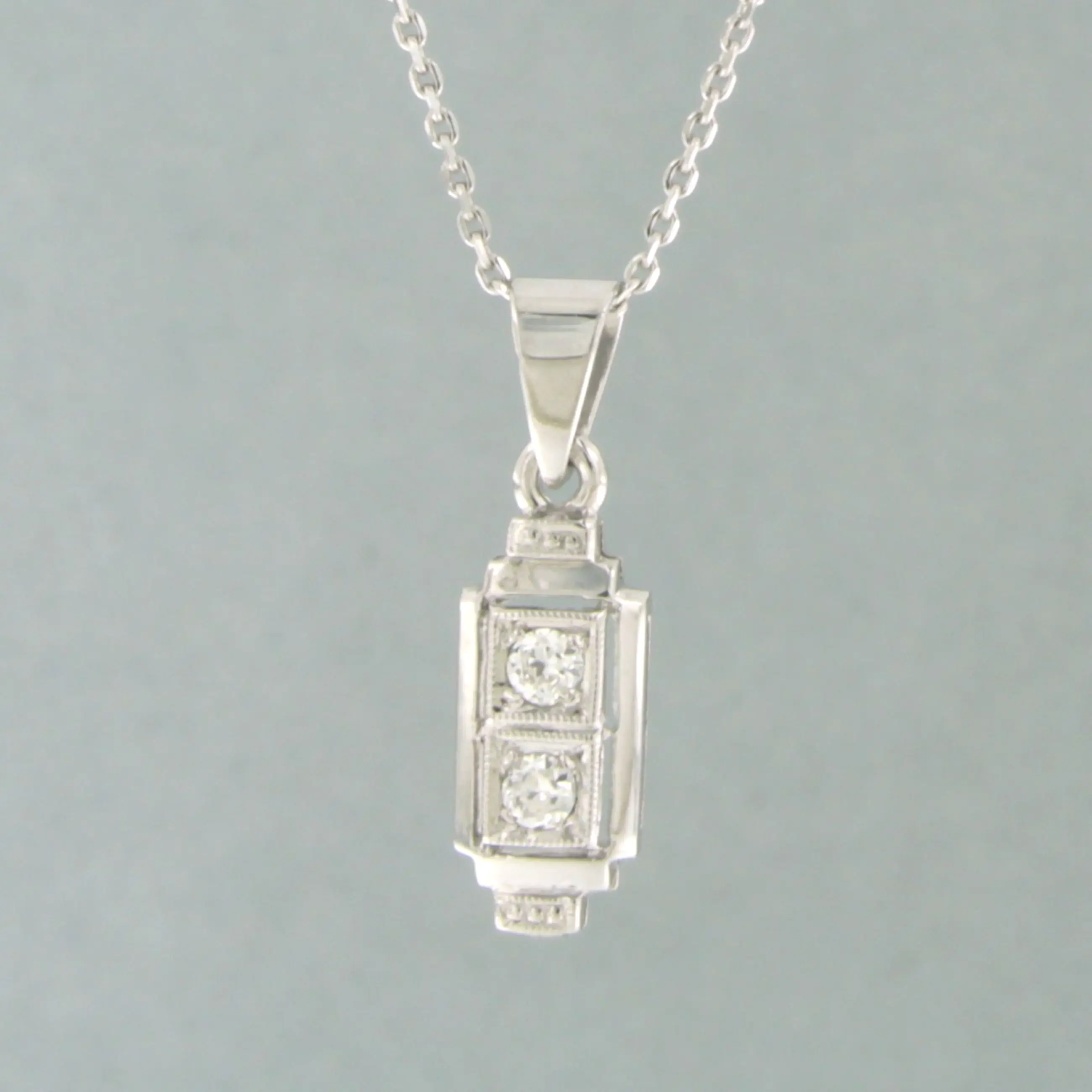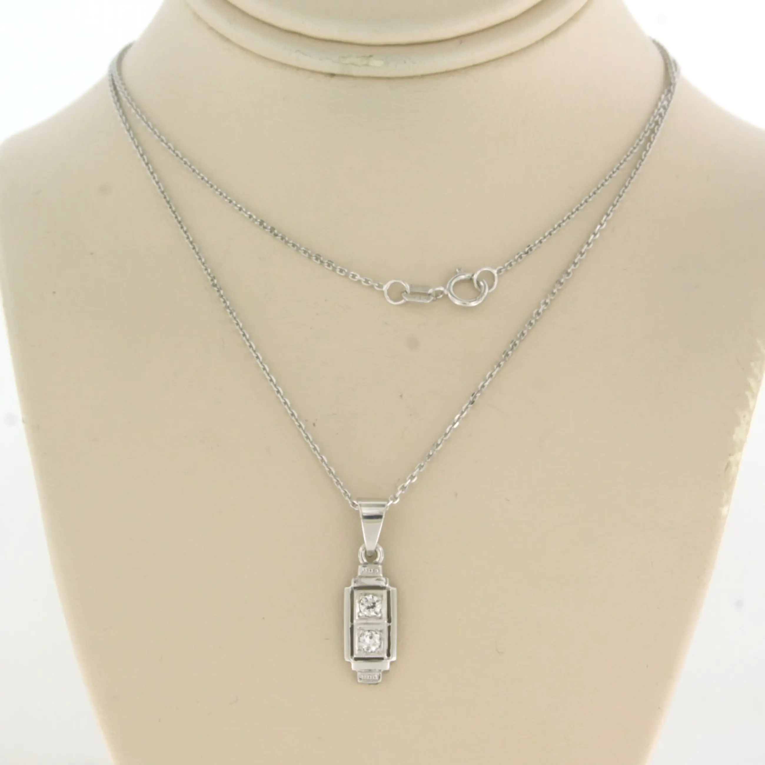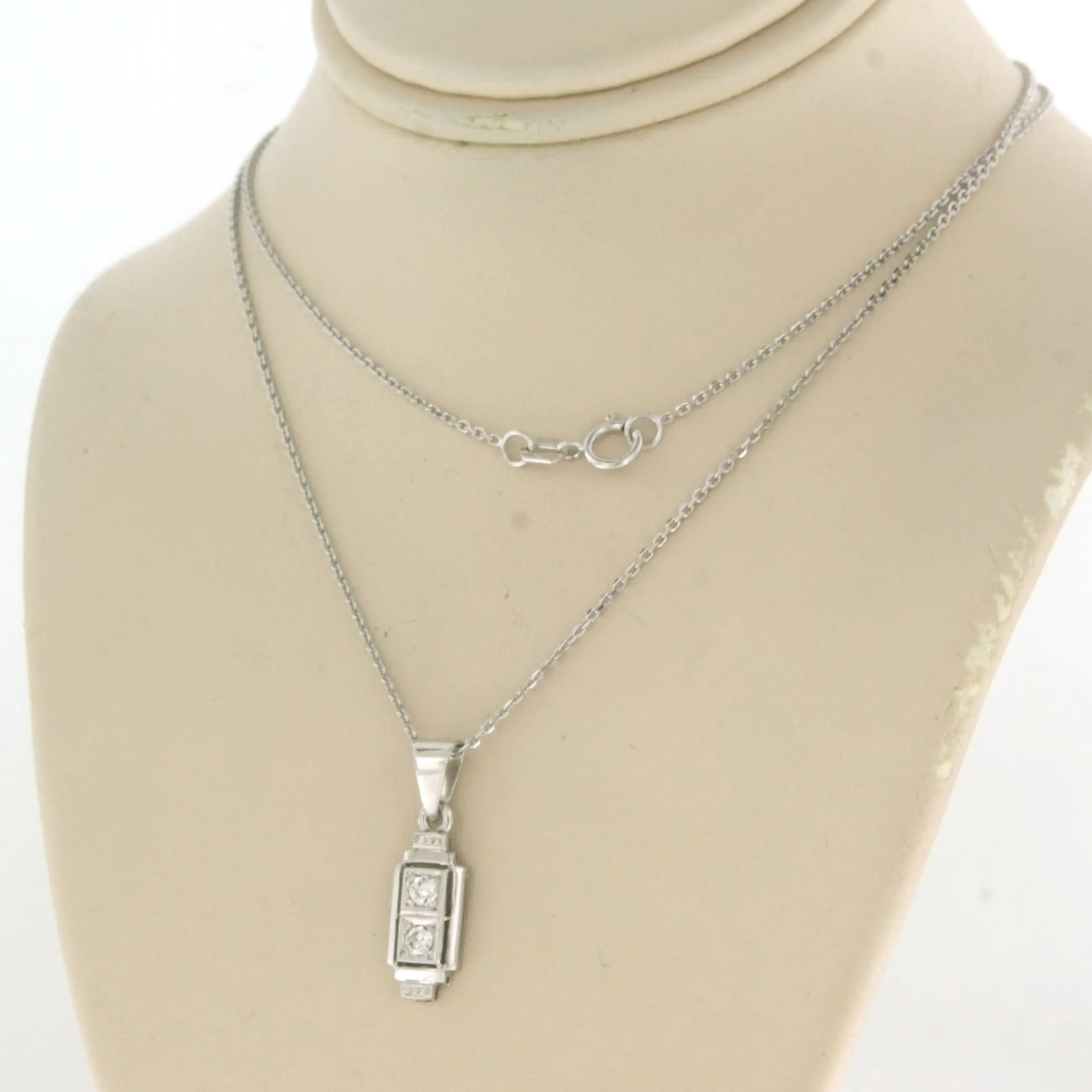 14k wit gouden collier met hanger bezet met oud Amsterdams geslepen diamant tot. 0.18ct - F/G - VS/SI - 50 cm lang