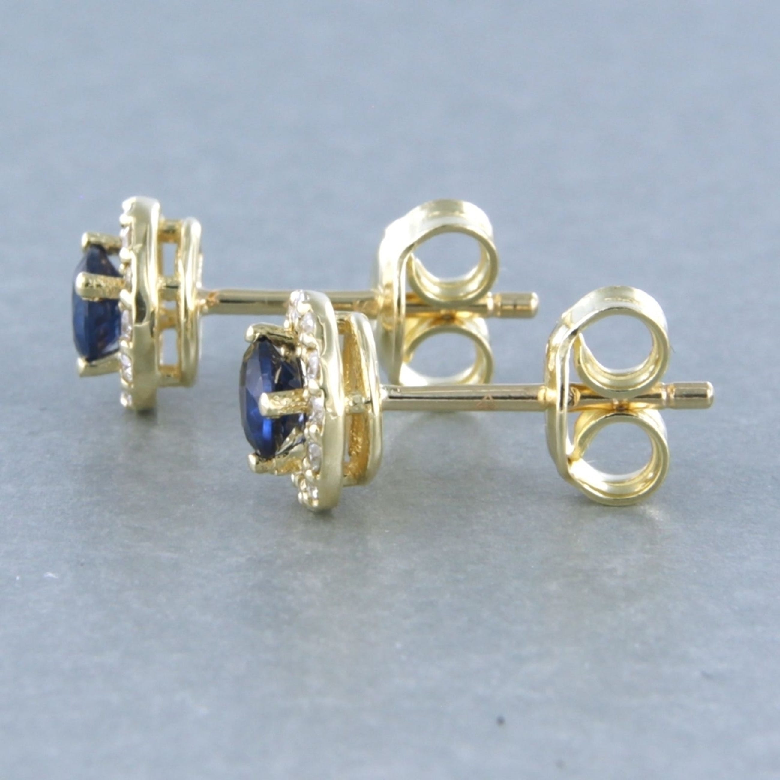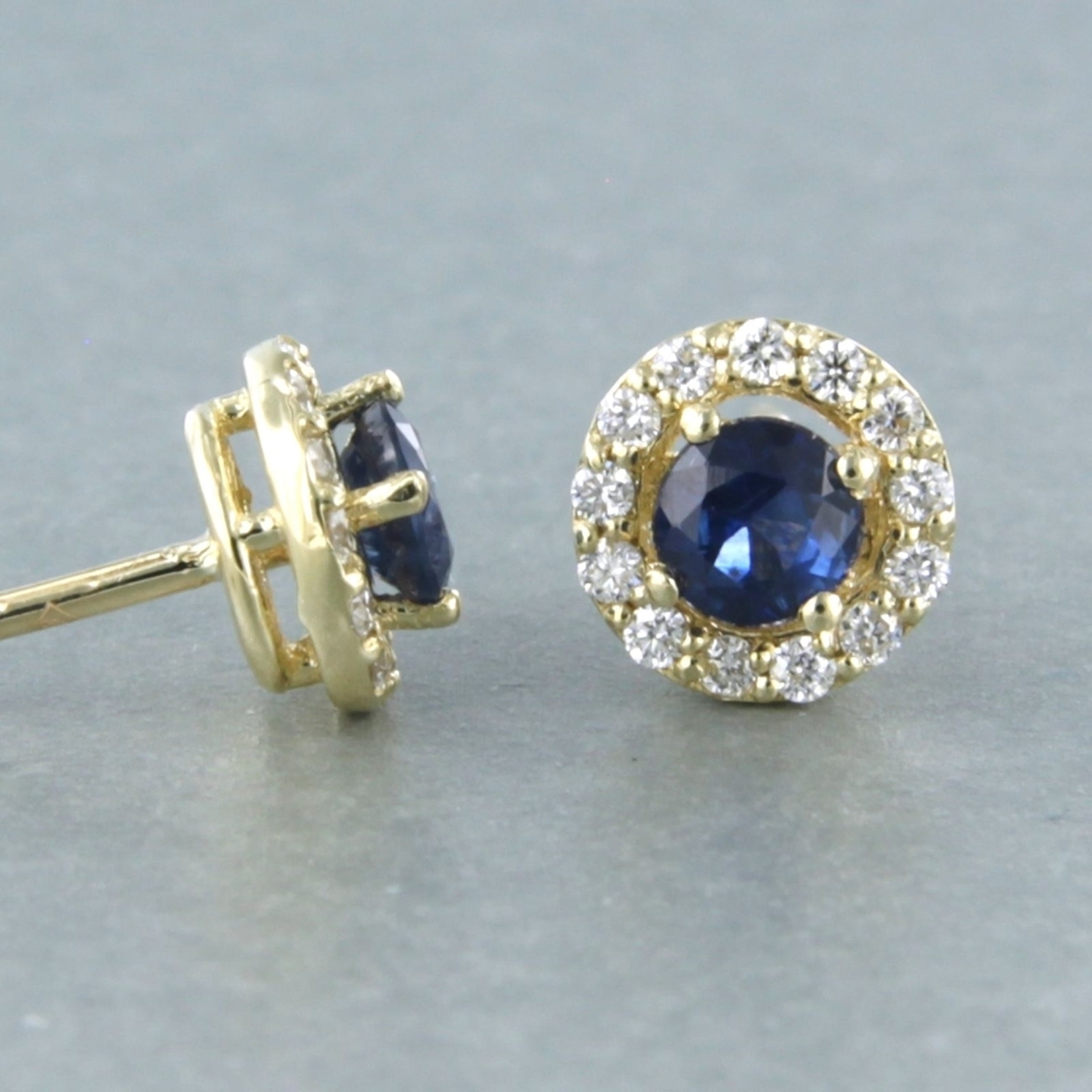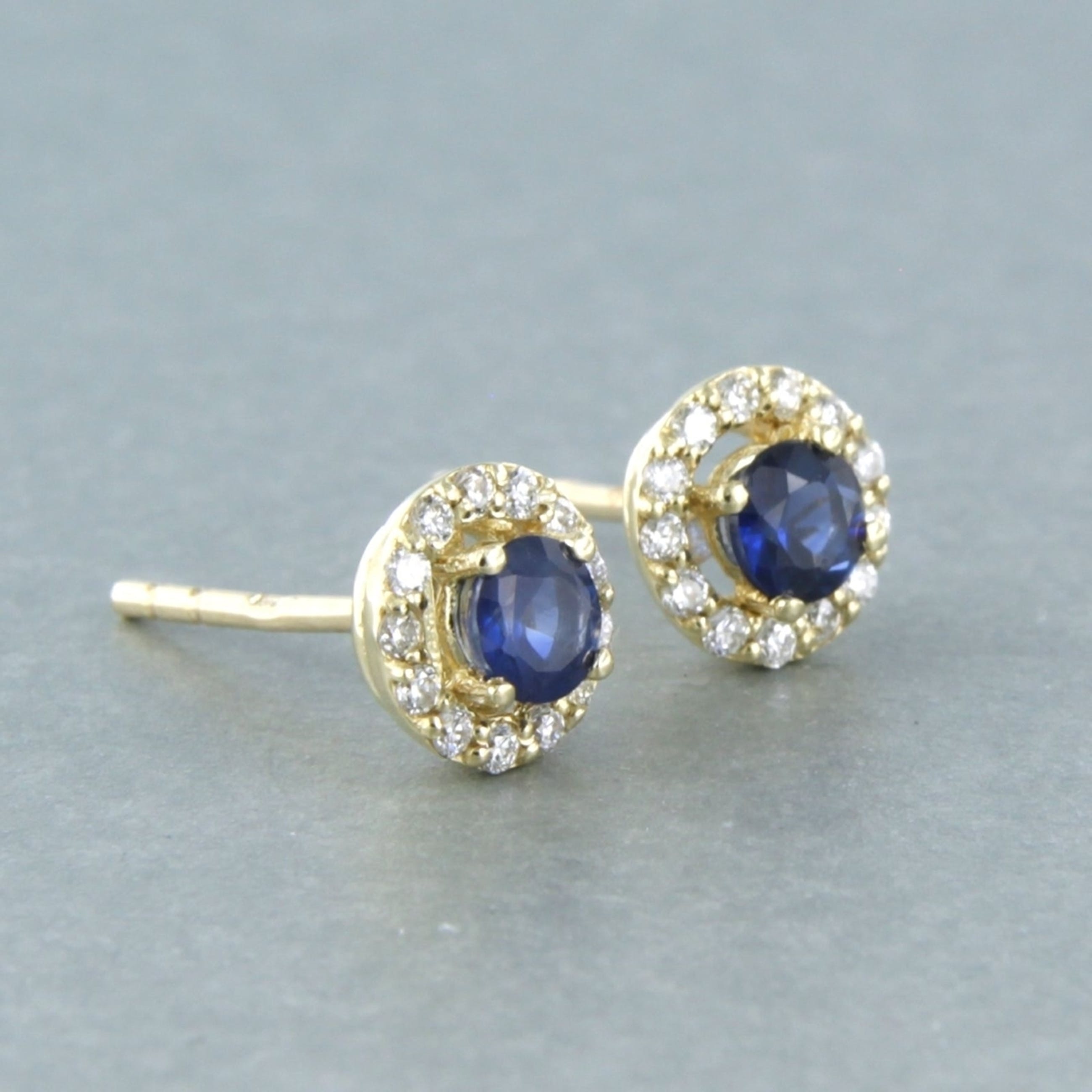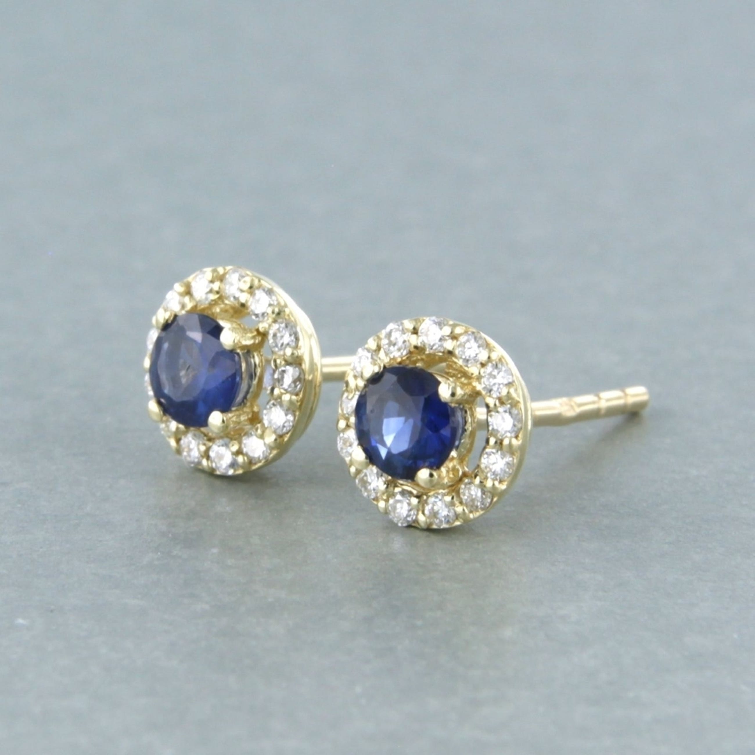 14k geel gouden entourage oorknoppen bezet met saffier tot. 0,50 ct en briljant geslepen diamanten tot. 0,14ct - G/H - VS/SI