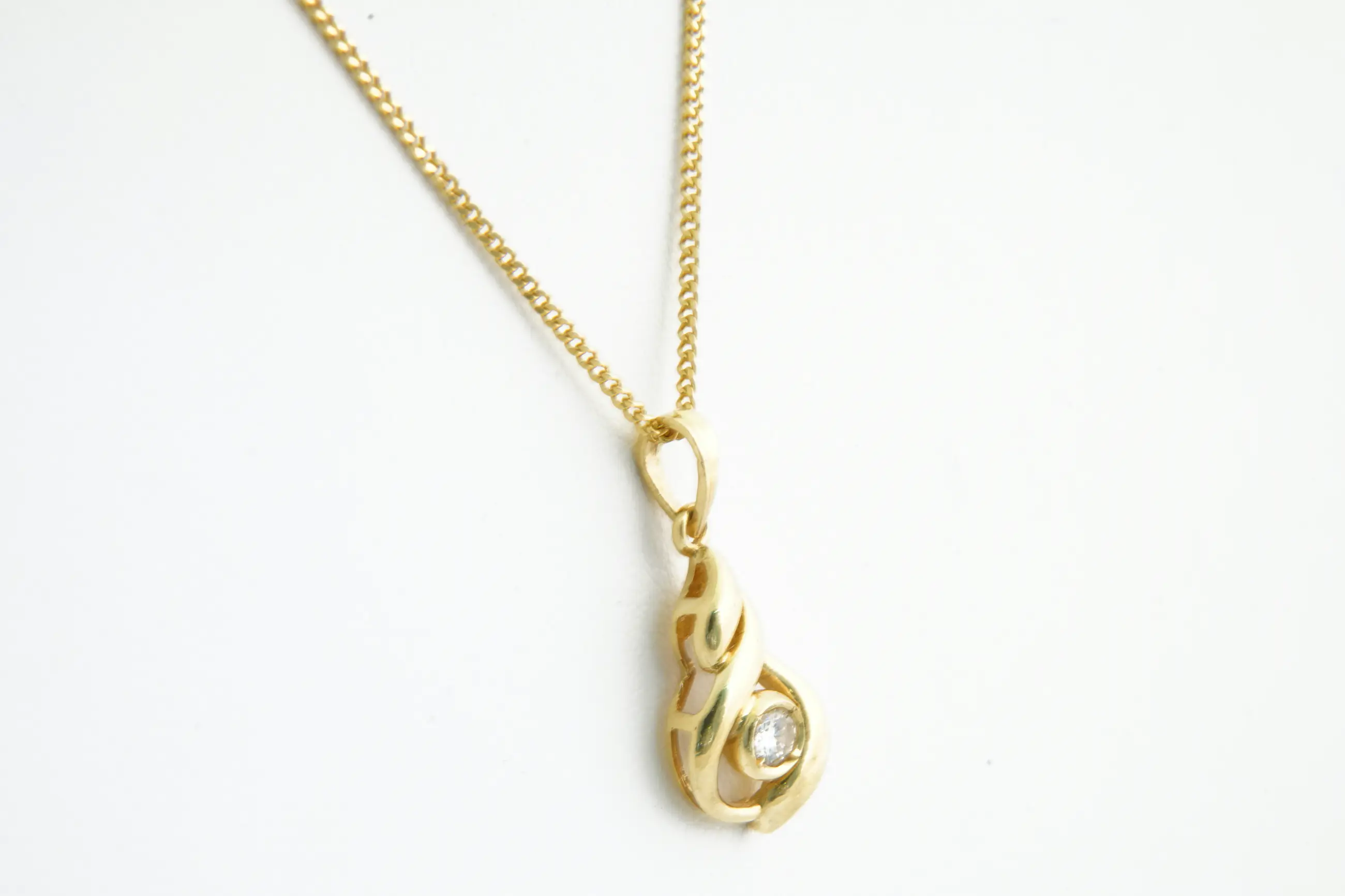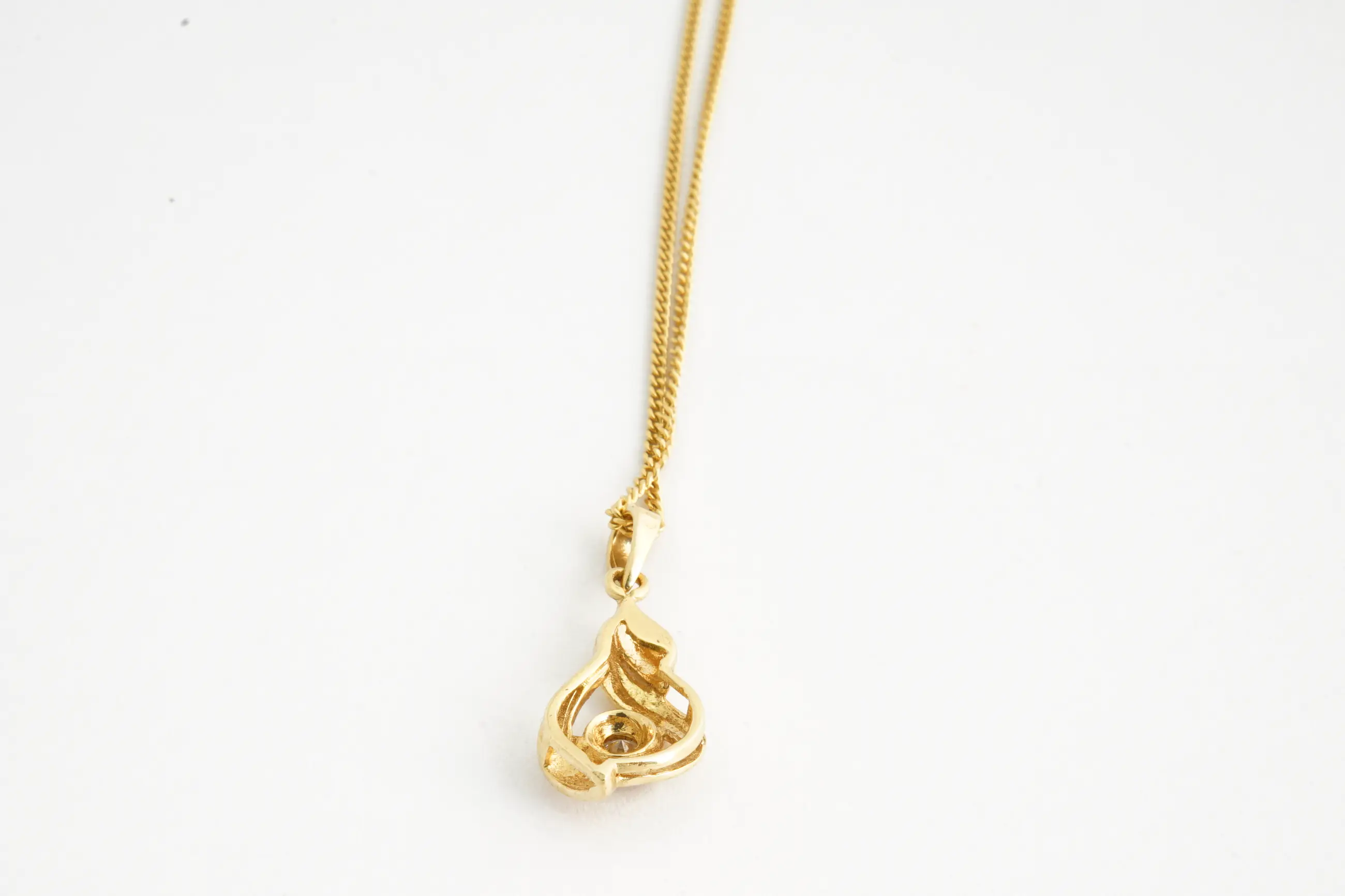 165 - Fijn 18Krt gouden gourmette collier mt (0.10ct) diamanten "Druppel" hanger - Verkocht