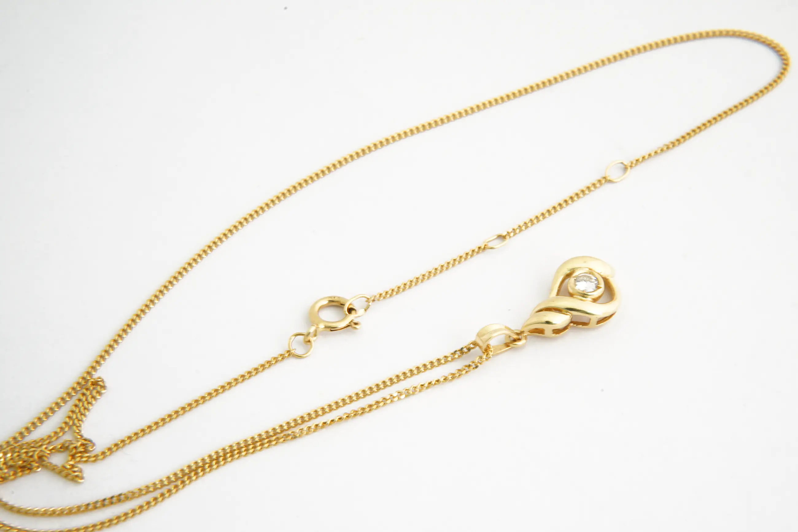 165 - Fijn 18Krt gouden gourmette collier mt (0.10ct) diamanten "Druppel" hanger kopen? Bied vanaf 260!