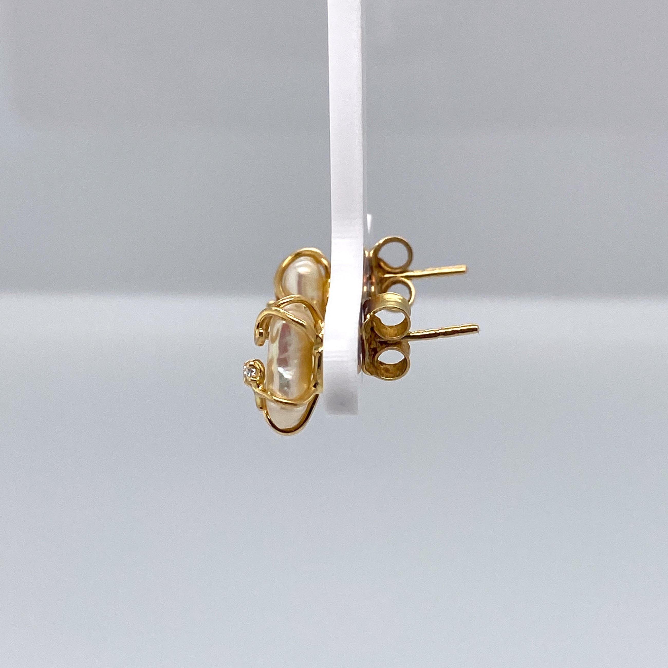 2 zaadparels bezet met 2 x 1,7 mm briljant geslepen diamant met een totaal van circa 0,04 caraat