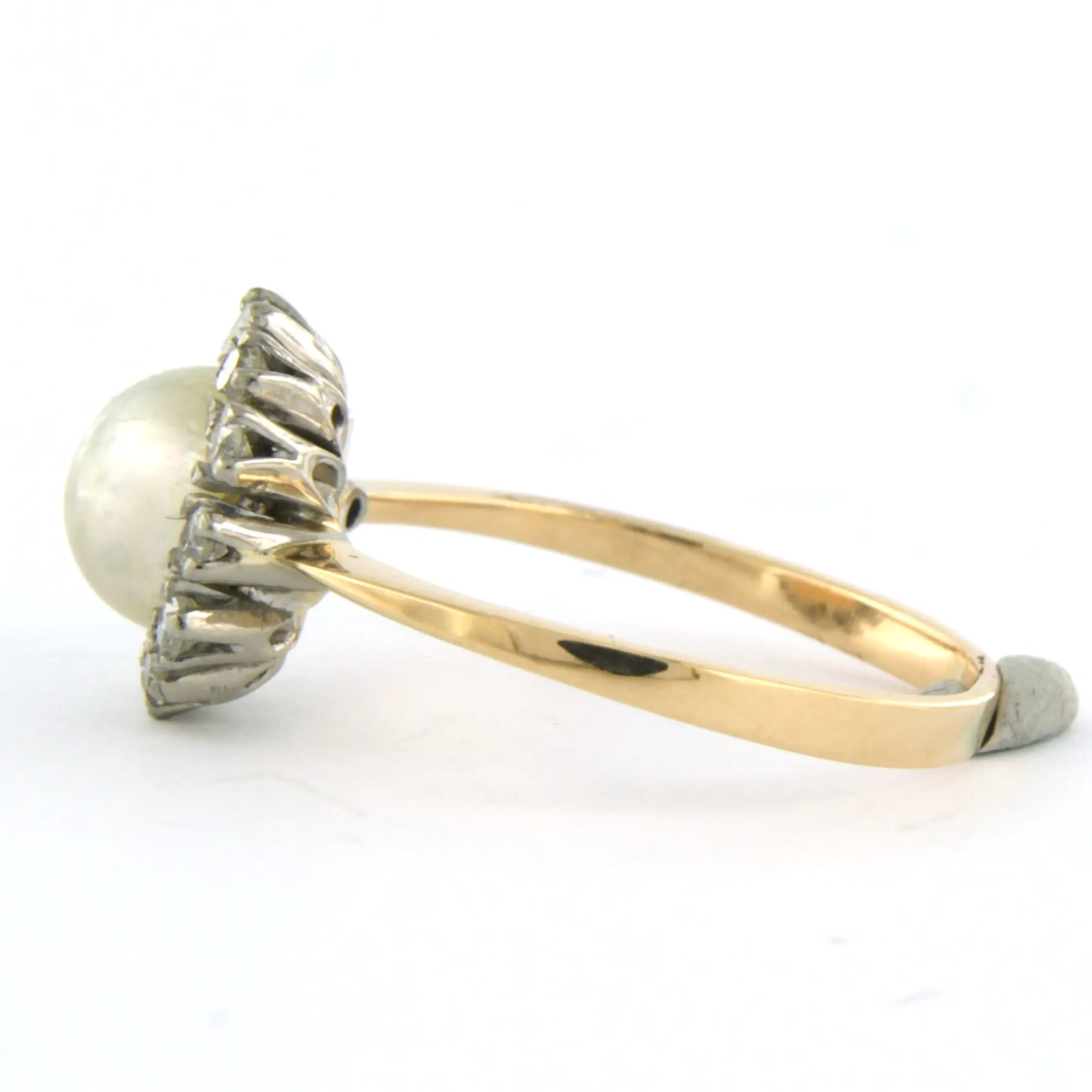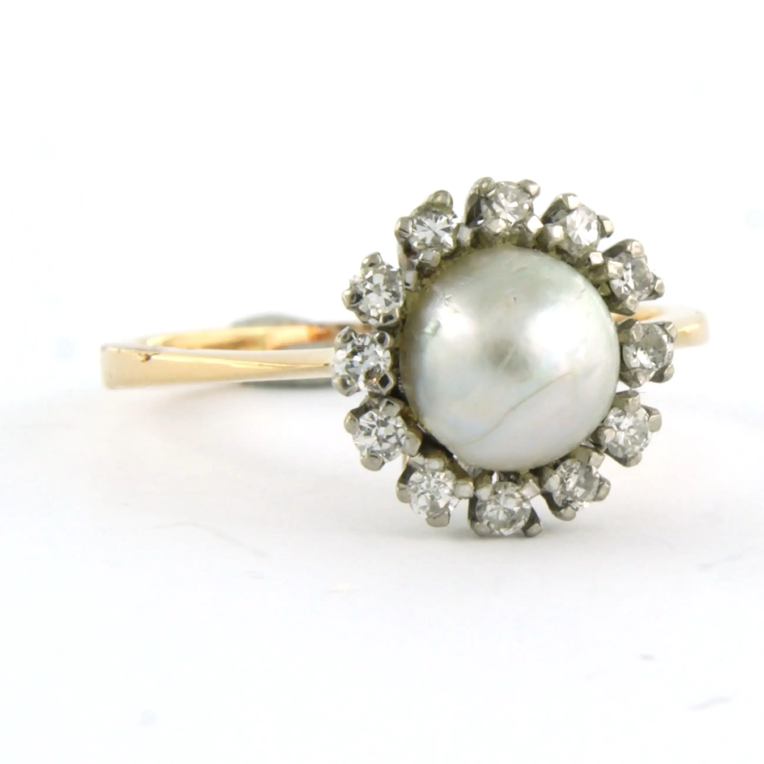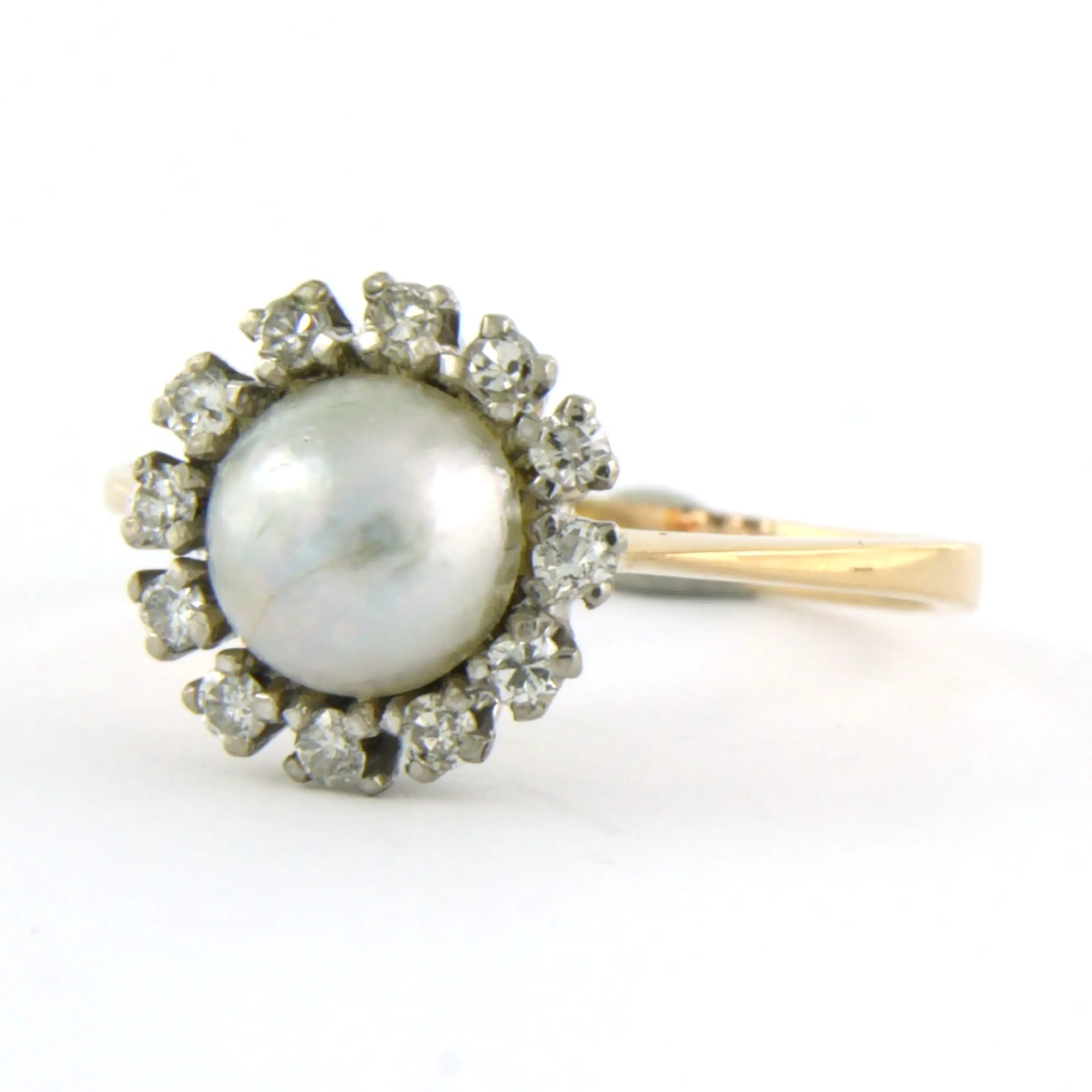 18k bicolor gouden entourage ring bezet met centraal een mabee parel en aan entourage single cut geslepen diamant tot. 0,20ct - F/G - VS/SI - rm 18,25(57)