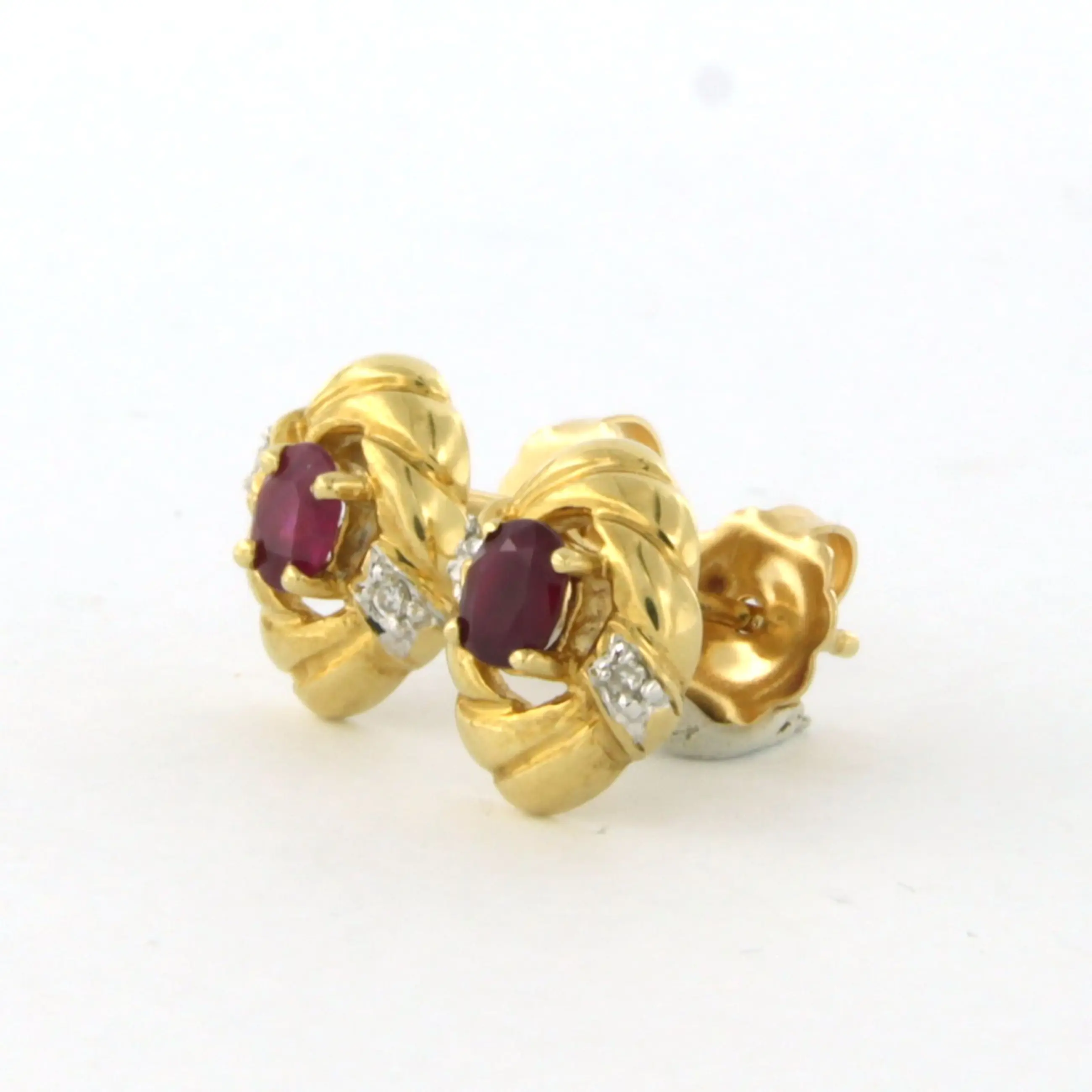 18k bicolor gouden oorbellen bezet met robijn en single cut geslepen diamanten tot. circa 0.02 ct - F/G - VS/SI