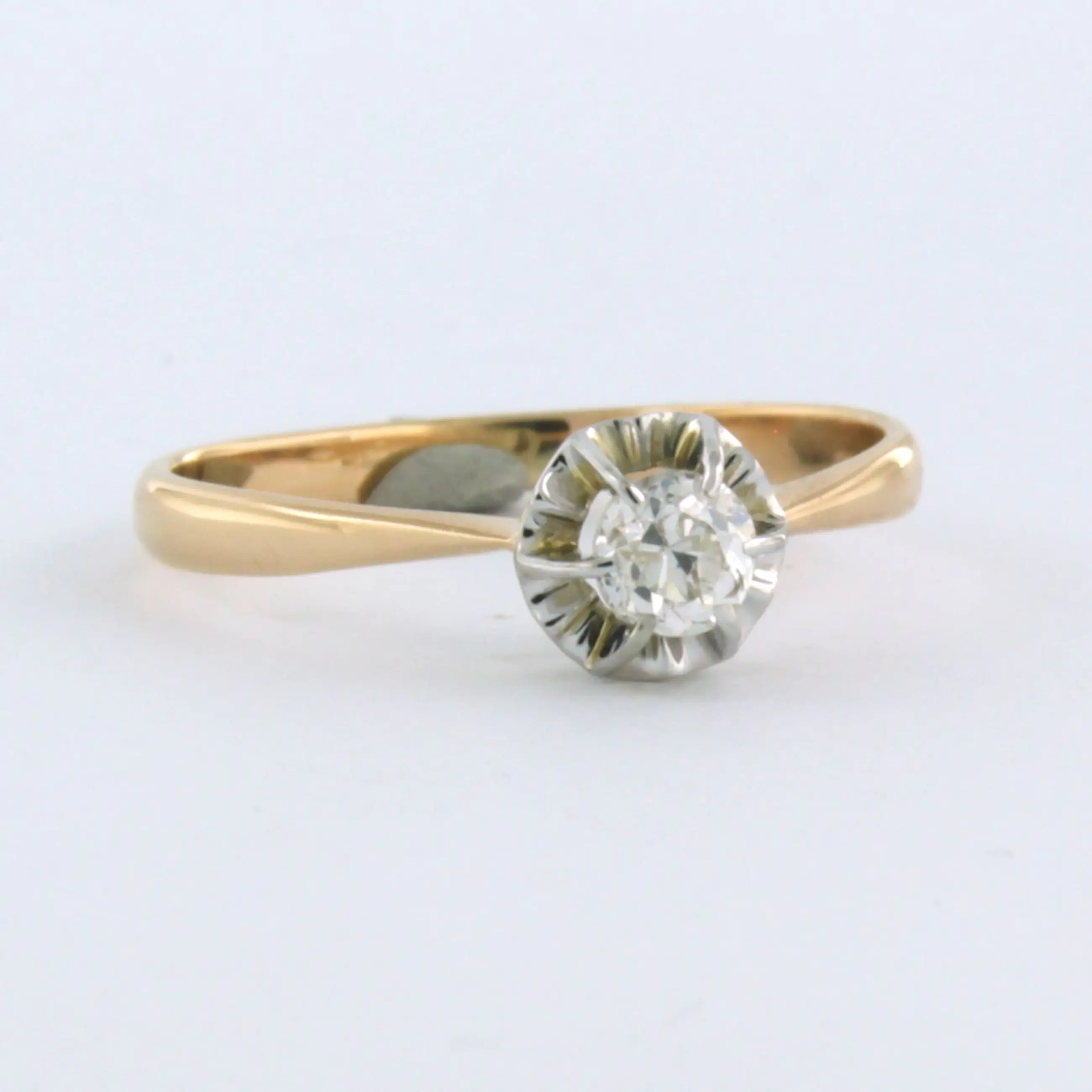 18k bicolor gouden ring met bolsjewiek geslepen diamant 0.20 ct G/H SI - ringmaat 17.25 (54)