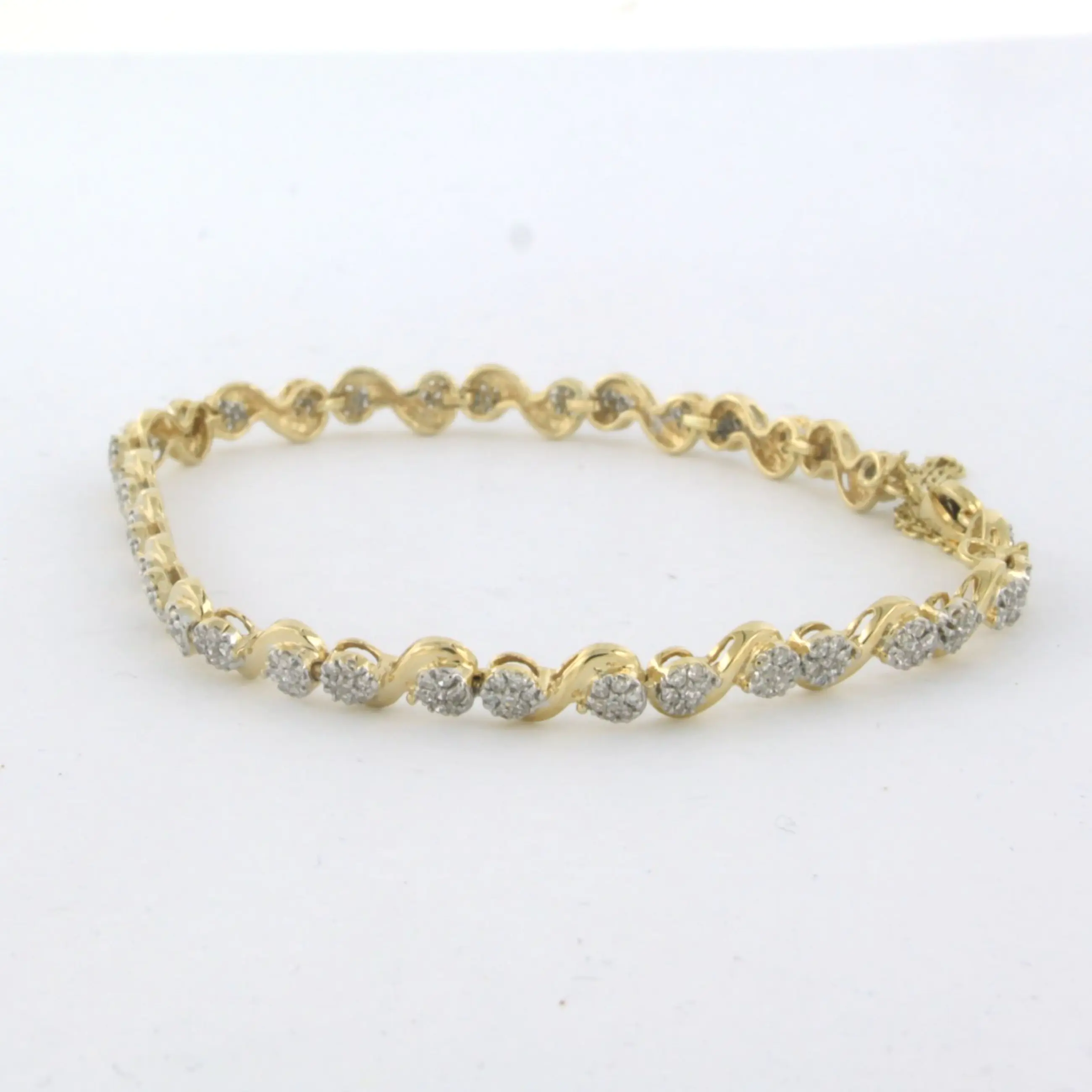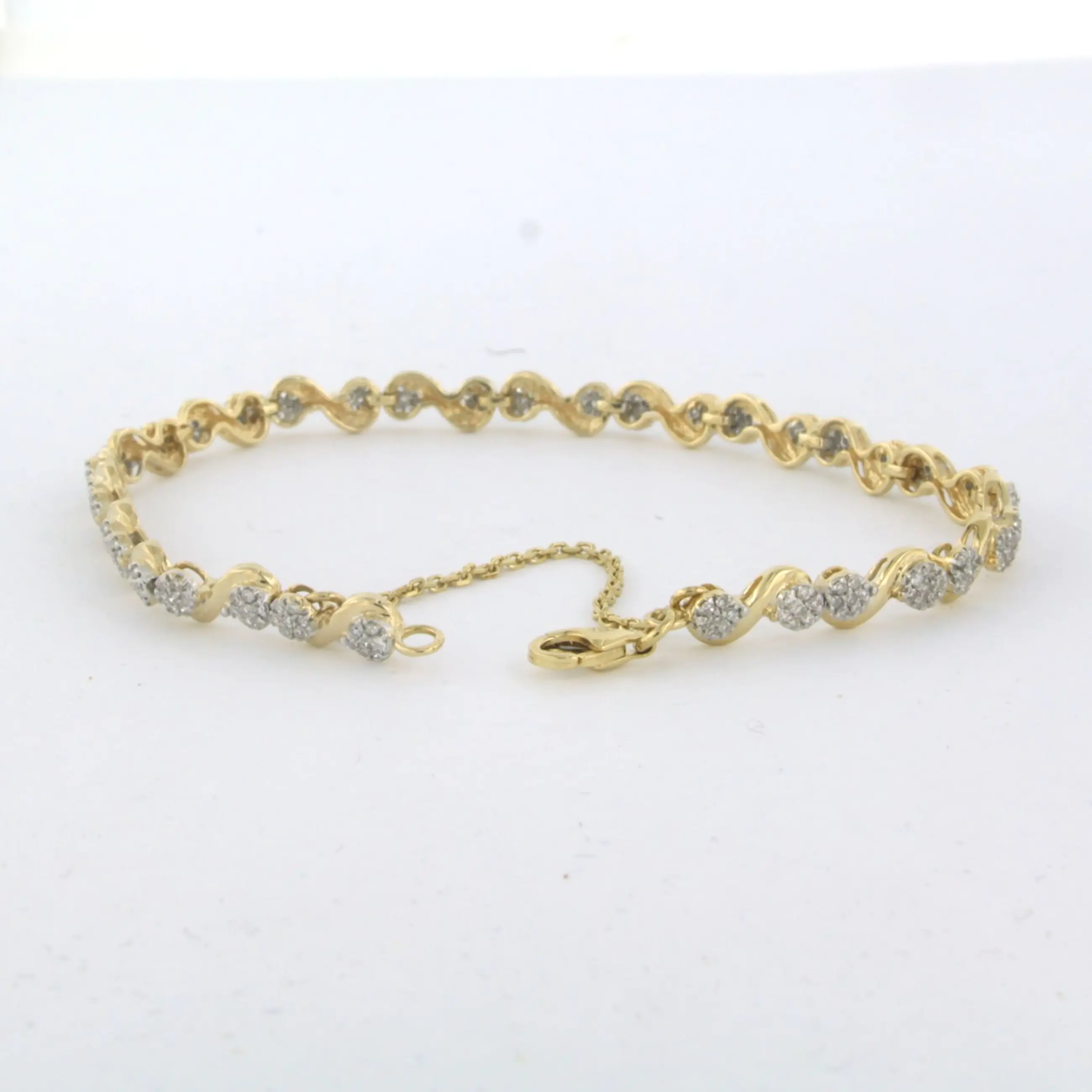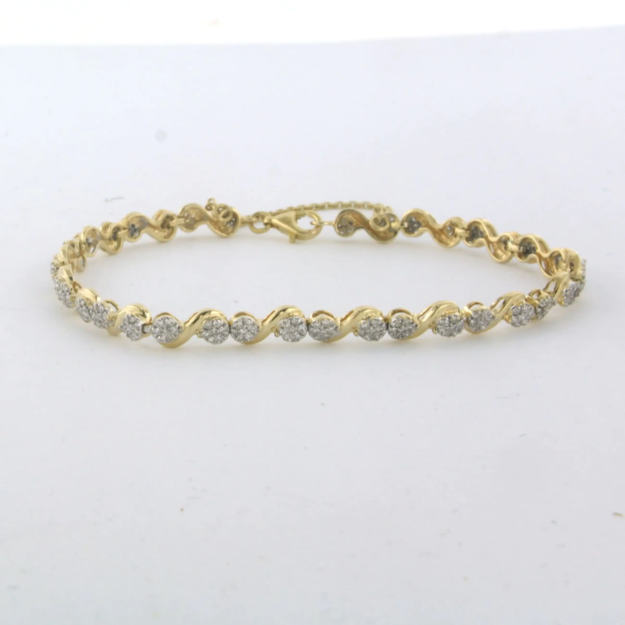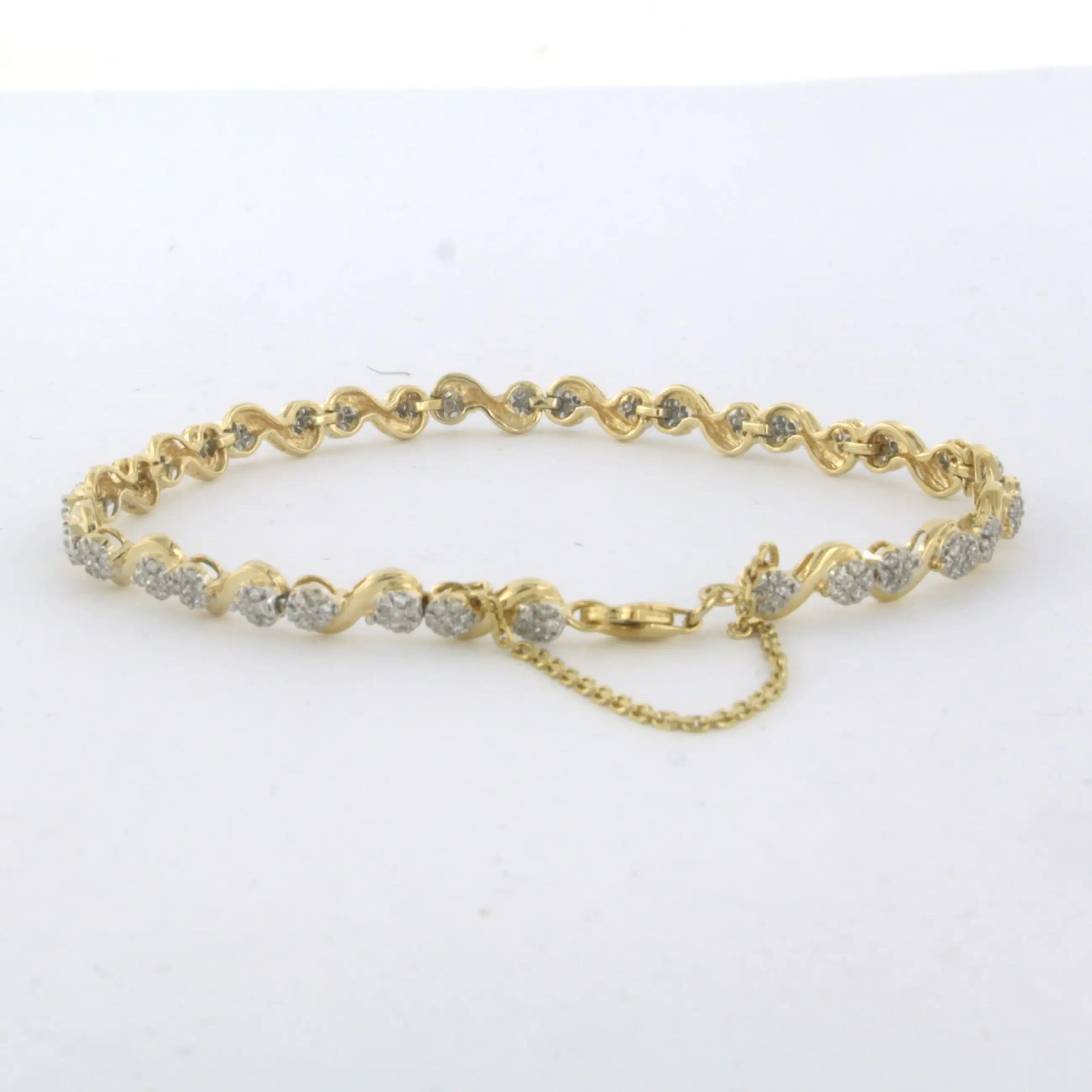 18k bicolour gouden armband met single cut geslepen diamant 1.20ct F/G VS/SI - lengte 17 cm - met veiligheidskettinkje
