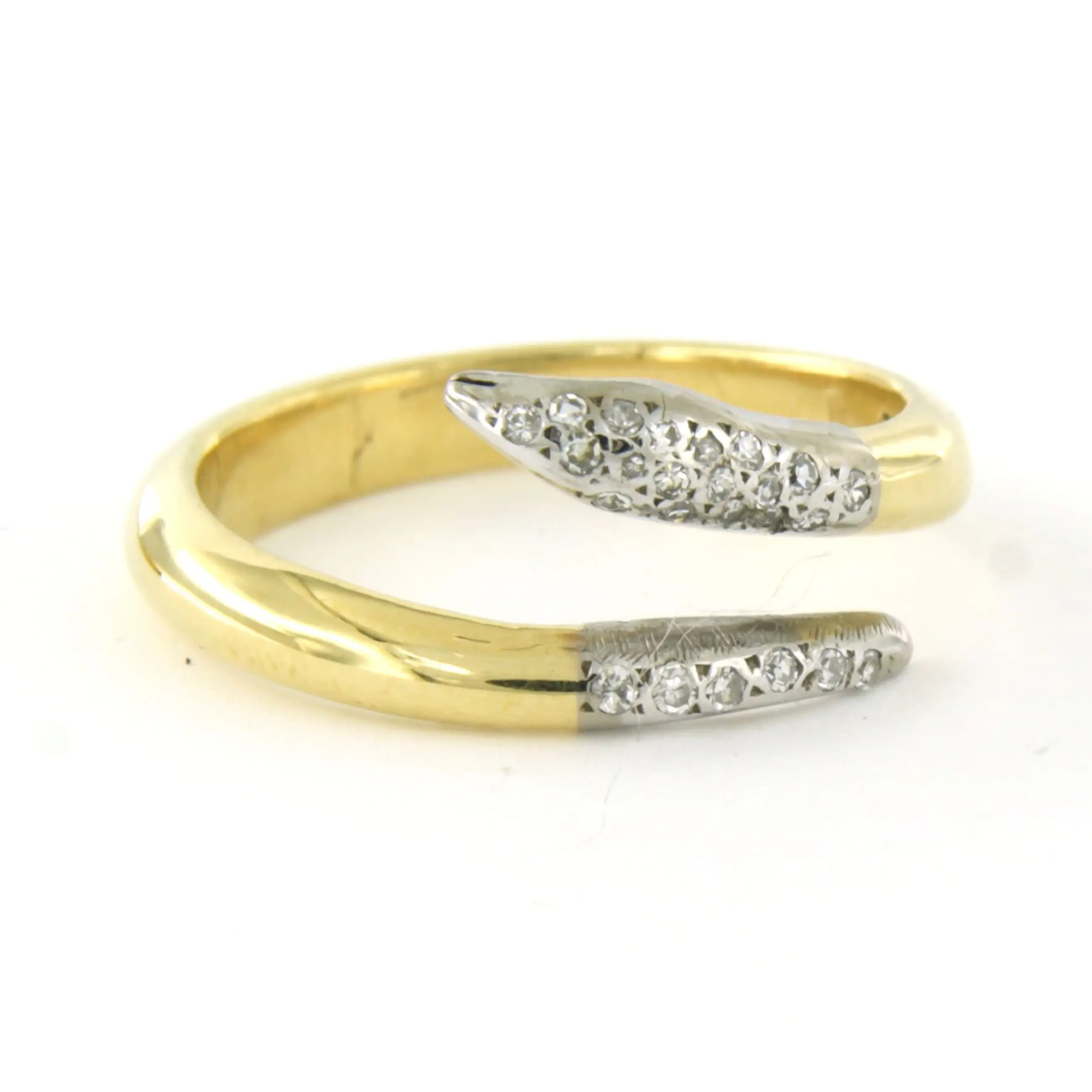 18k bicolour gouden ring bezet met single cut geslepen diamanten tot. 0.10ct