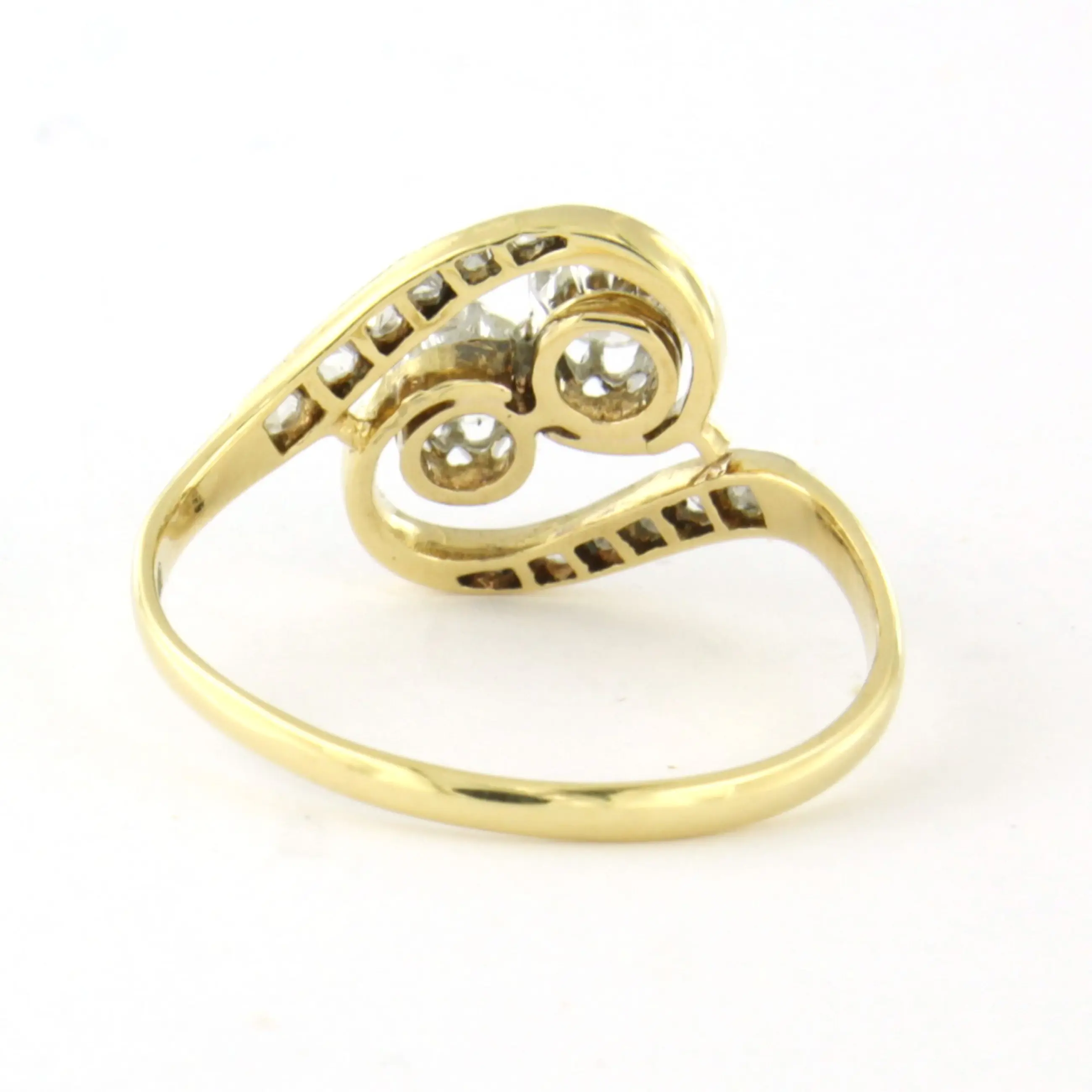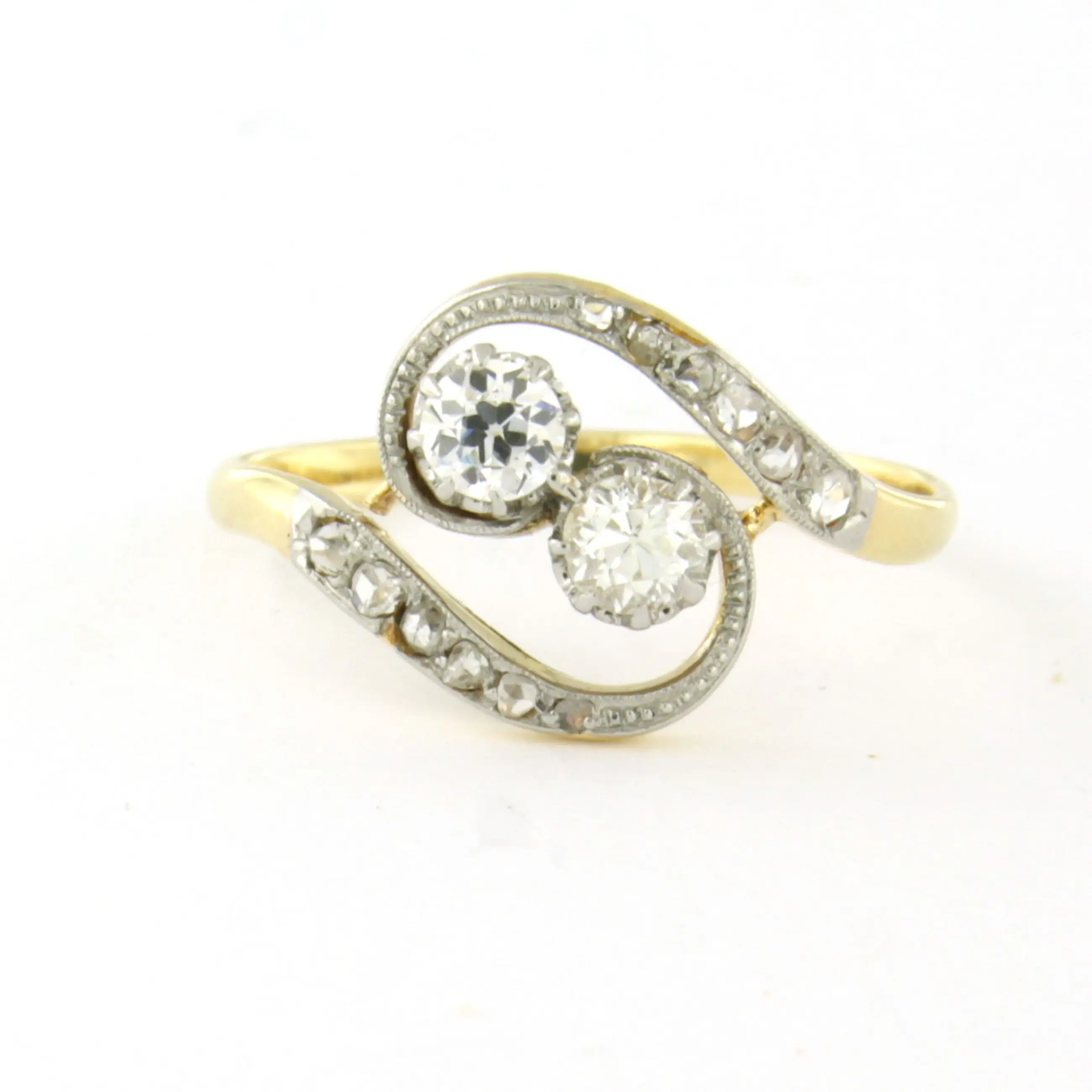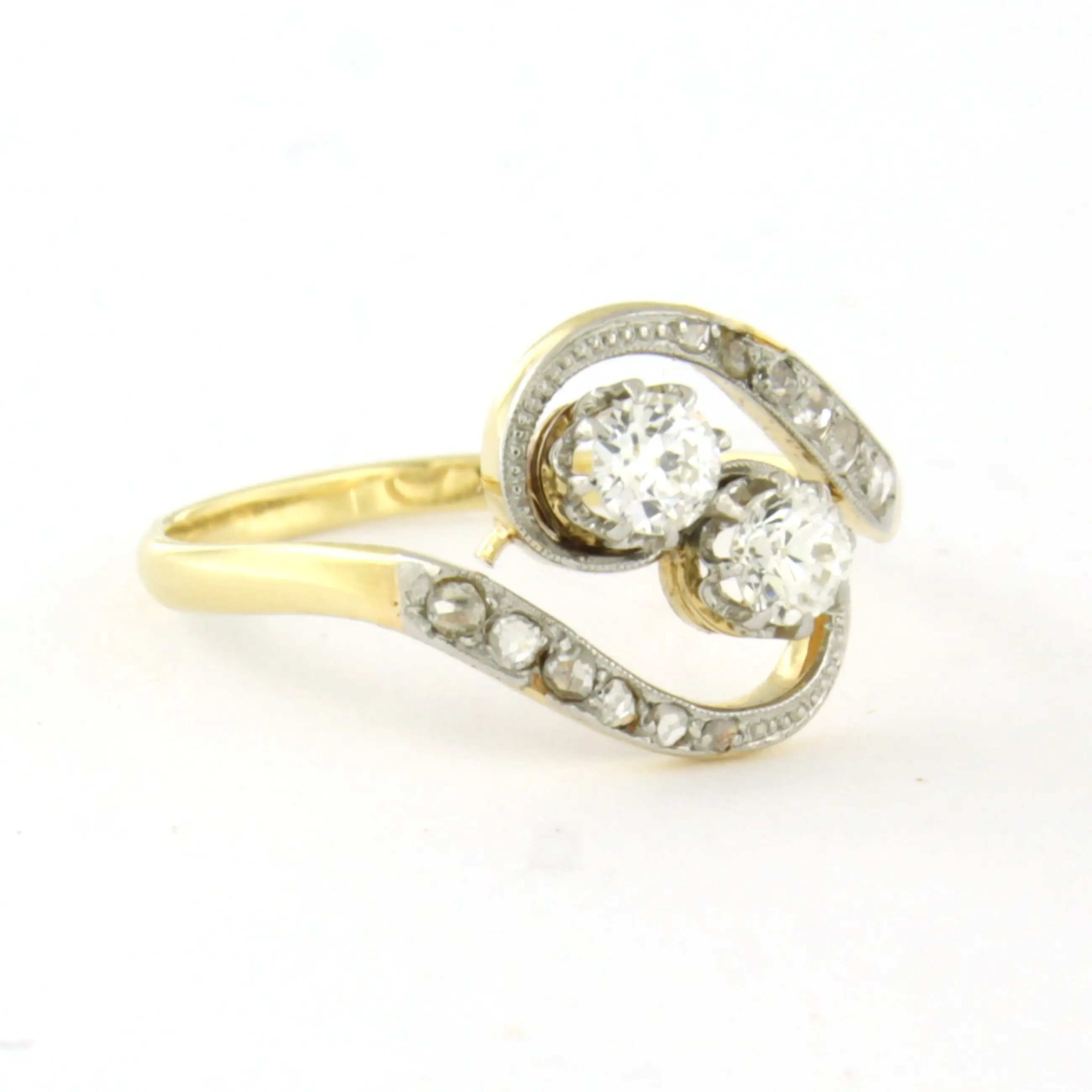 18k bicolour gouden ring met Bolsjewiek en roos geslepen diamanten tot. 0.50ct