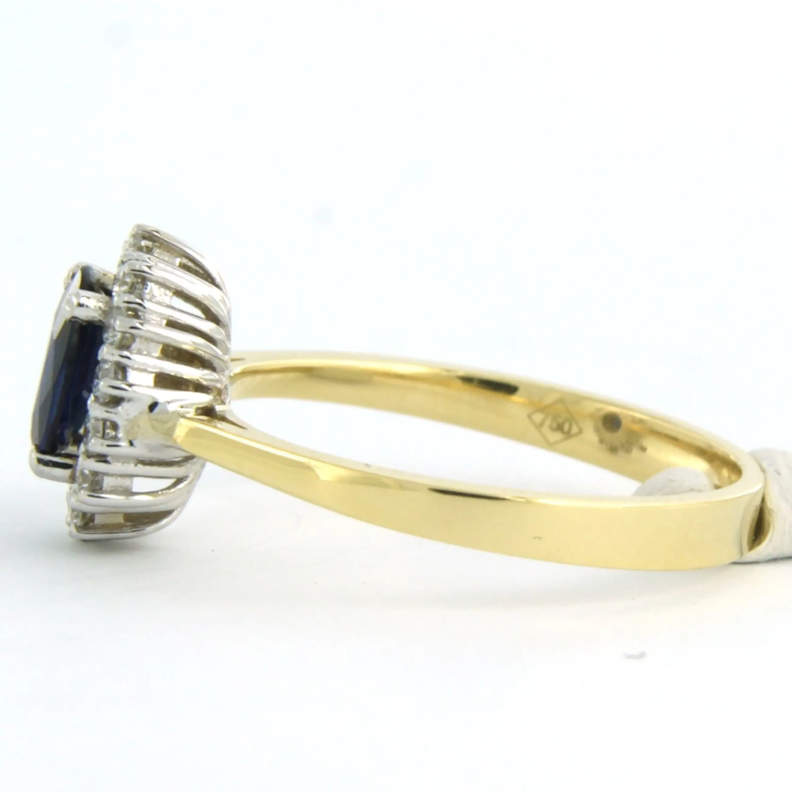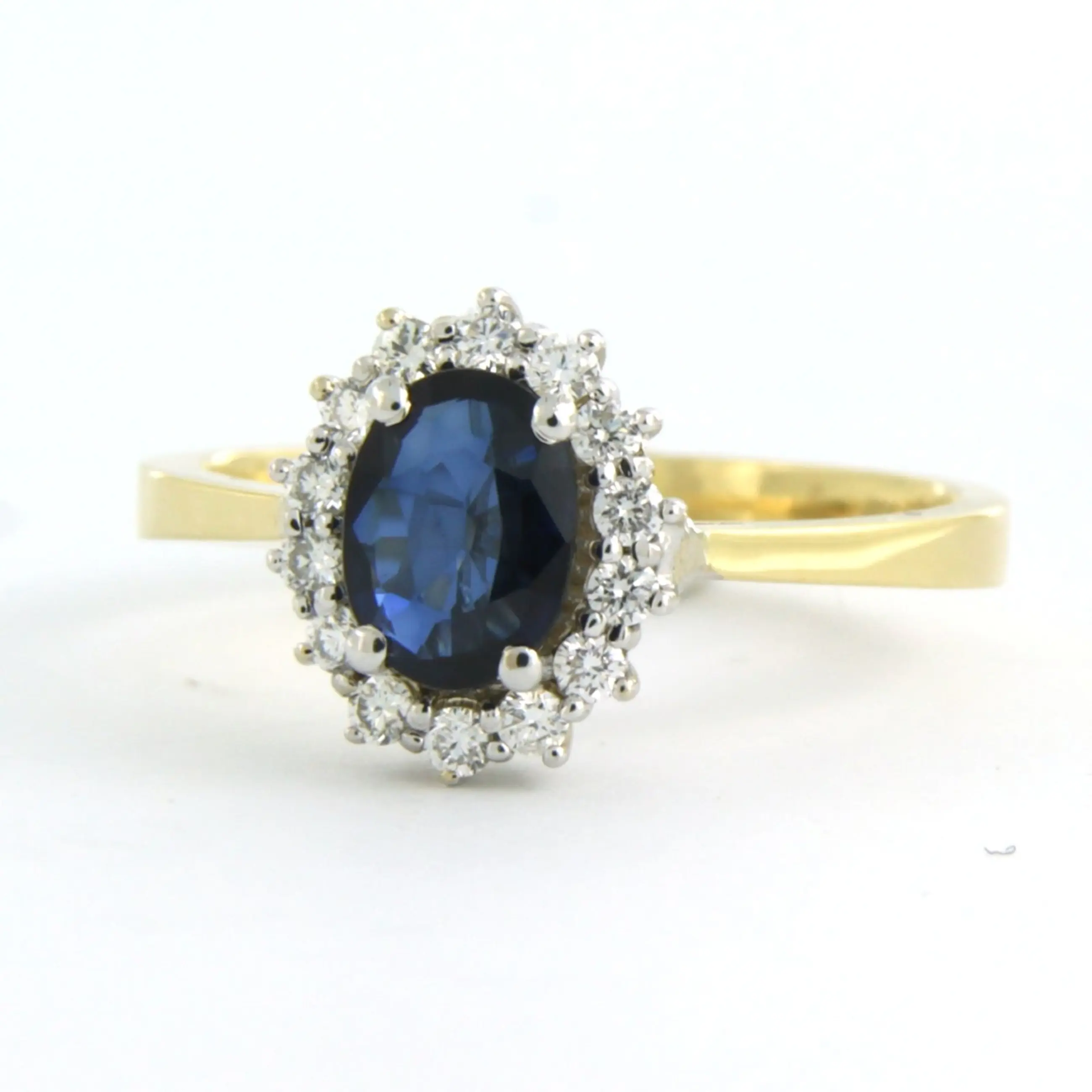 18k bicolour gouden entourage ring bezet met saffier tot. 0.80ct en briljant geslepen diamant tot. 0,28ct - F/G - VS/SI - ringmaat 17.5 (55)