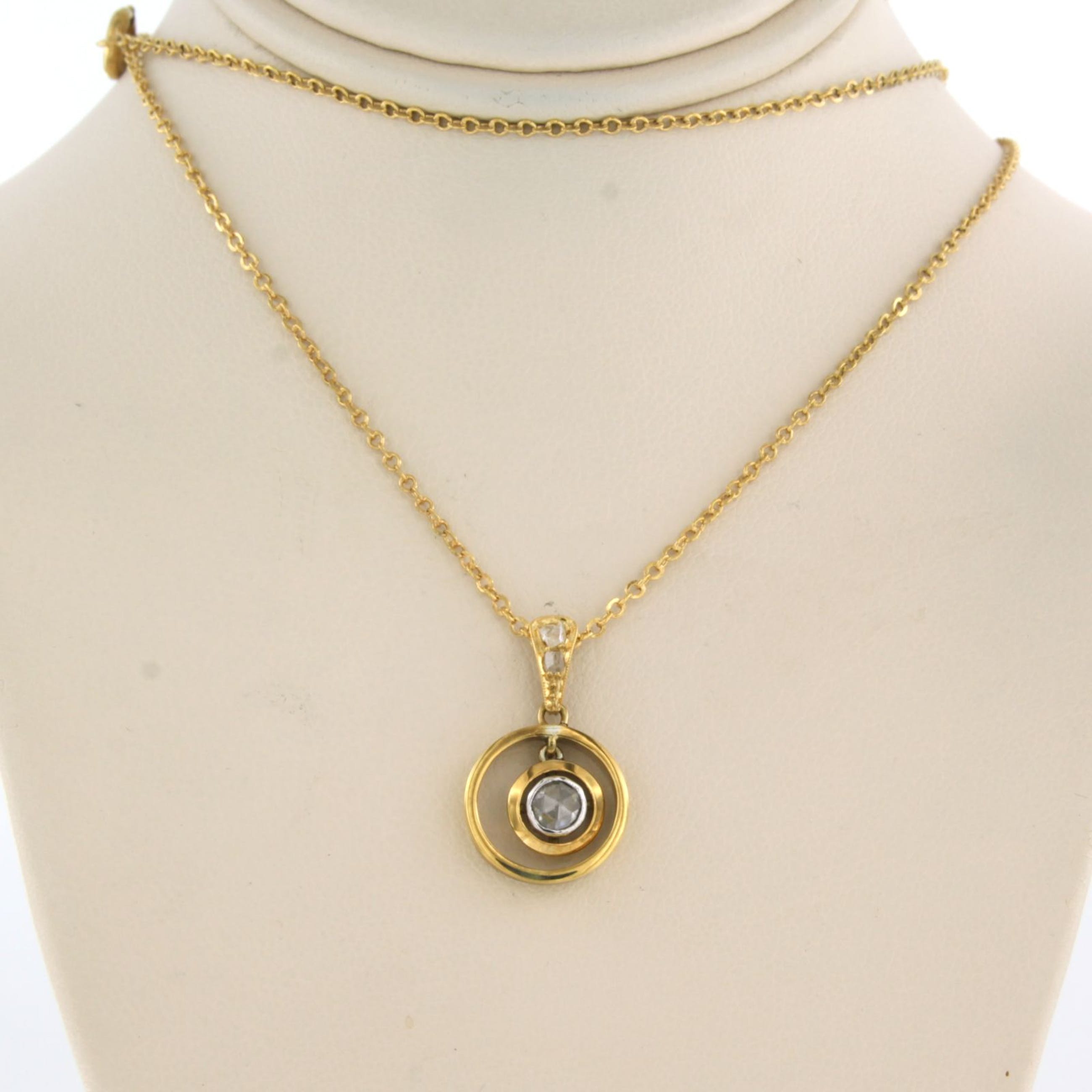 18k geel gouden collier met hanger bezet met roos diamant tot. 0.15ct - G/H - SI - 55 cm lang