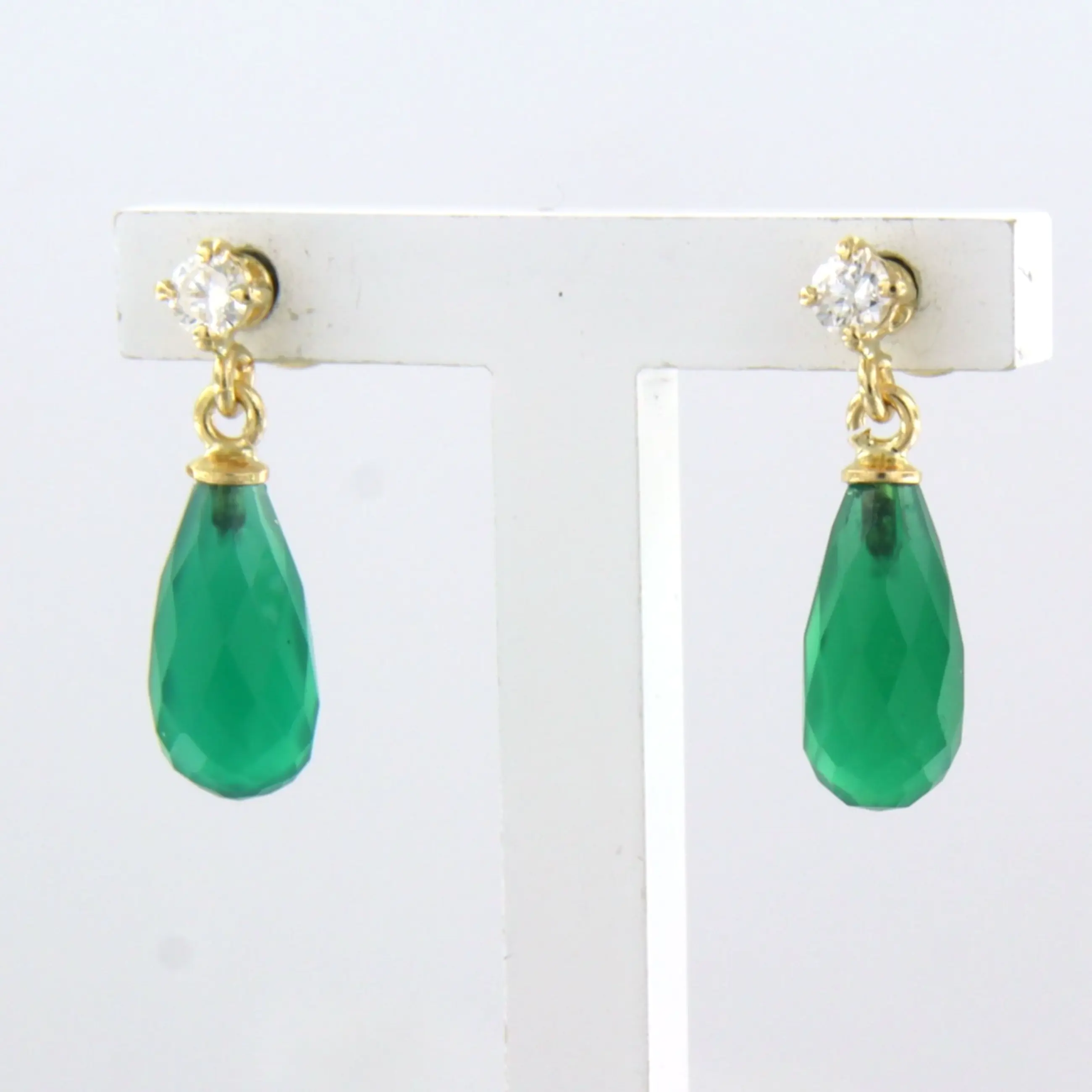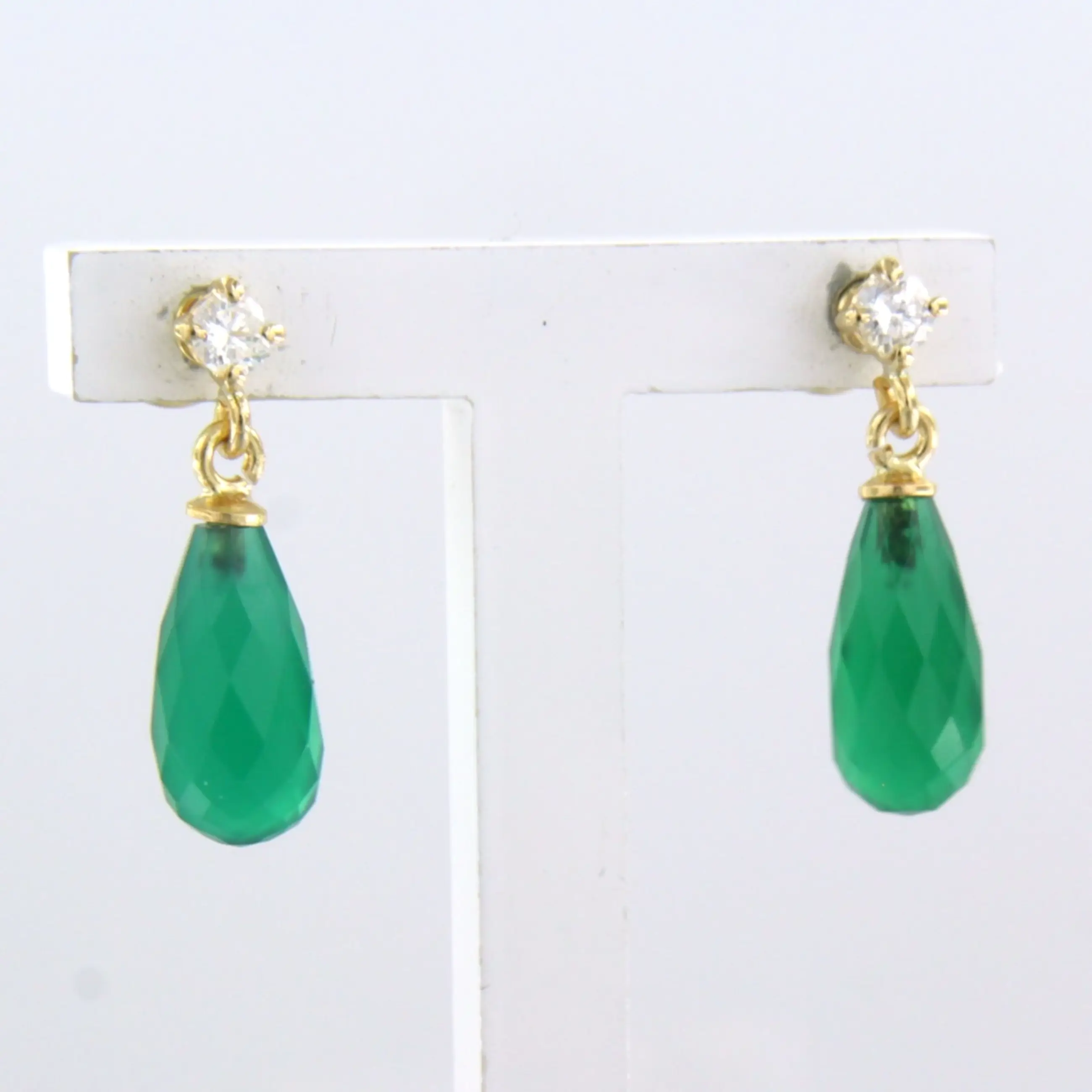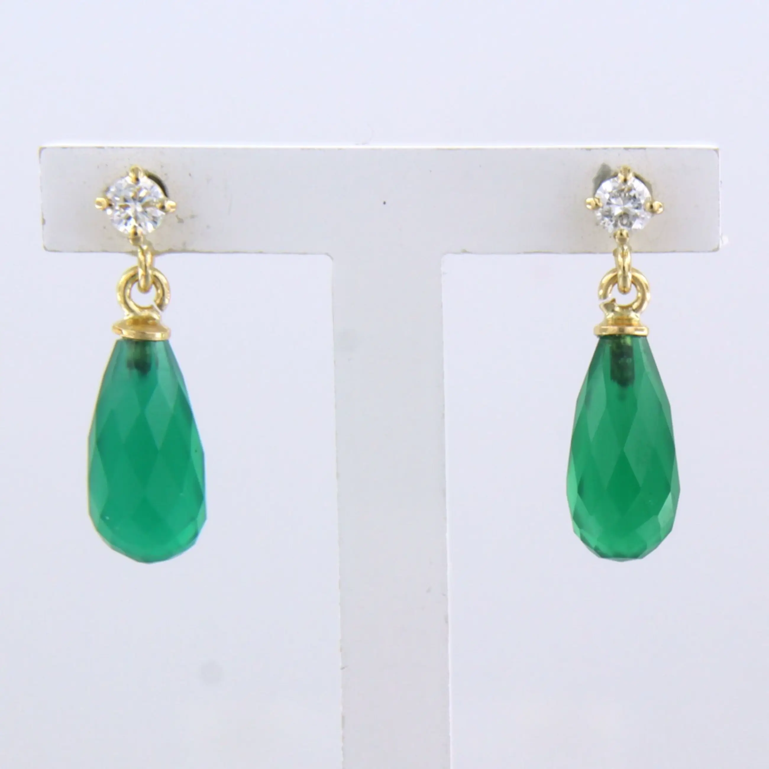 18k geel gouden oorhangers bezet met groene onyx en biljant geslepen diamant kopen? Bied vanaf 210!